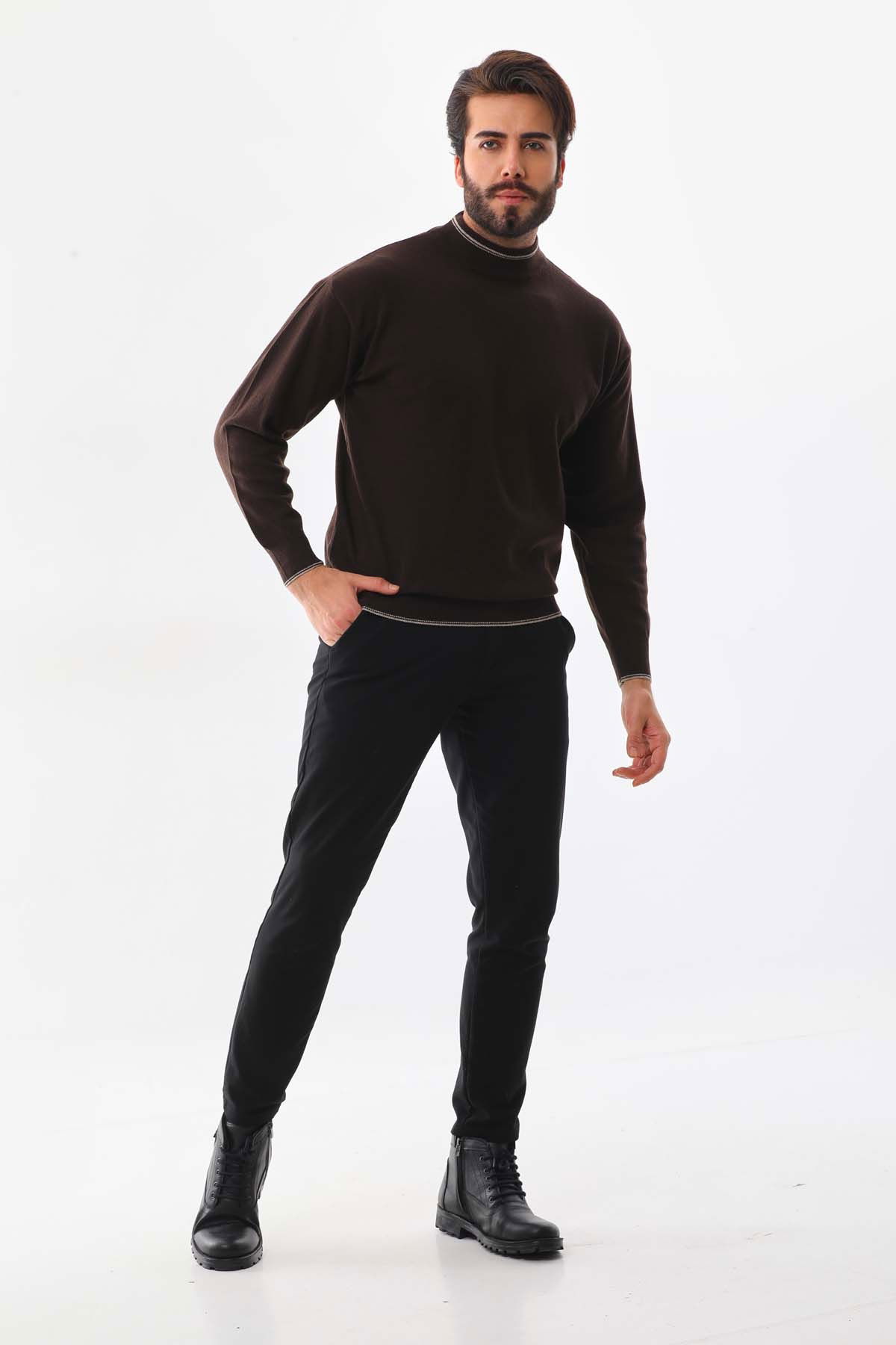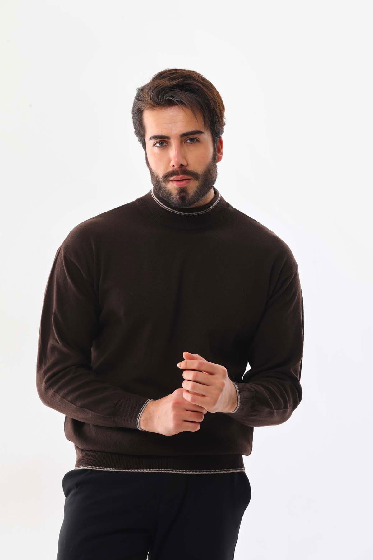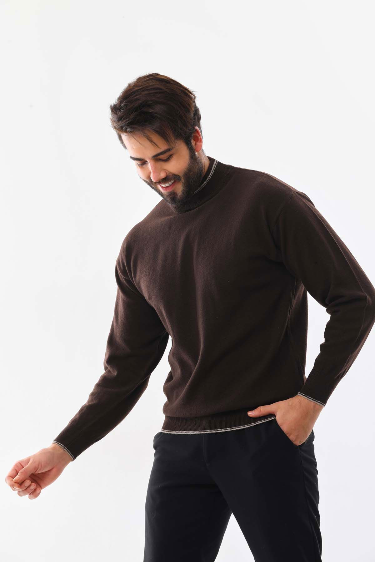 Detay: Yarım balıkçı yaka, uzun kollu, yün kazak;