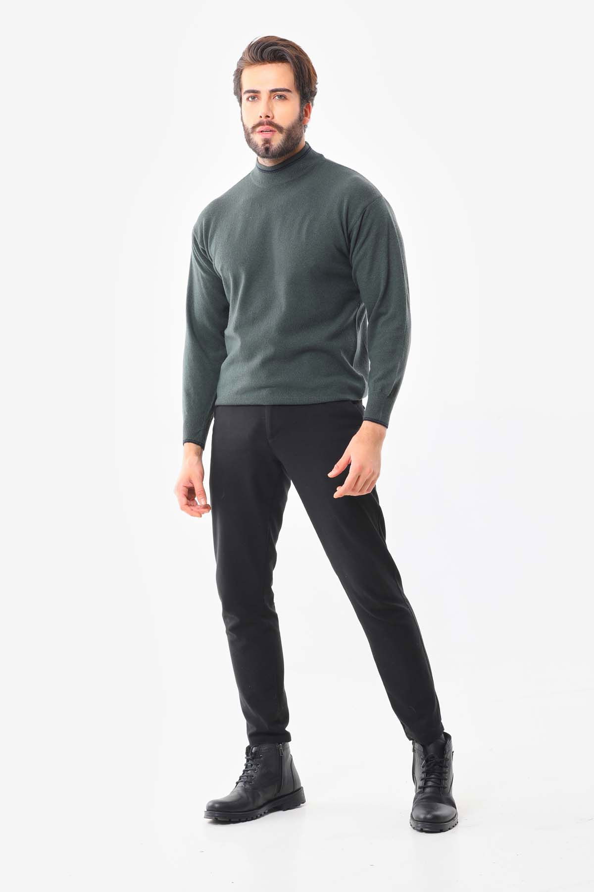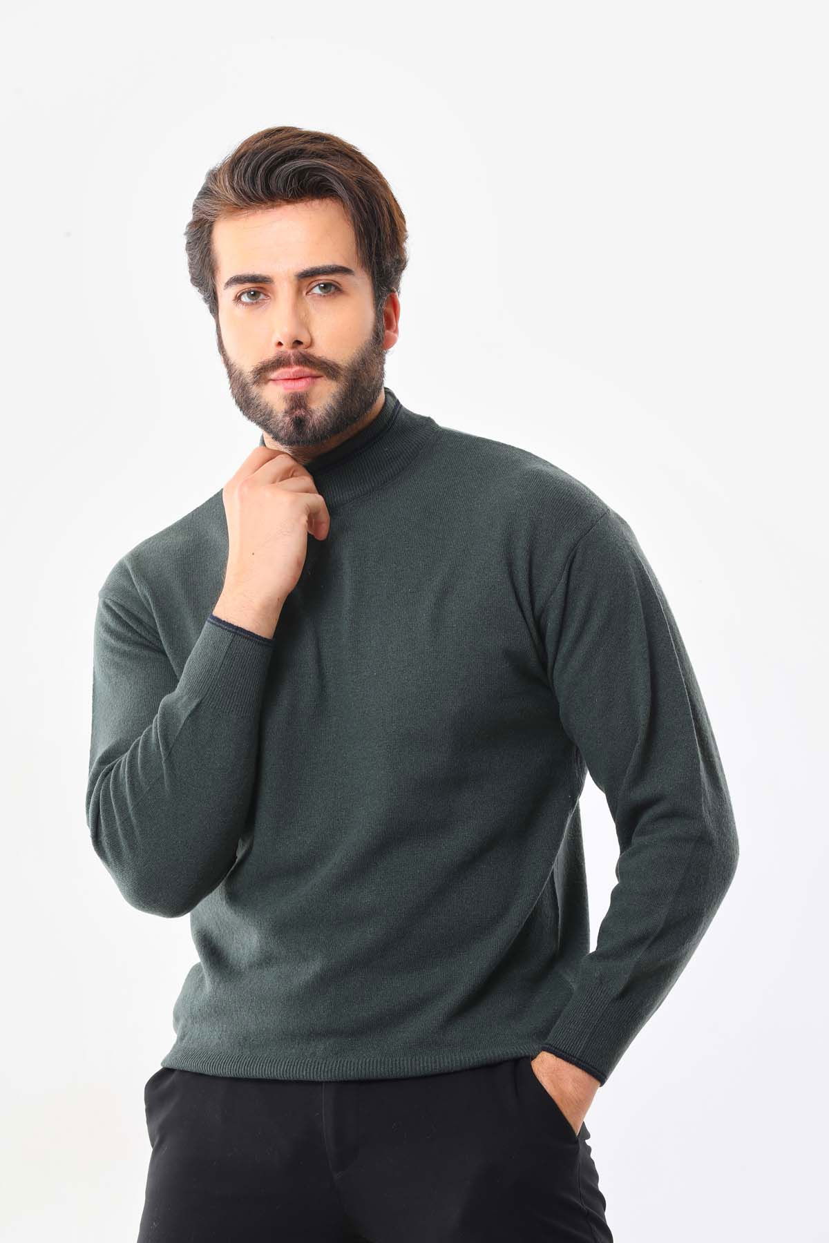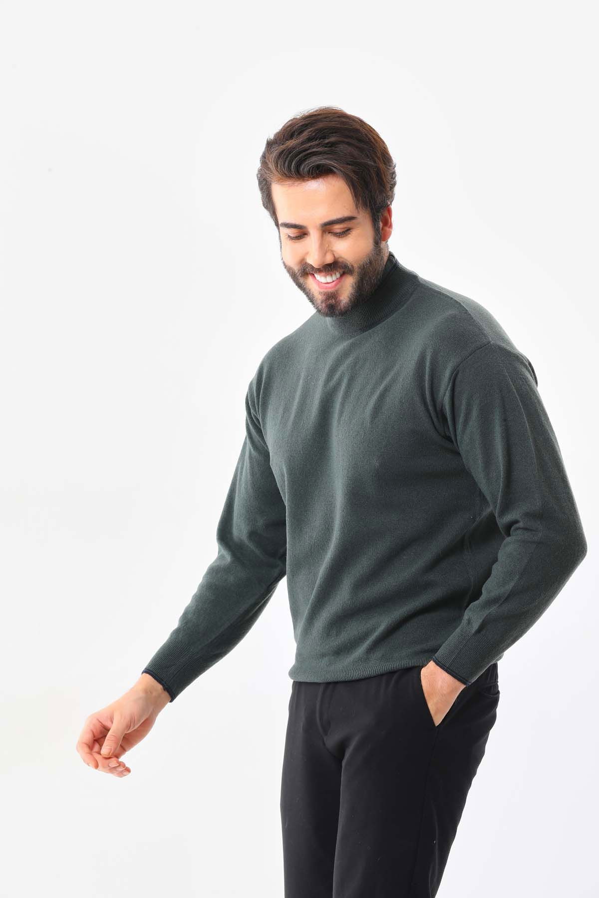 Günay Erkek Çizgi Detaylı Yarım Balıkçı Yaka Yün Kazak 9000 Yeşil