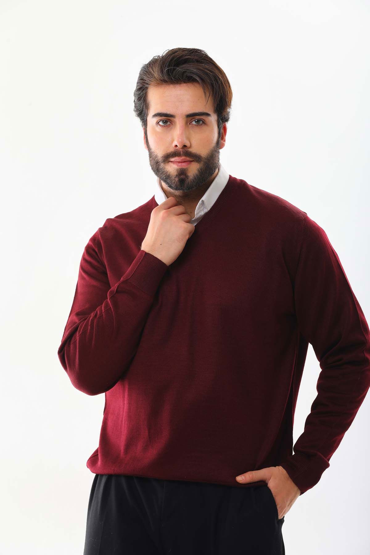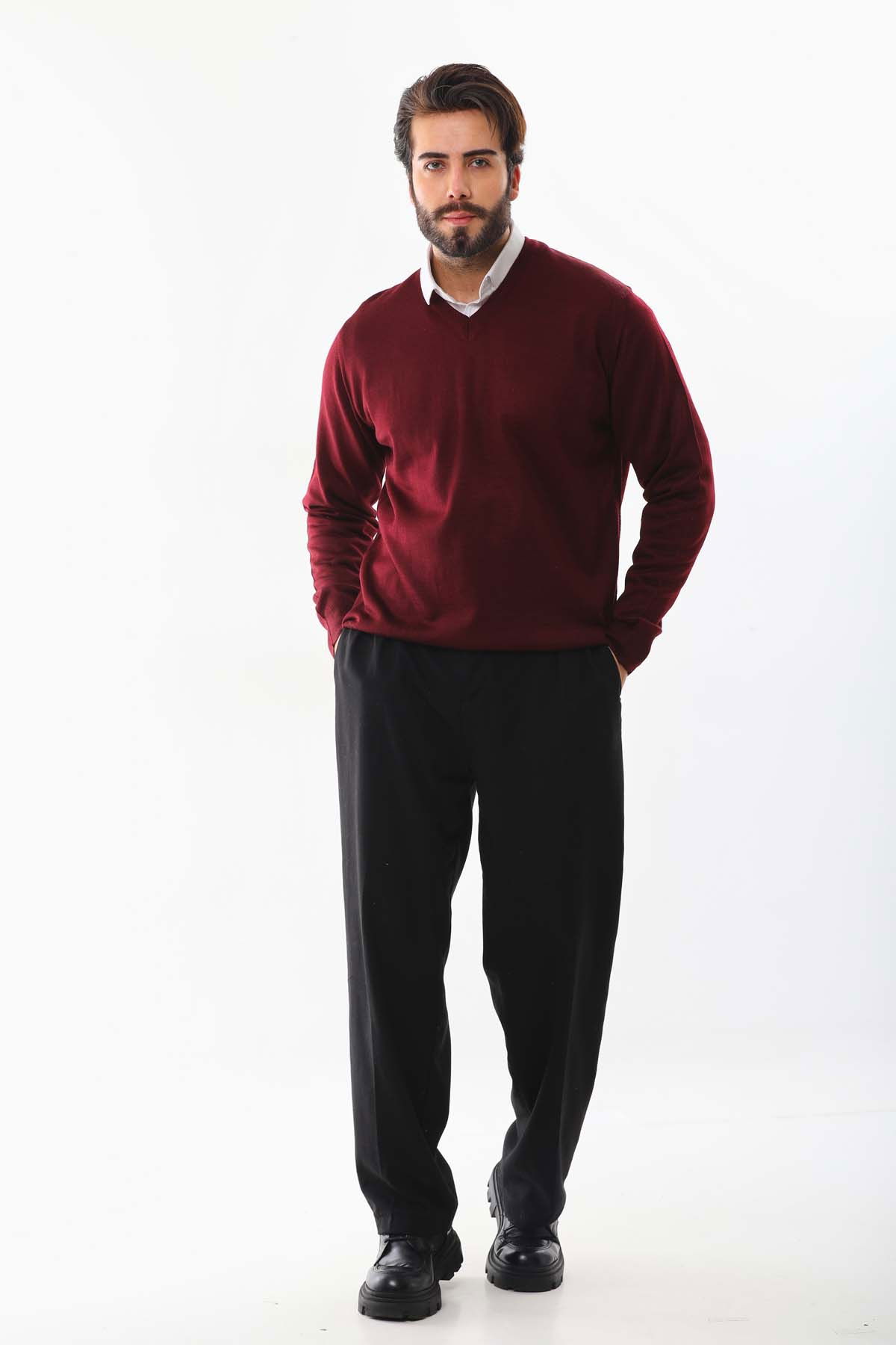 Günay Erkek V Yaka Yün Kazak 5000 Bordo
