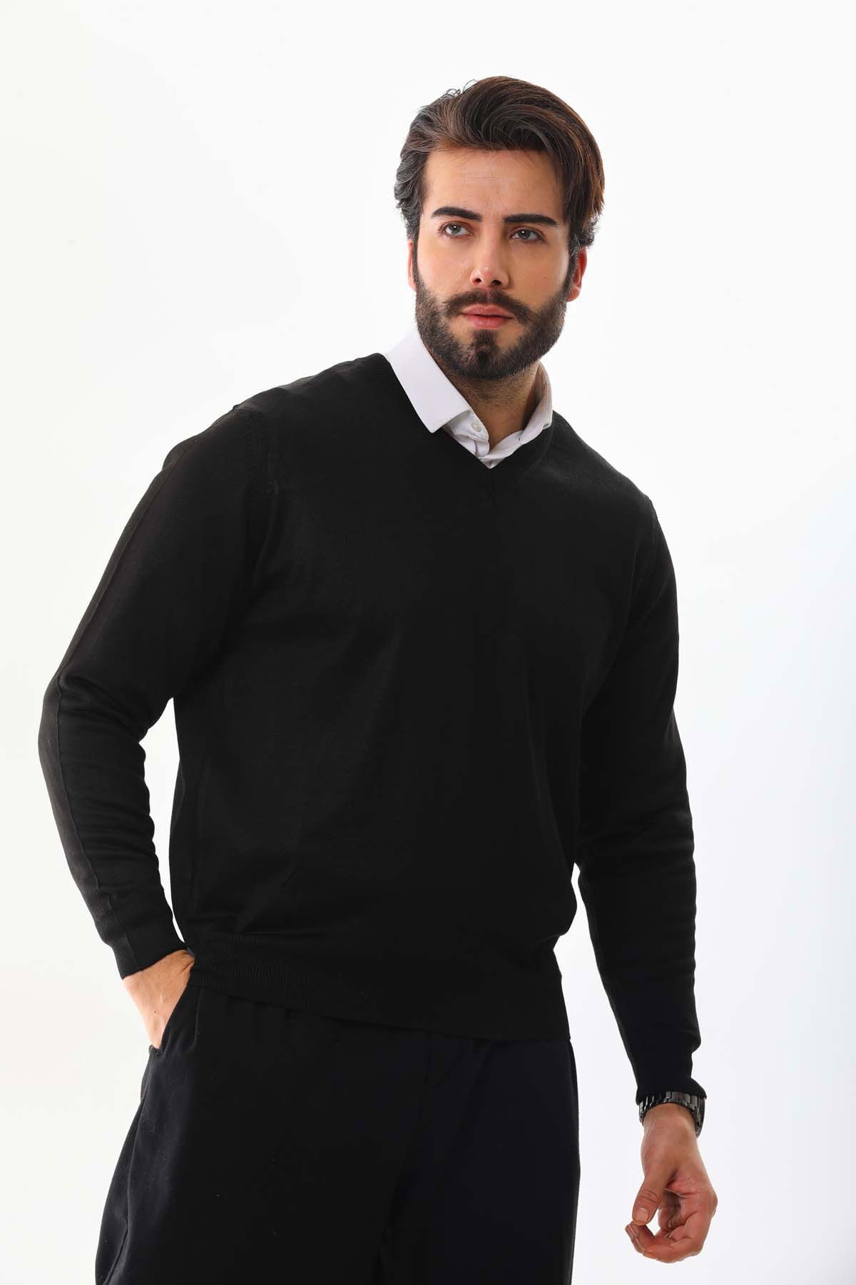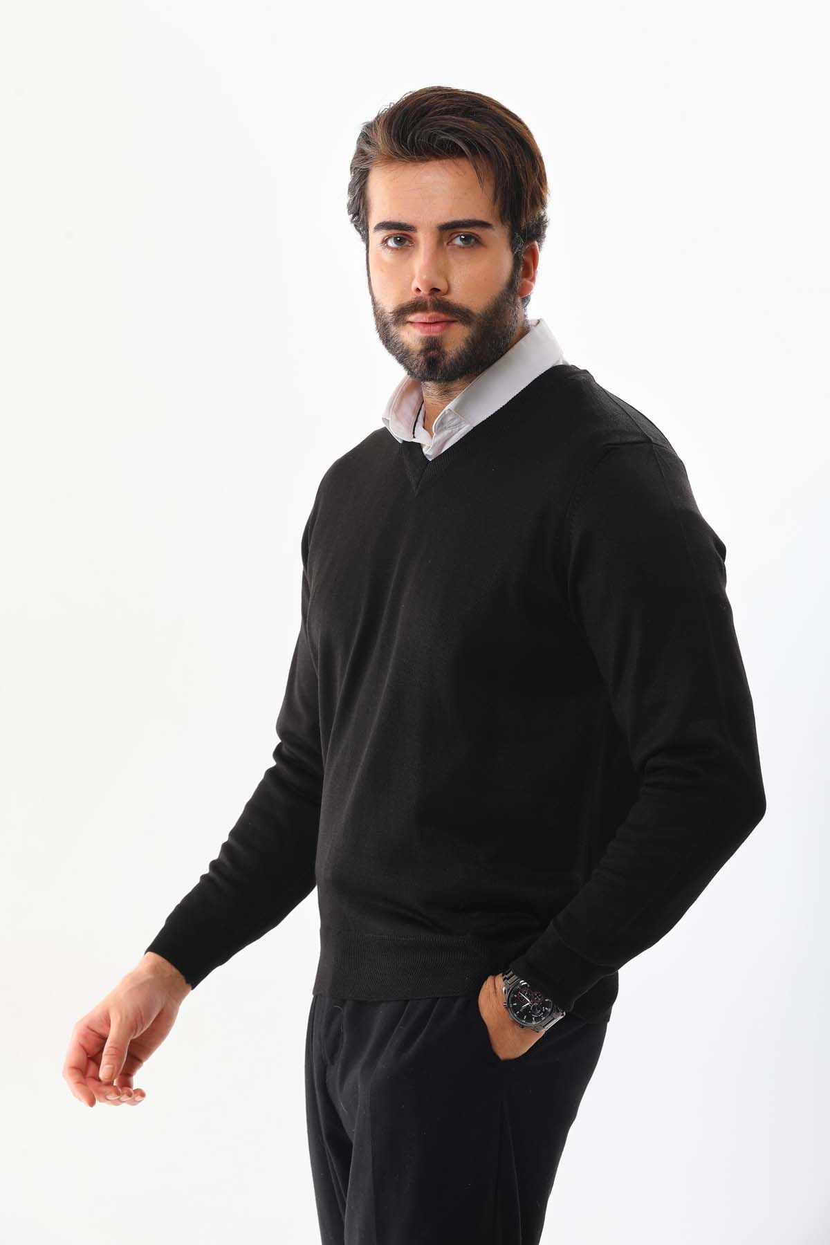 Günay Erkek V Yaka Yün Kazak 5000 Siyah