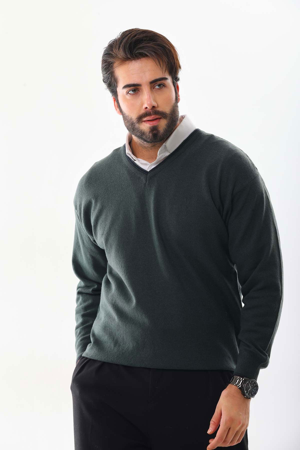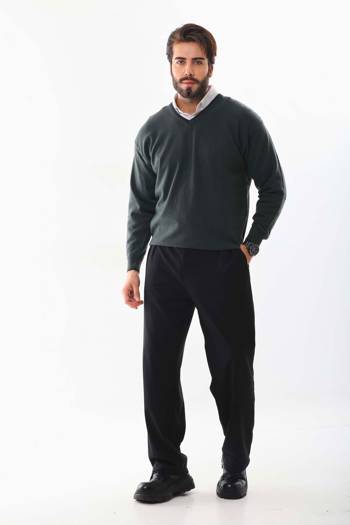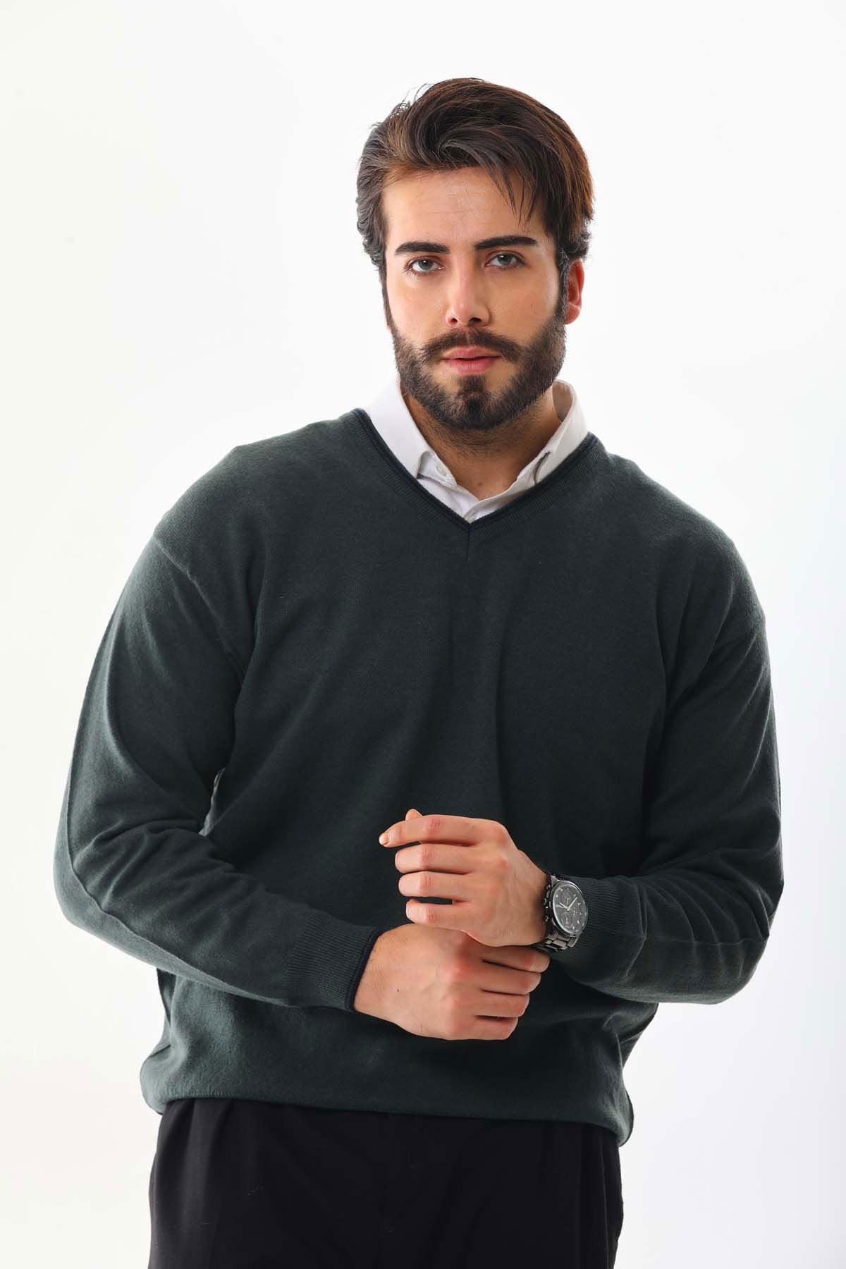 Günay Erkek V Yaka Yün Kazak 8000 Yeşil
