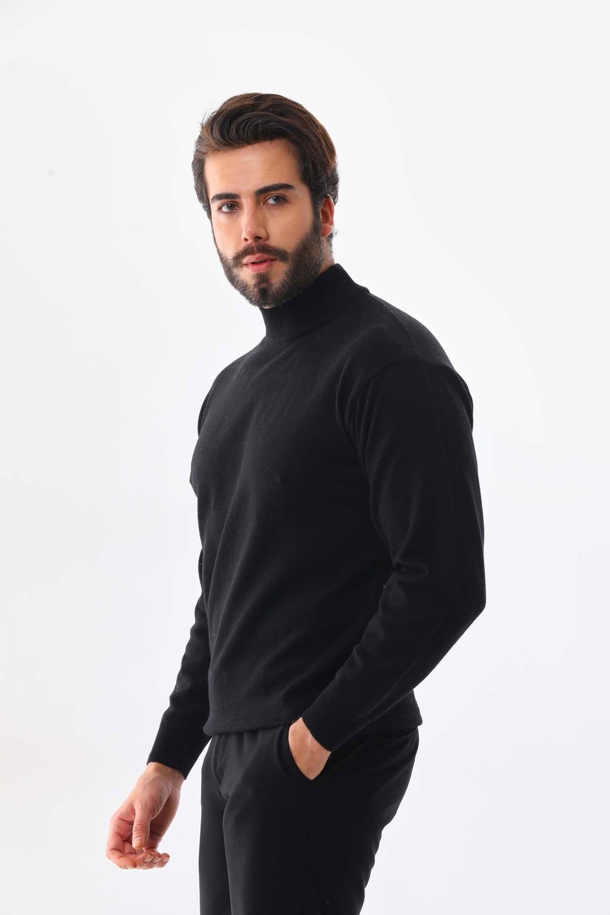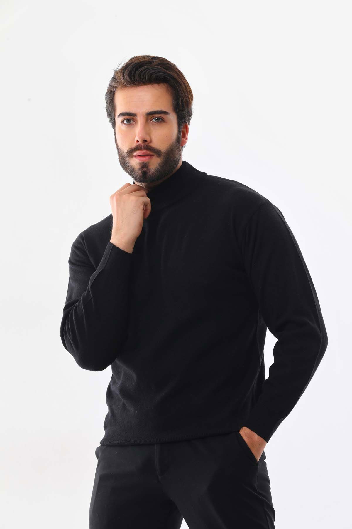 Günay Erkek Yarım Balıkçı Yaka Yün Kazak 9001 Siyah