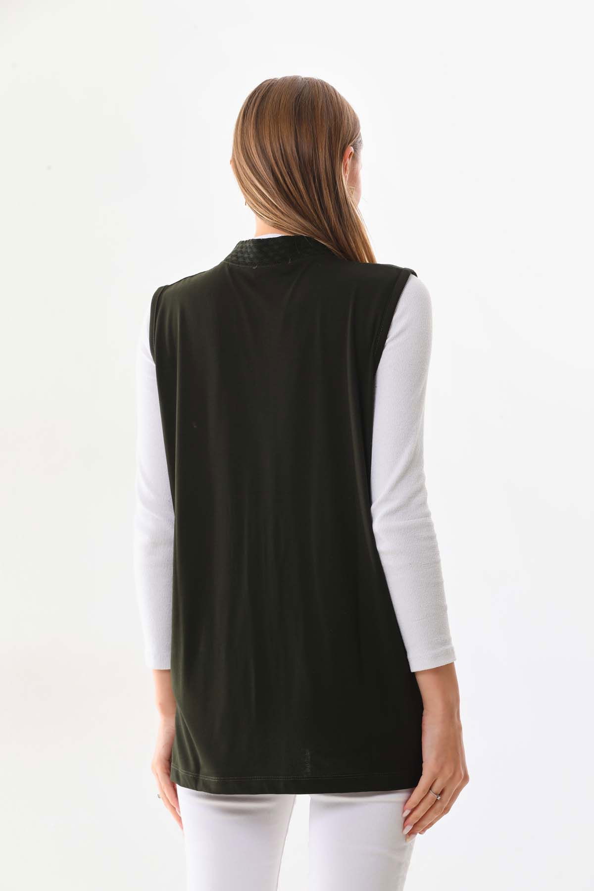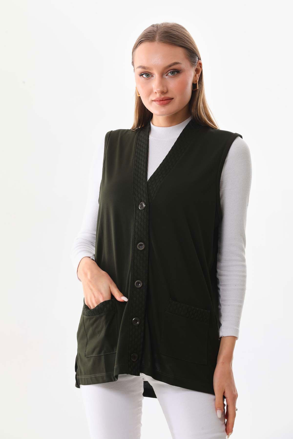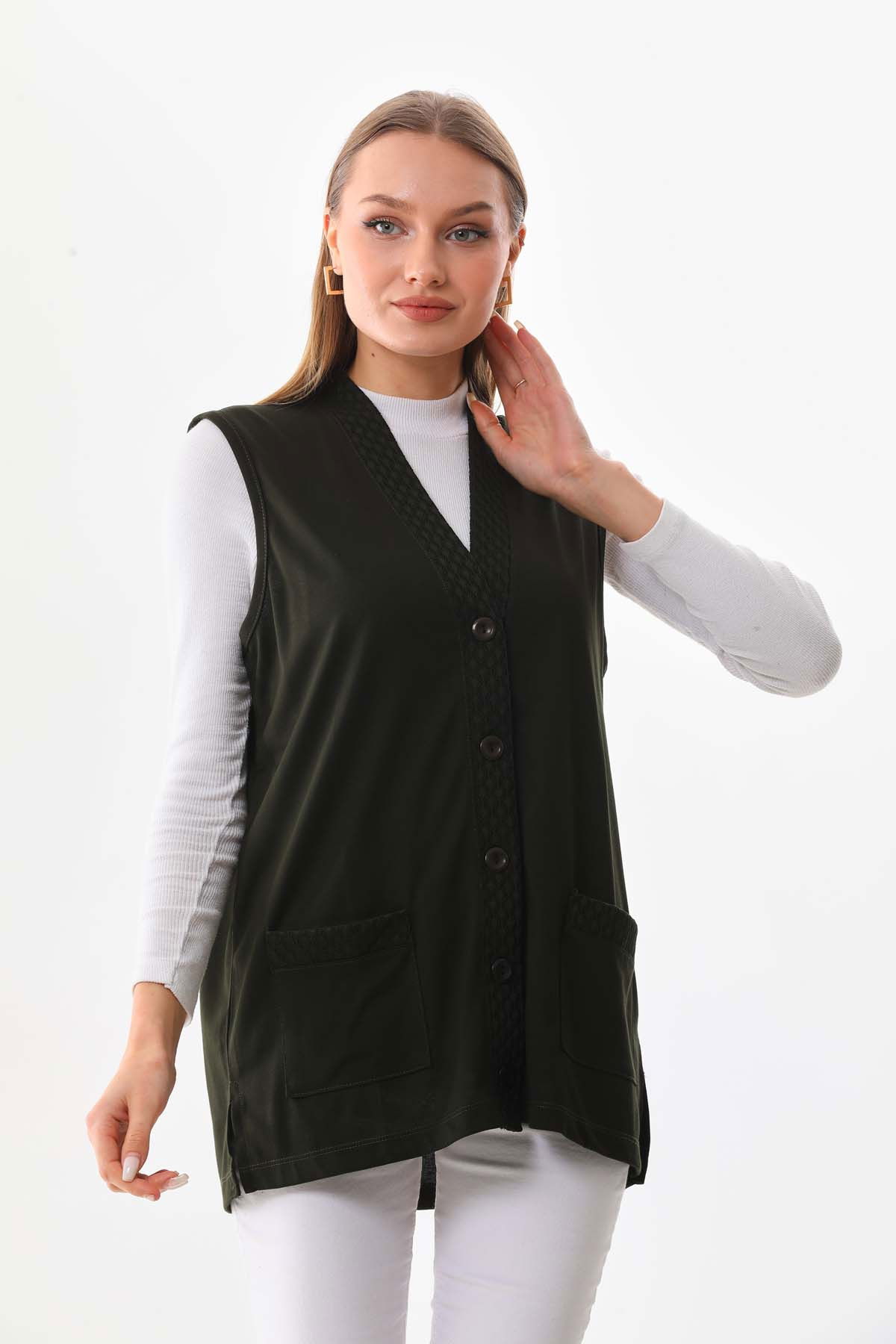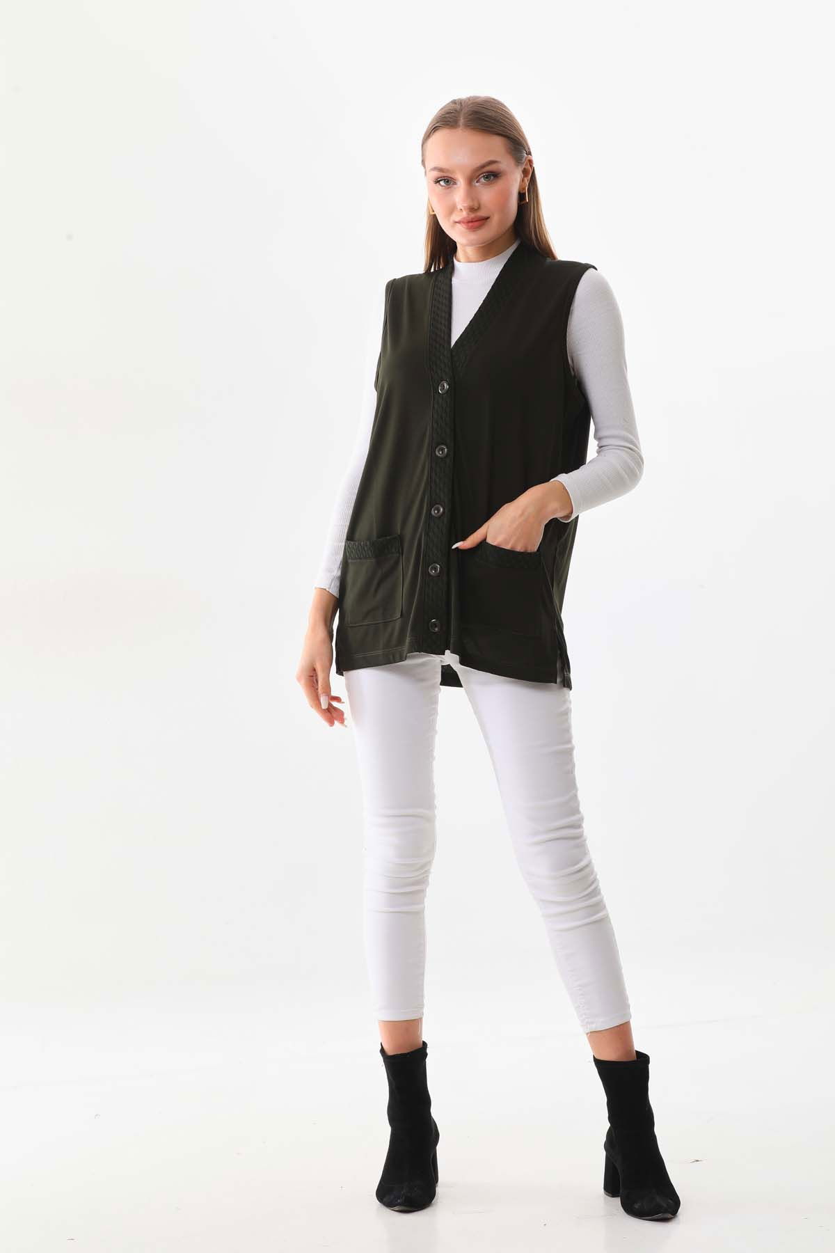 Günay Kadın Cep Detaylı V Yaka Yelek 2603 Haki