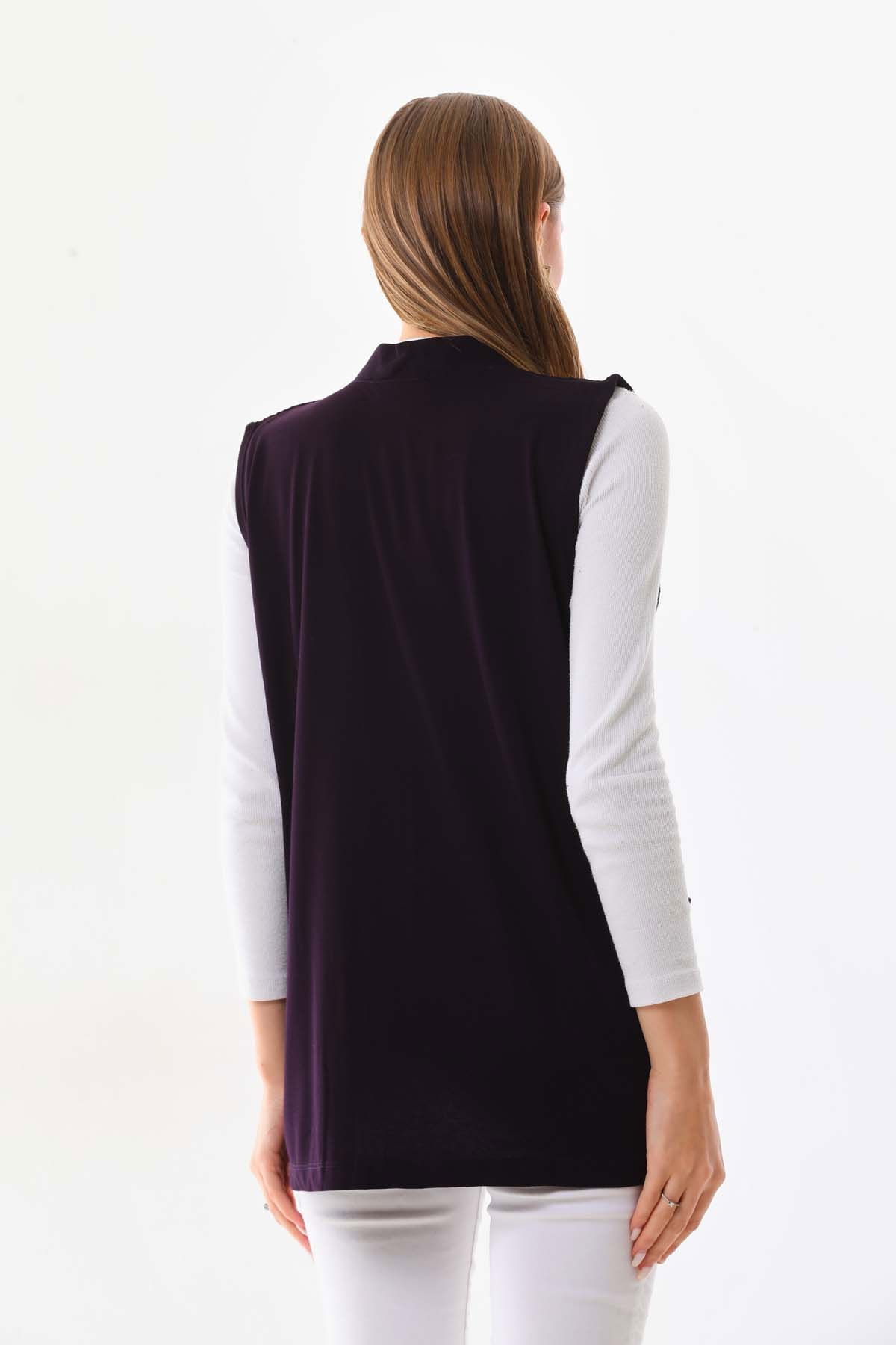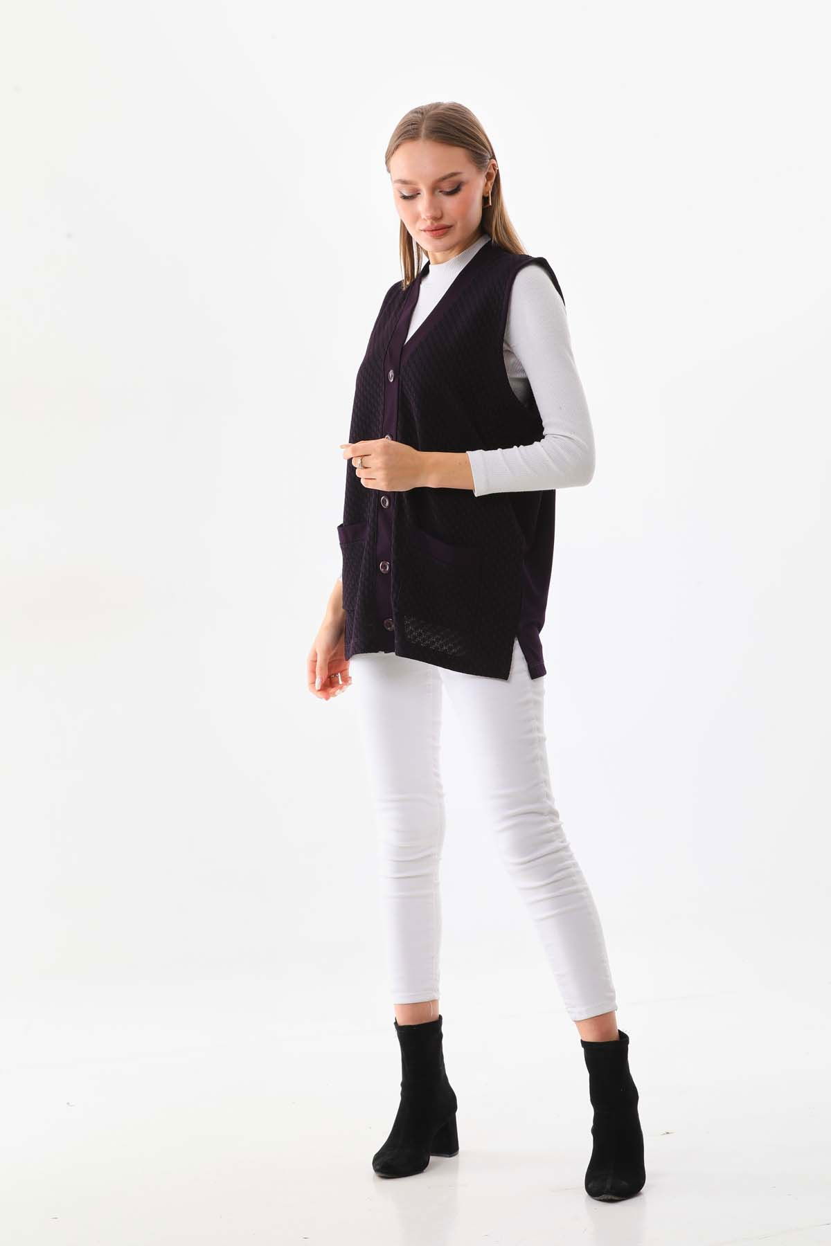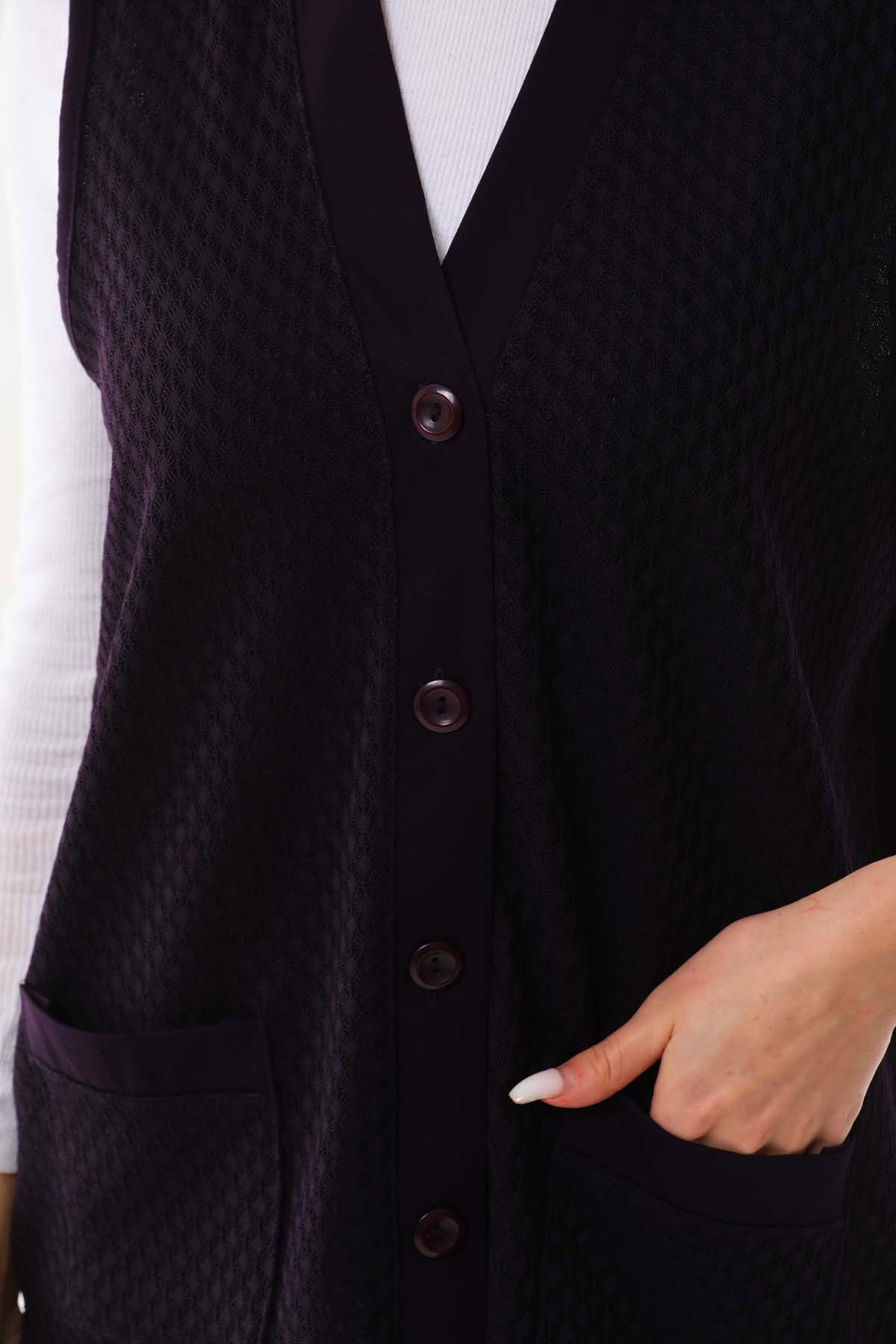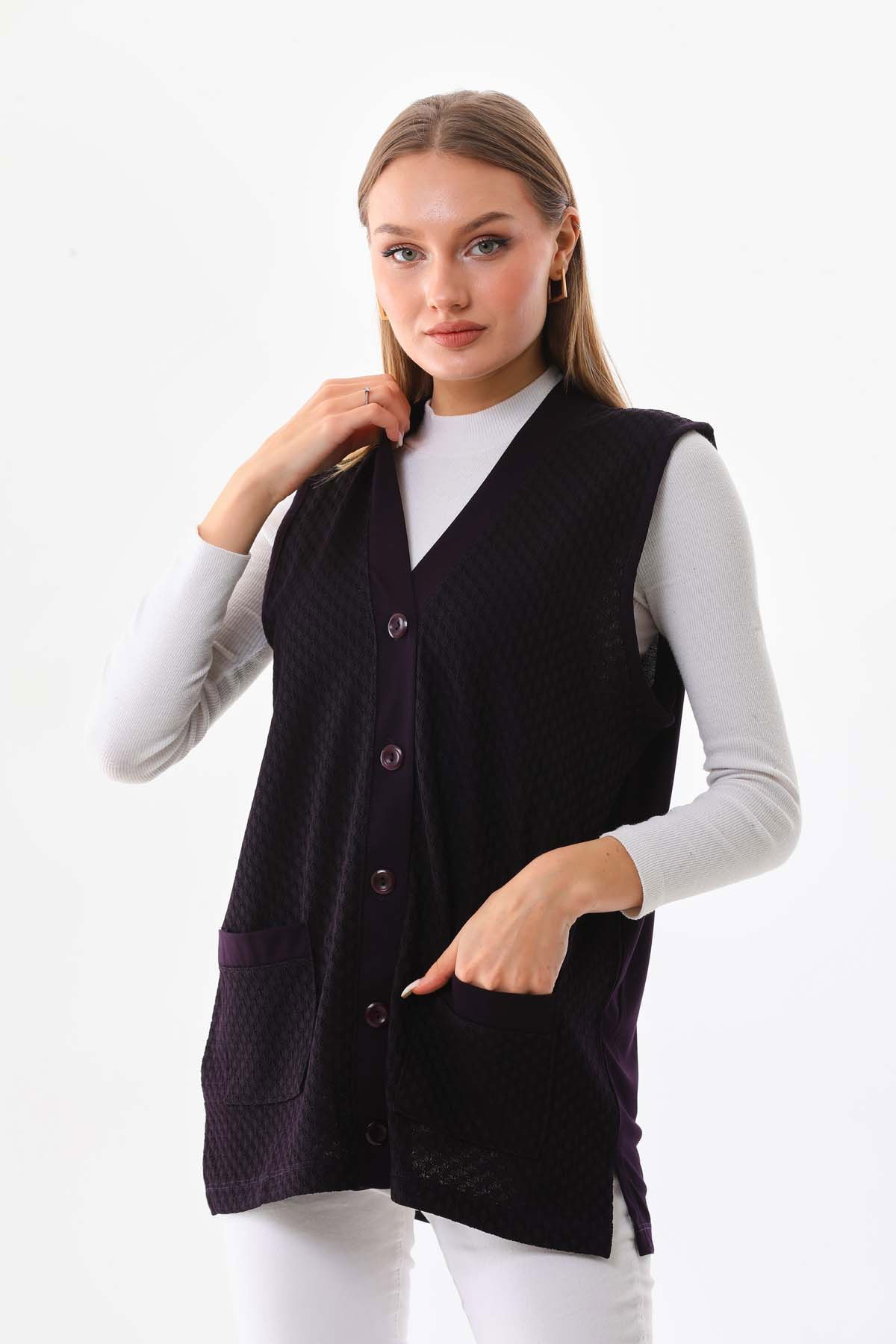 Günay Kadın Yandan Yırtmaçlı Desenli Yelek 22604 Mürdüm