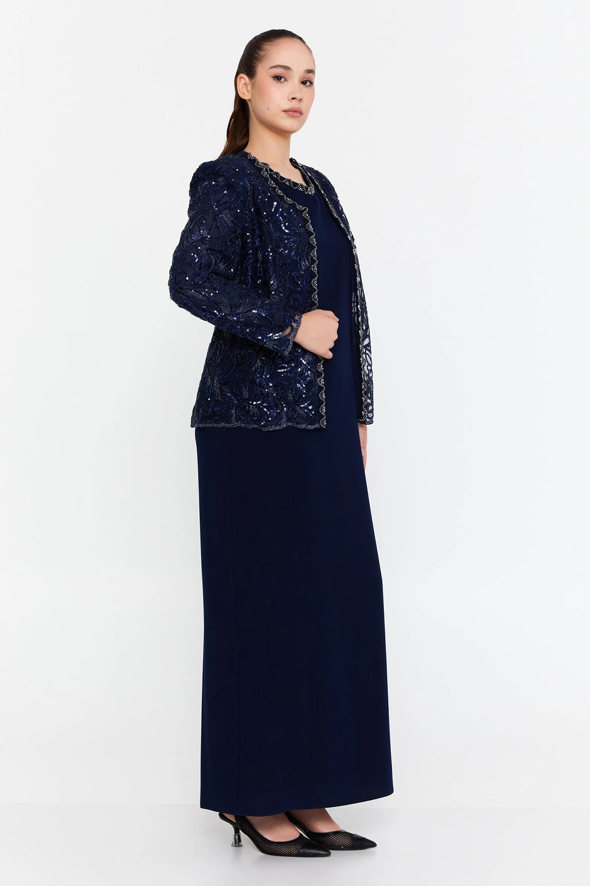 Detay: Yumuşak ve dökümlü viskon kumaşıyla tasarlanan bu uzun abiye takım, zarafeti ve konforu bir arada sunar. Elbise kısmı sade ve akıcı bir siluet oluştururken, taş detaylarla süslenmiş ceket tasarımı göz alıcı bir ışıltı katar. Özel davetlerde sofistike bir duruş sergilemek isteyenler için ideal olan bu iki parçalı takım, modern stilin zarafetle buluştuğu etkileyici bir seçenektir;