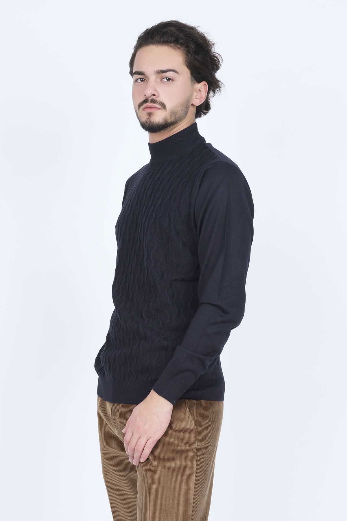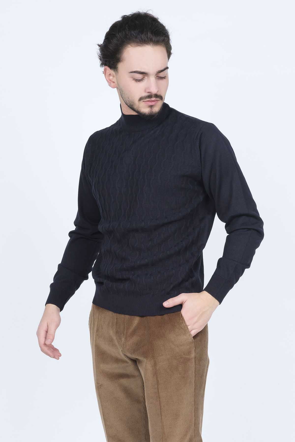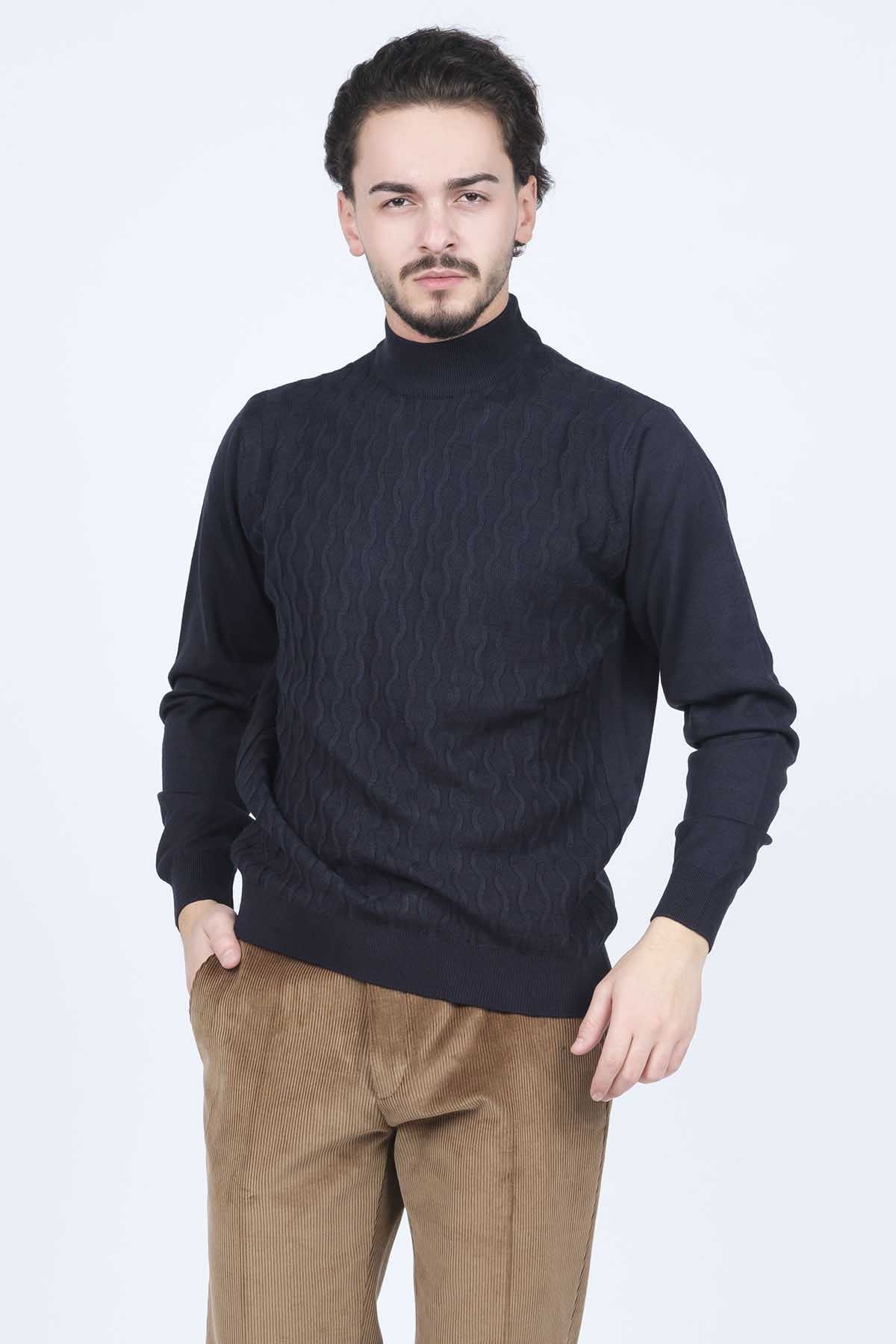 Herman Triko Erkek Desenli Yarım Balıkçı Triko Yün Kazak 6541353 Lacivert