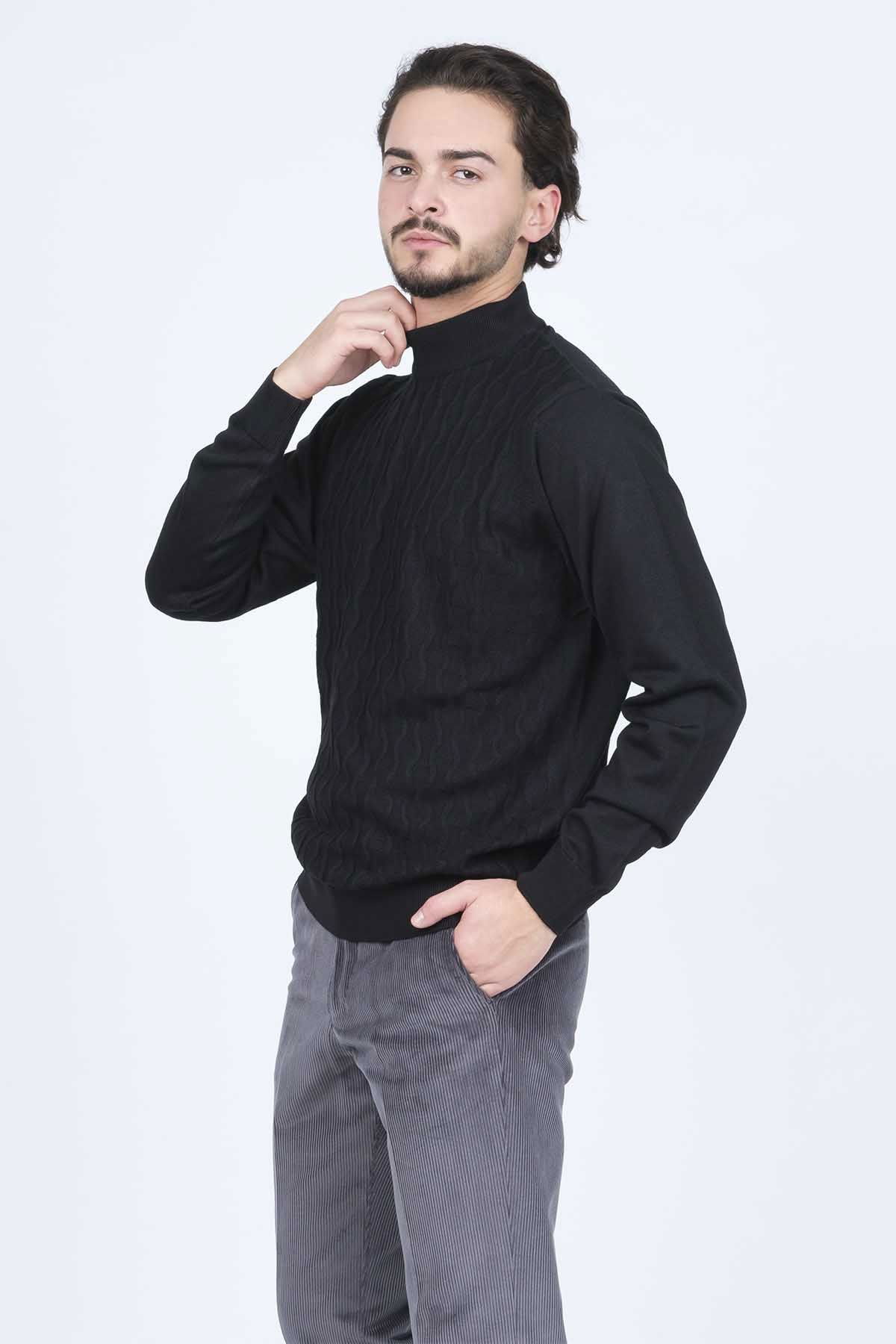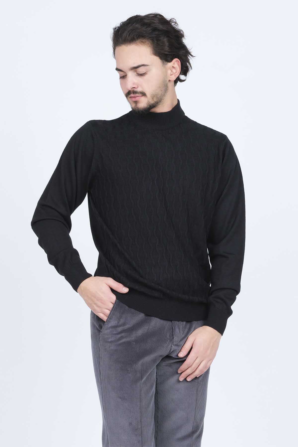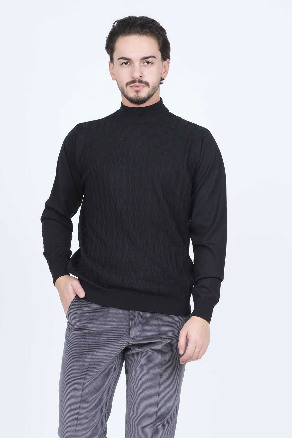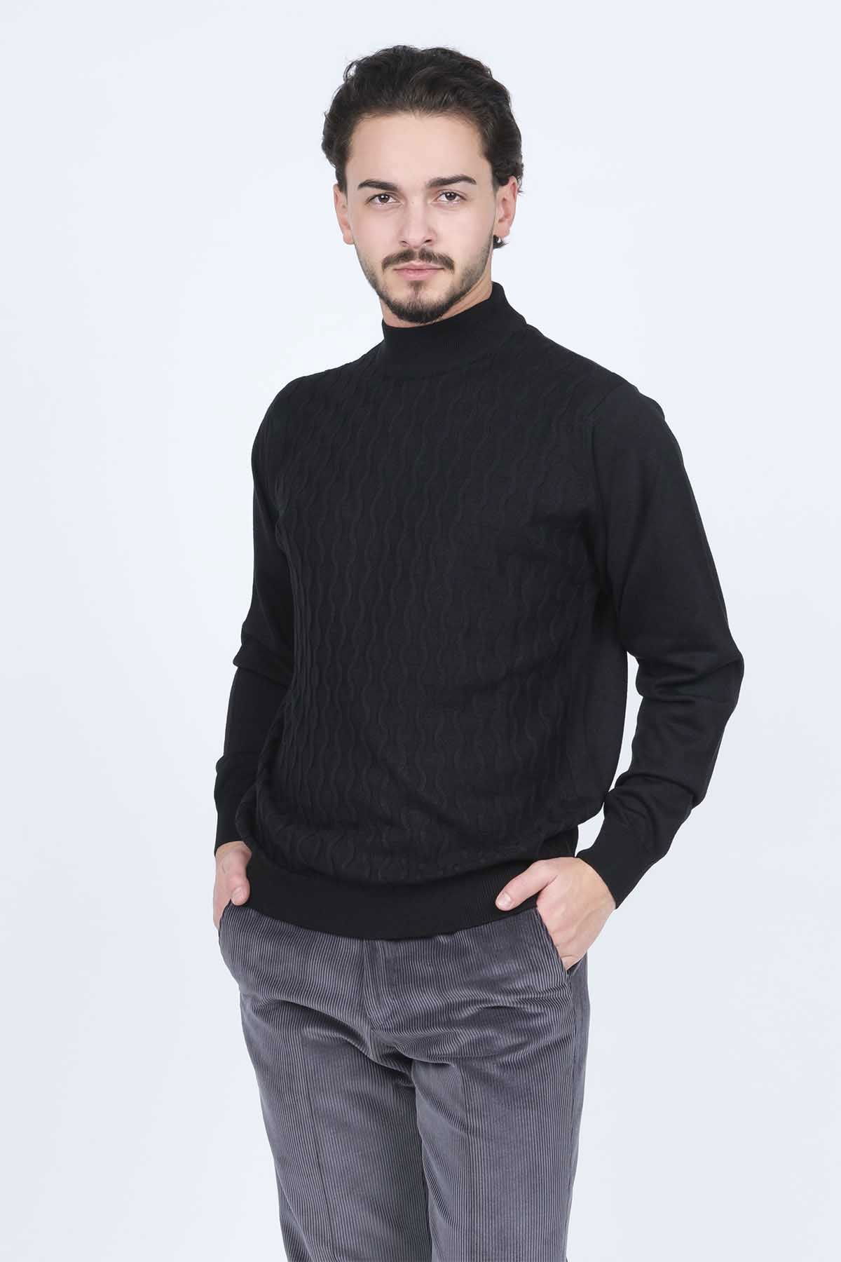 Herman Triko Erkek Desenli Yarım Balıkçı Triko Yün Kazak 6541353 Siyah