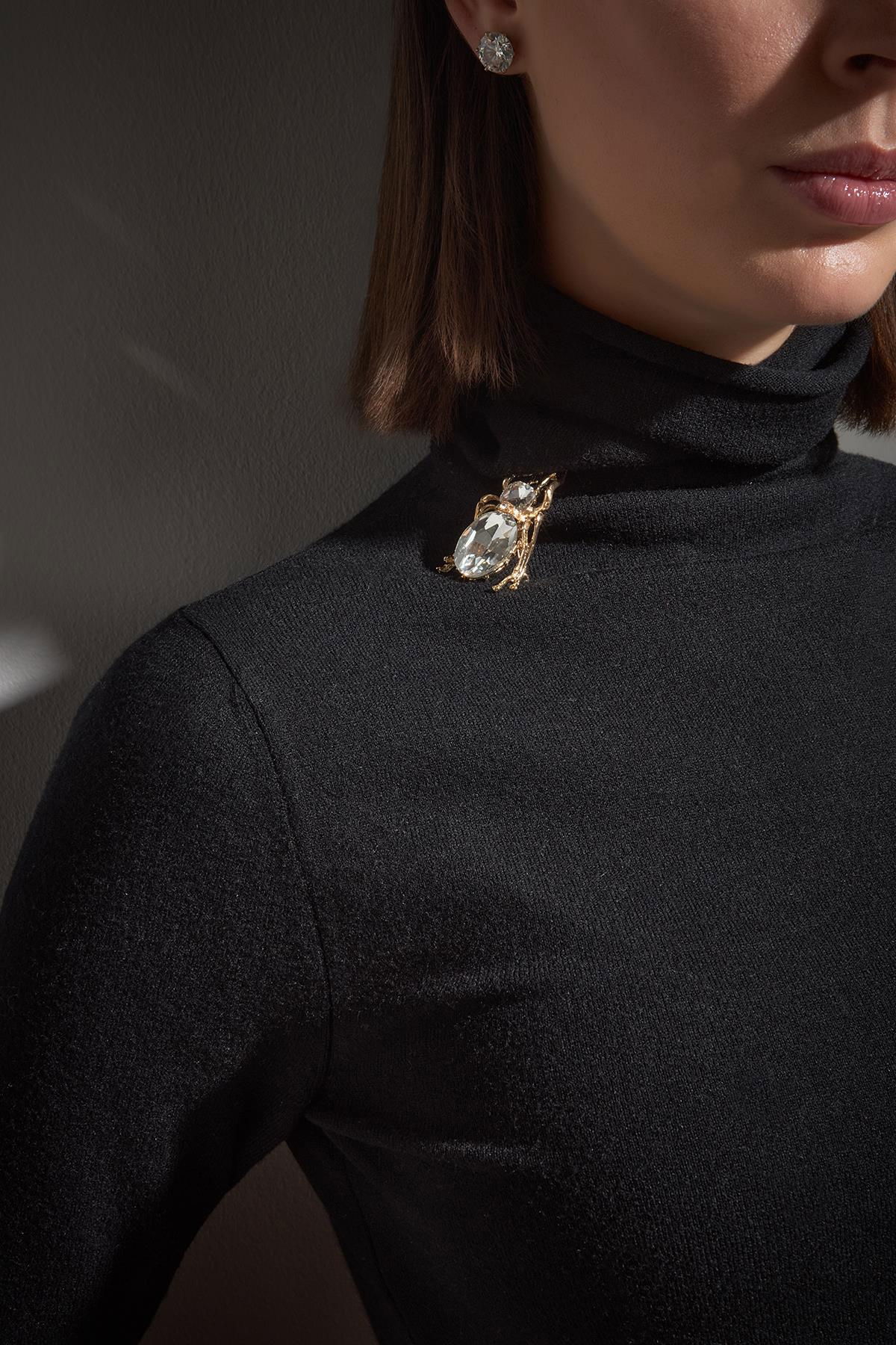 Detay: Arı broş detaylarıyla sevimli ve özgün bir dokunuş sunan boğazlı triko kazak, uzun kol ve tam kalıp yapısıyla soğuk havalarda hem sıcak hem de stil sahibi bir görünüm sağlar. Modern tasarımıyla günlük kombinlere enerjik ve zarif bir hava katmak isteyenler için ideal bir tercihtir;