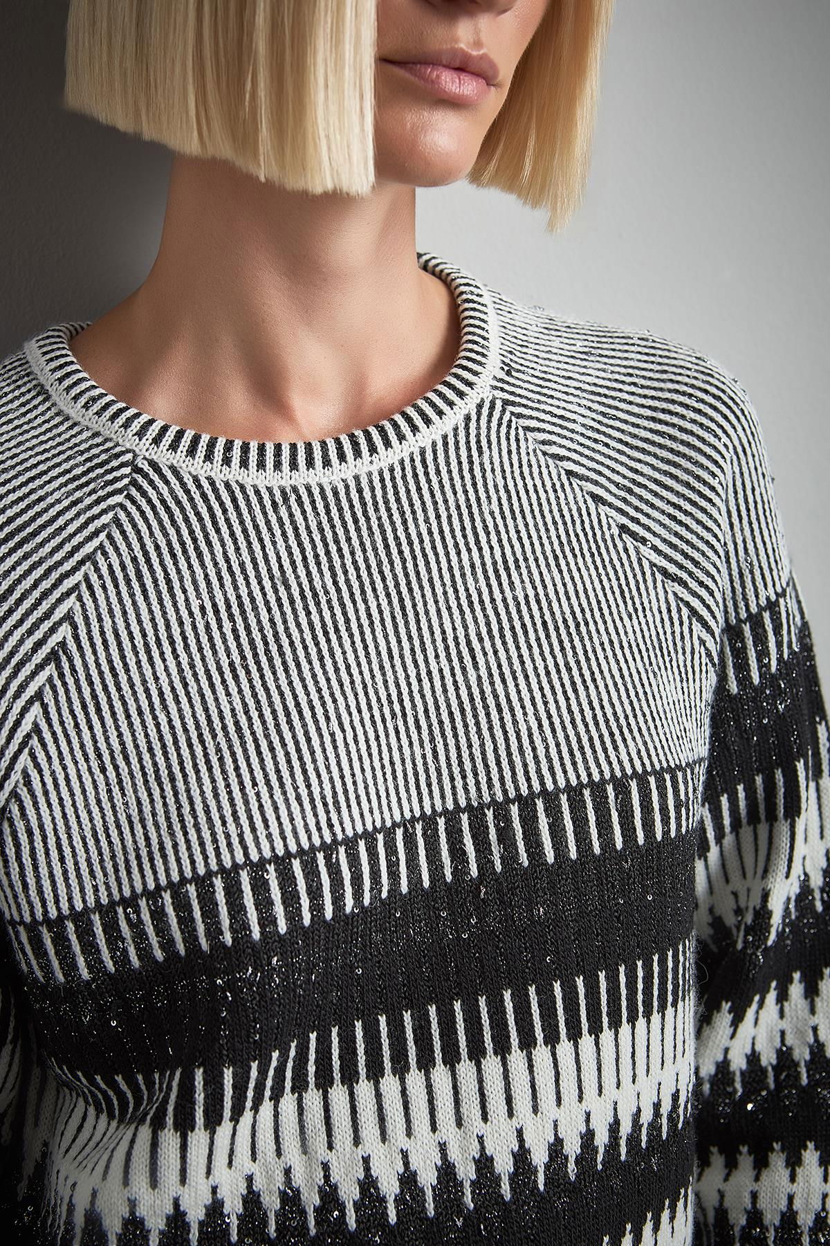 Detay: Desenli yapısıyla dinamik bir görünüm sunan uzun kollu triko kazak, bisiklet yaka ve tam kalıp formuyla hem şıklığı hem de konforu bir araya getirir. Günlük kombinlere enerjik ve modern bir dokunuş katmak isteyenler için ideal bir tercihtir;