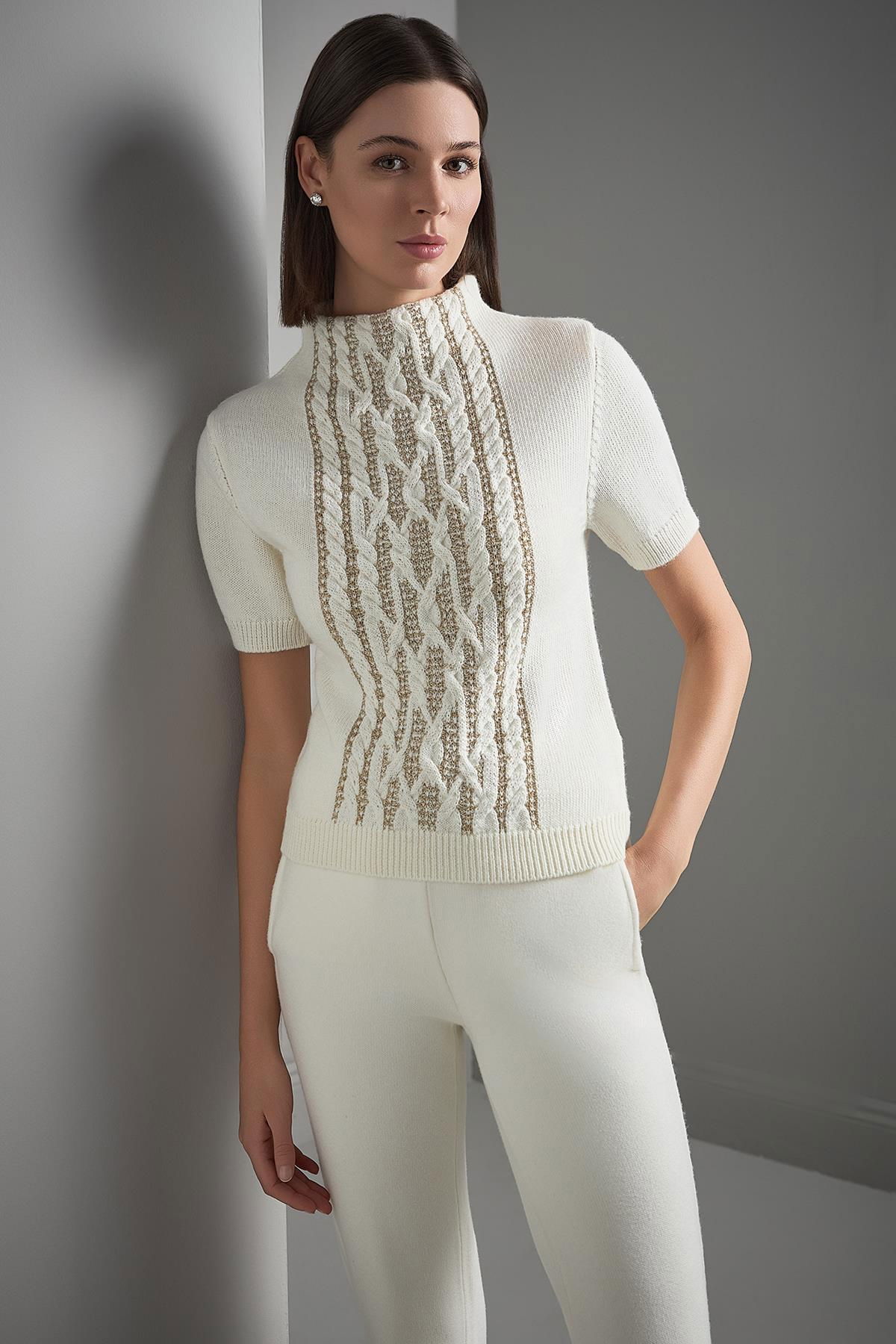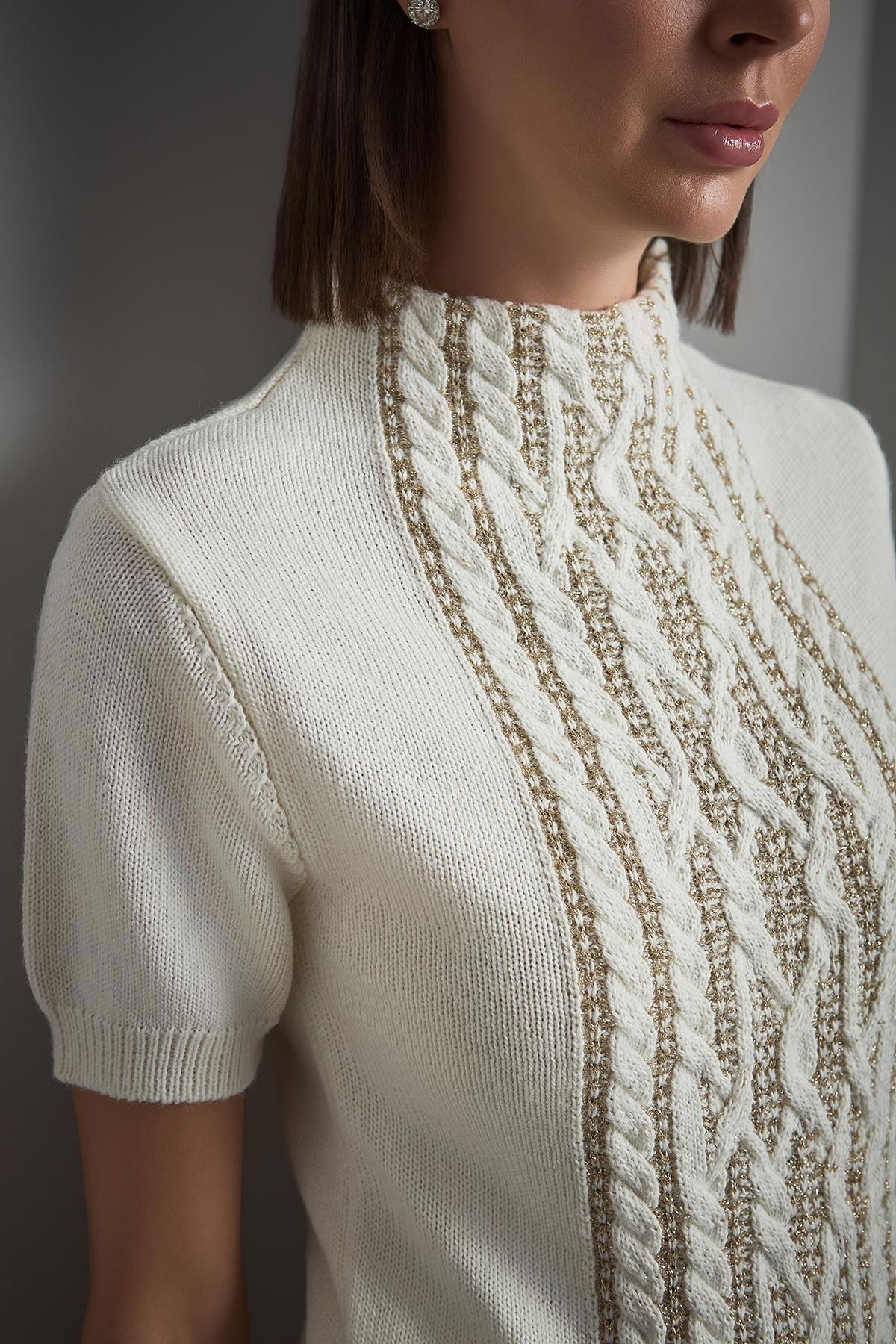 Detay: Simli dokusuyla ışıltılı bir görünüm sunan kısa kollu triko kazak, dik yaka ve tam kalıp yapısıyla modern ve zarif bir stil oluşturur. Günlük kombinlere sofistike bir dokunuş katmak isteyenler için ideal bir parçadır;