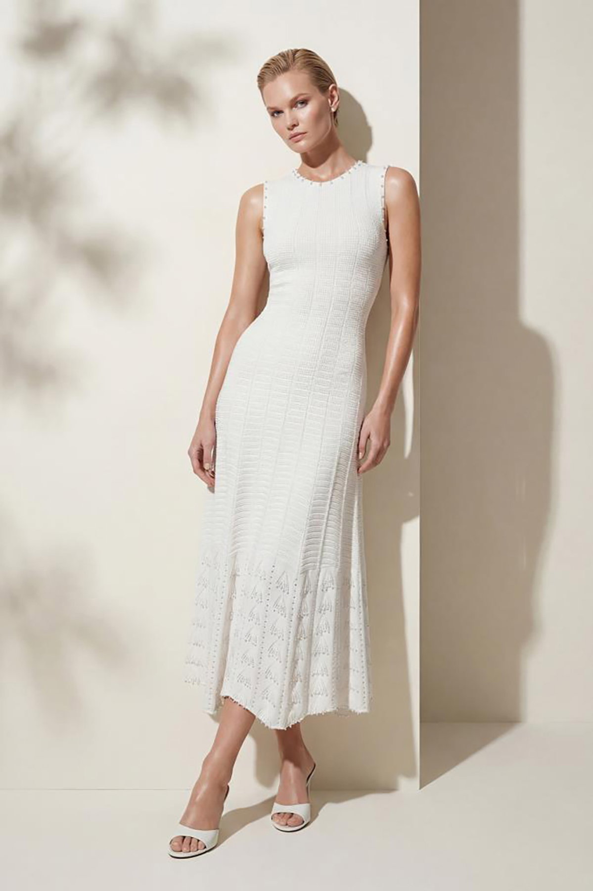 Detay: El işi inci baskılı ajurlu midi elbise, kolsuz tasarımıyla zarif ve feminen bir görünüm sunar. Ajurlu örgü dokusu hafif ve nefes alabilen bir yapı sağlarken inci baskı detayları sofistike bir şıklık katar. Midi boy uzunluğu modern bir siluet oluştururken kolsuz formu rahat bir kullanım sağlar. Günlük kombinlerde zarif bir tamamlayıcı, özel davetlerde ise dikkat çekici bir parça olarak öne çıkar;