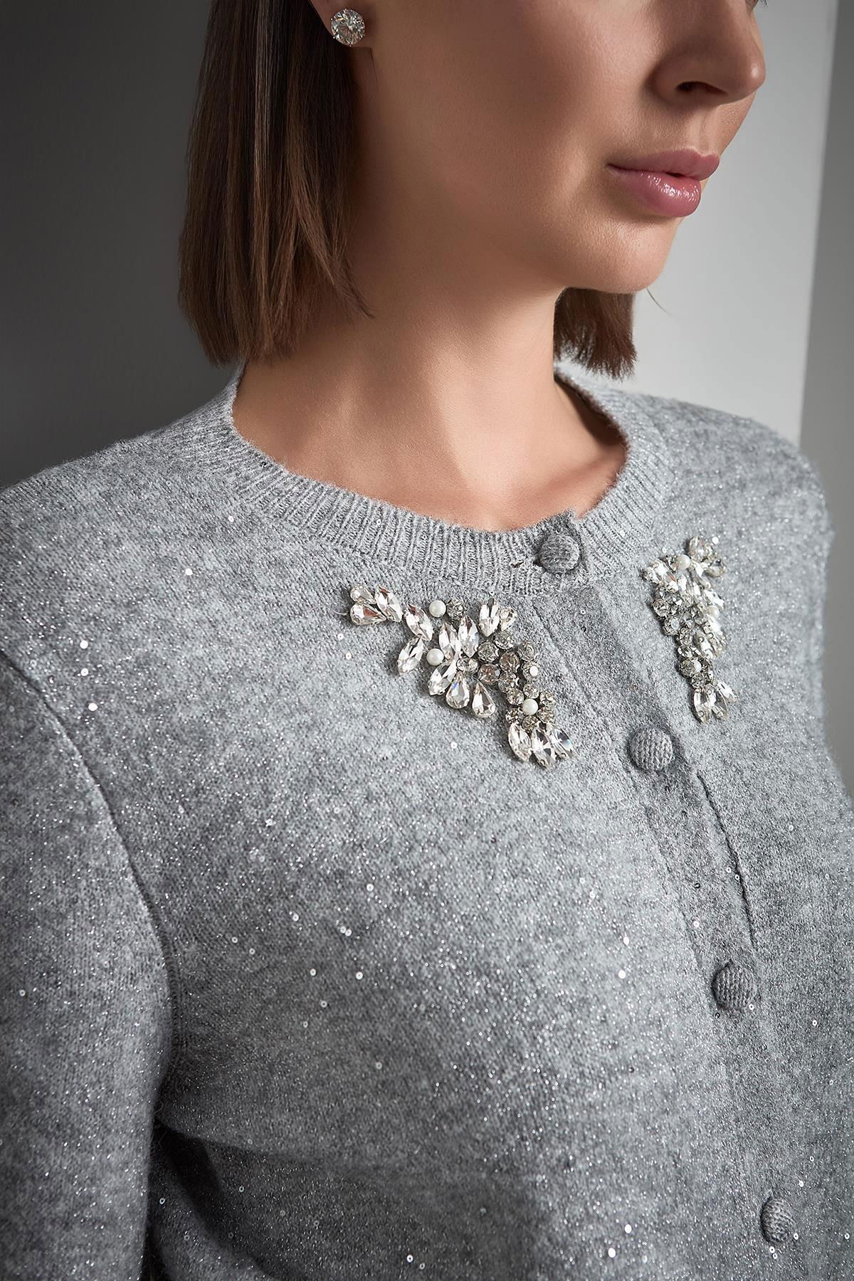 Detay: Tam kalıp formuyla konforlu bir kullanım sunan bu triko hırka, uzun kol tasarımıyla modern şıklığı yansıtır. El işi taş işlemeli modeli sayesinde zarif ve göz alıcı bir görünüm kazandırarak günlük kombinlerden özel davetlere kadar stilinizi tamamlar;