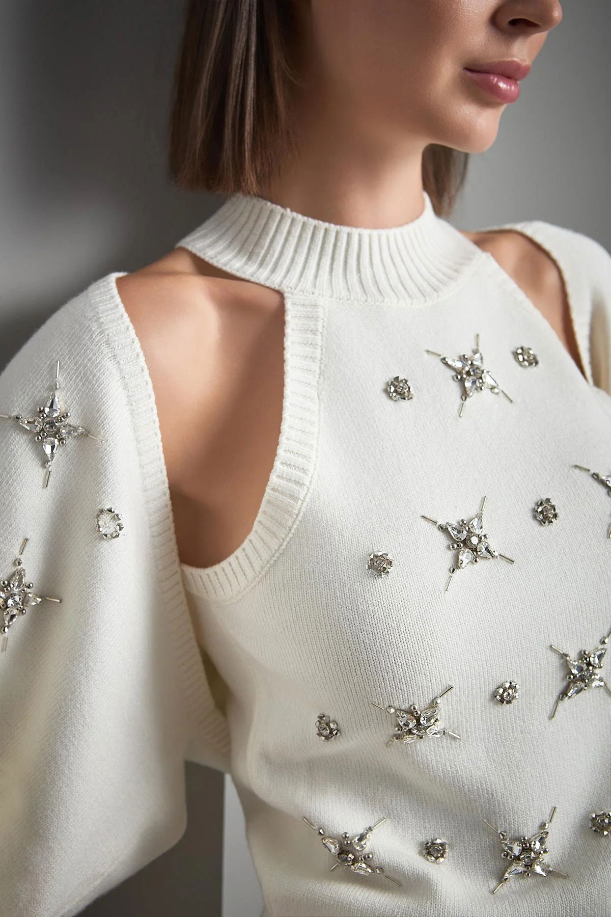 Detay: El işi taş işlemeleriyle zarif bir ışıltı sunan bu triko hırka, detaylardaki özenli işçilikle dikkat çeker. Tam kalıp kesimi ve uzun kollu yapısıyla hem şık hem de konforlu bir kullanım sağlar;