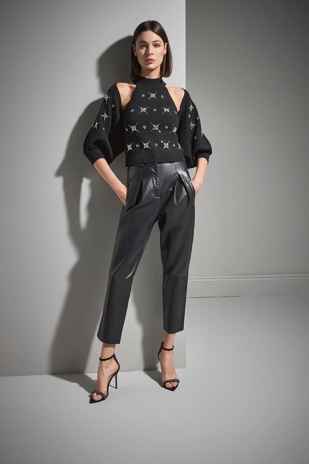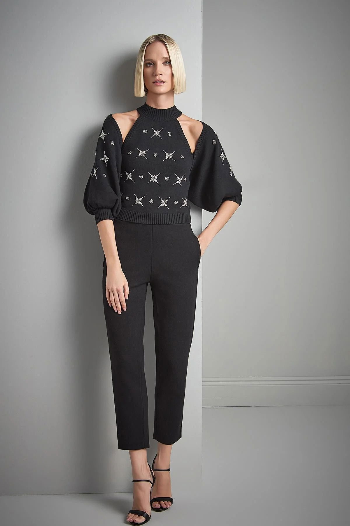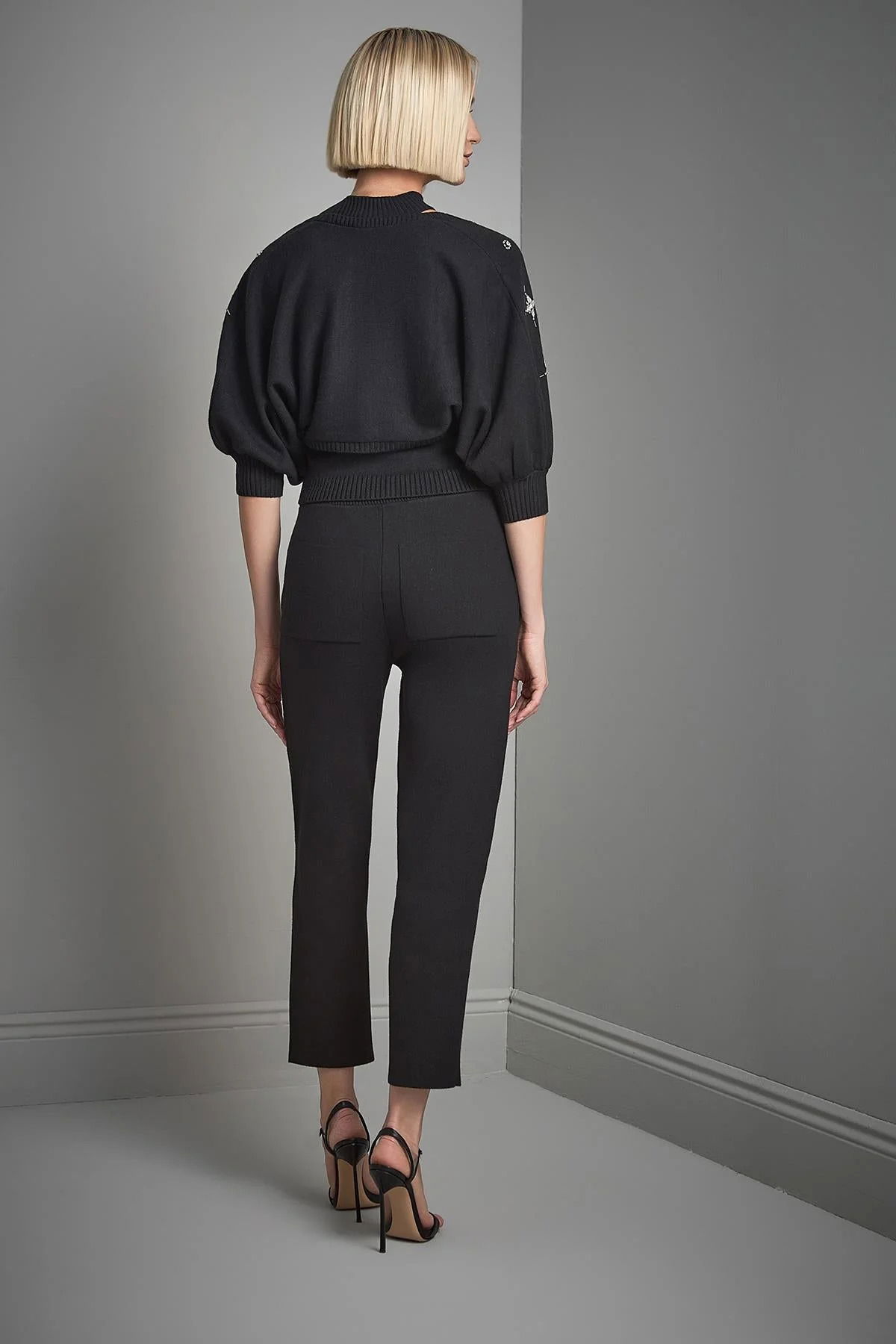 Join Us Kadın El İşi Taş İşlemeli Triko Hırka W105 Siyah