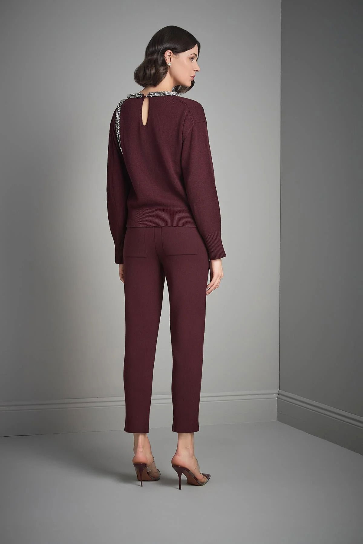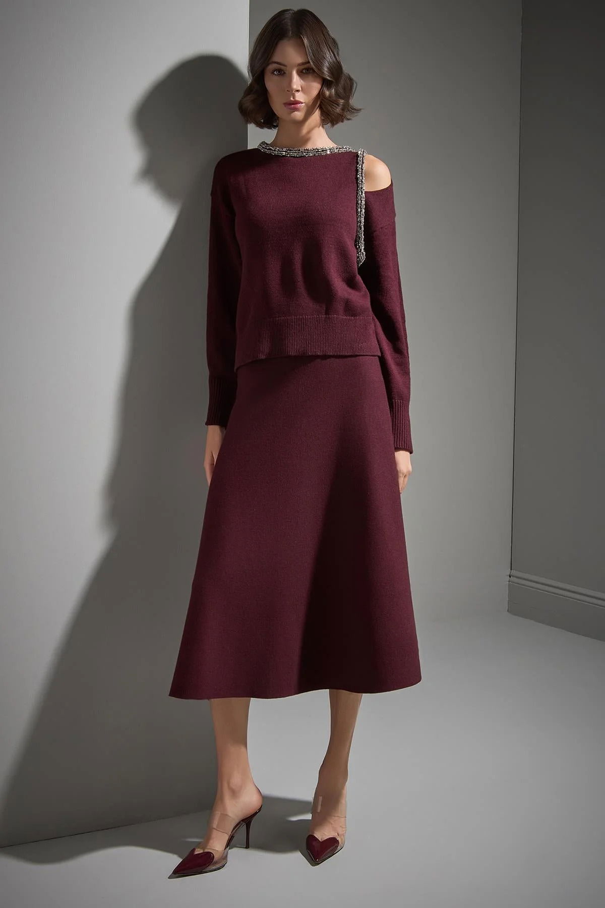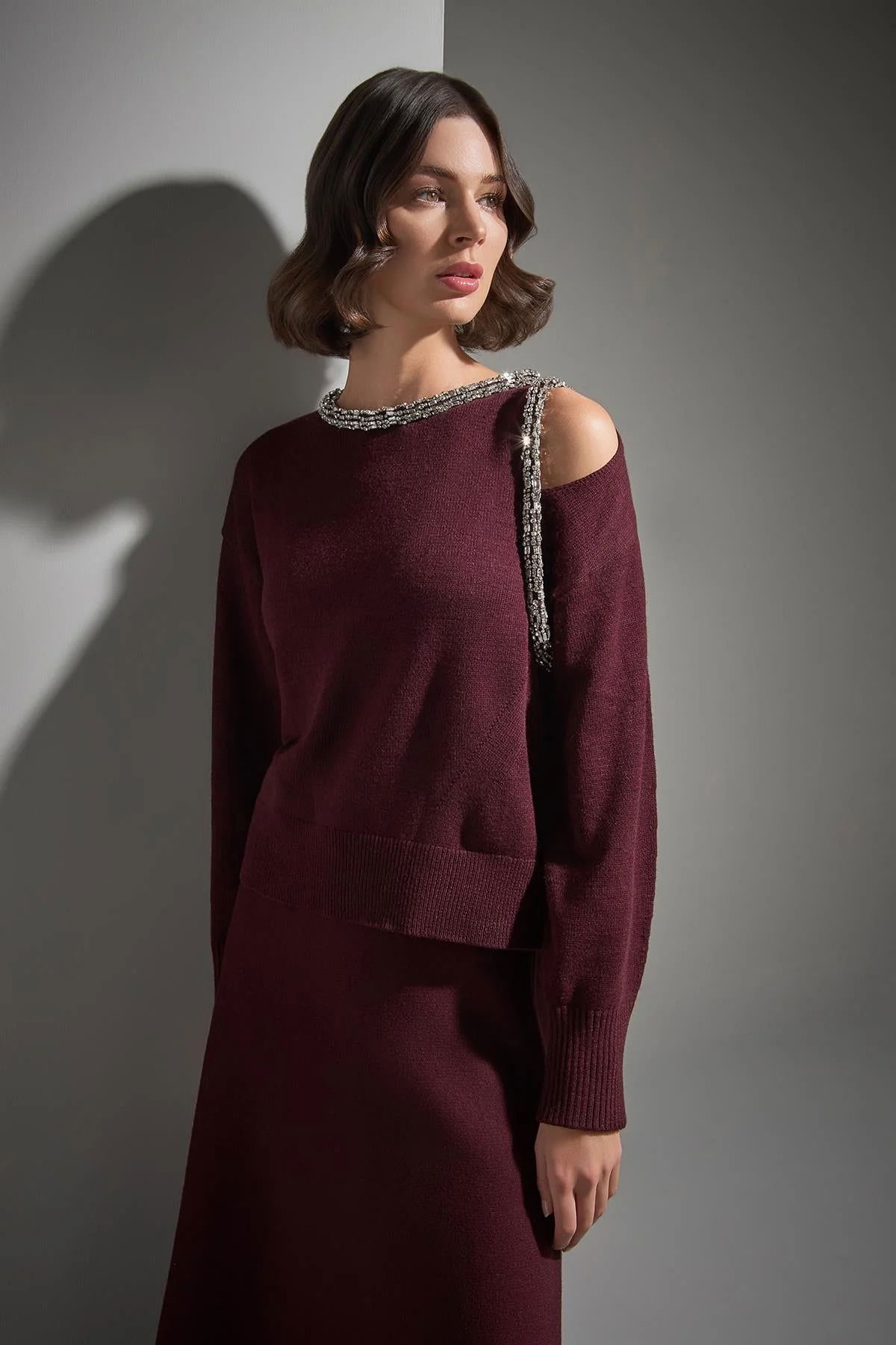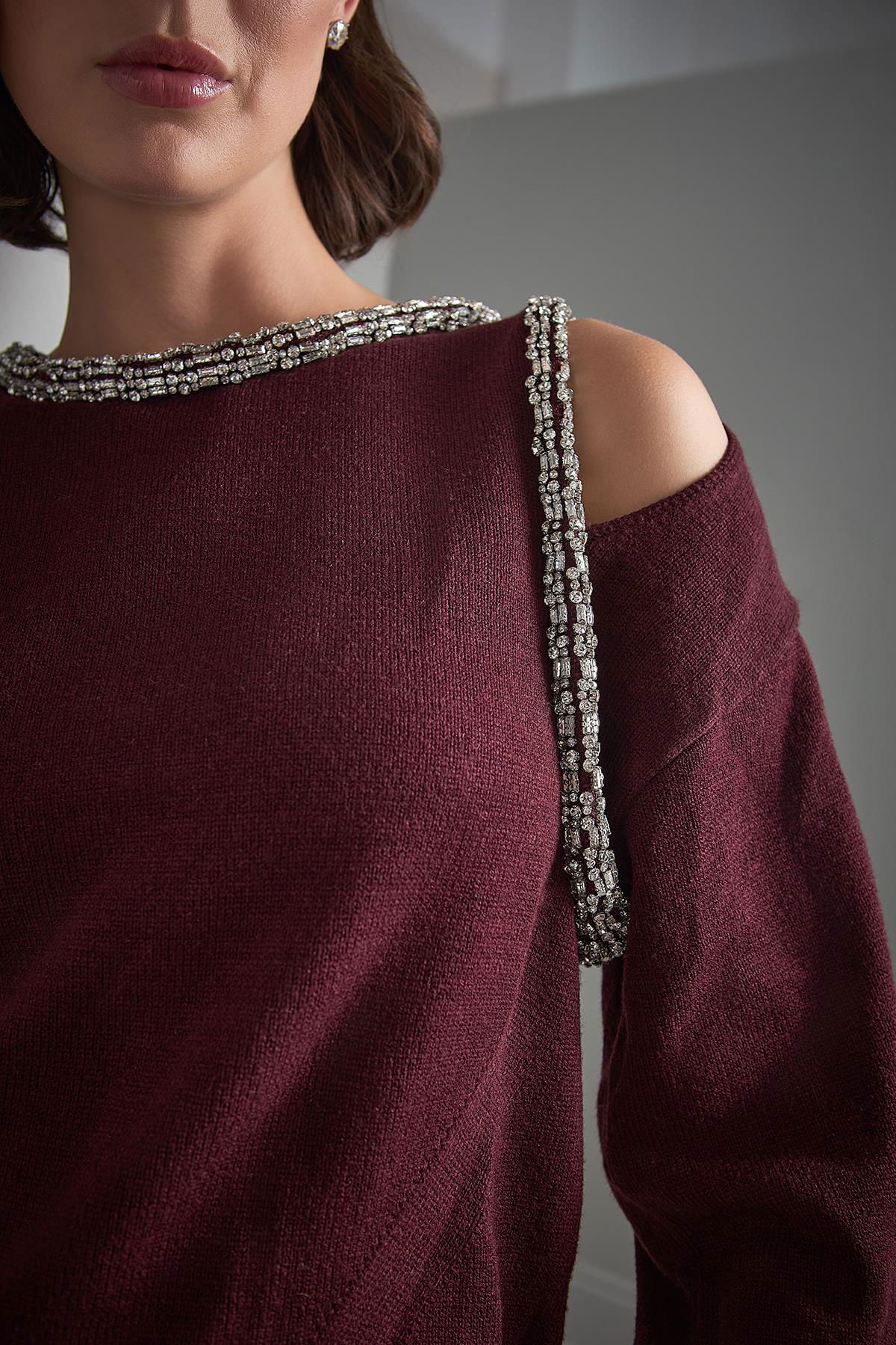 Detay: Pencere detaylı ve şerit taş işlemeli tasarımıyla dikkat çeken uzun kollu triko kazak, bisiklet yaka ve tam kalıp yapısıyla şıklığı konforla buluşturur. Işıltılı dokusu ve özgün detaylarıyla günlük kombinlere zarif ve modern bir hava katmak isteyenler için ideal bir tercihtir;