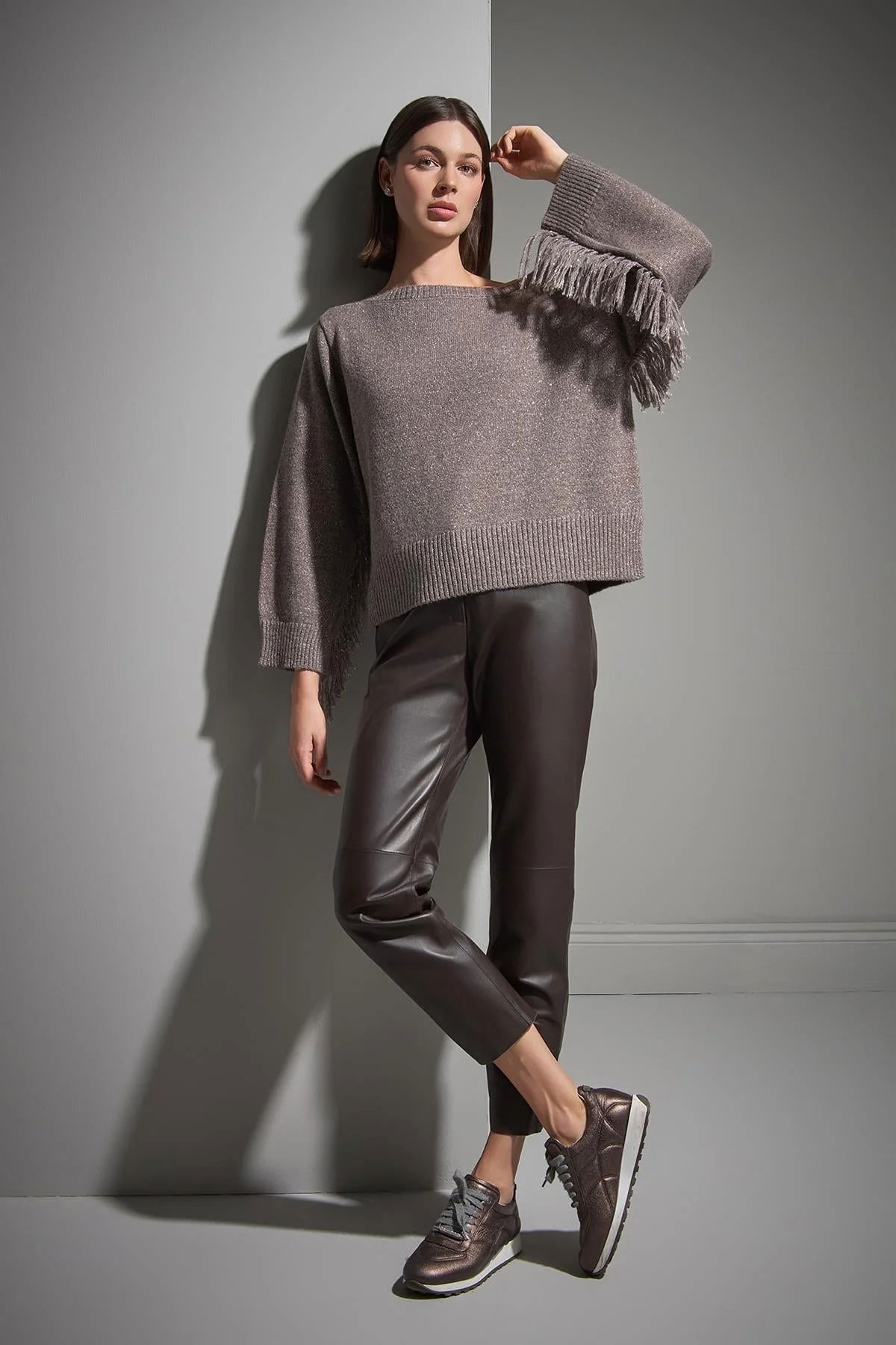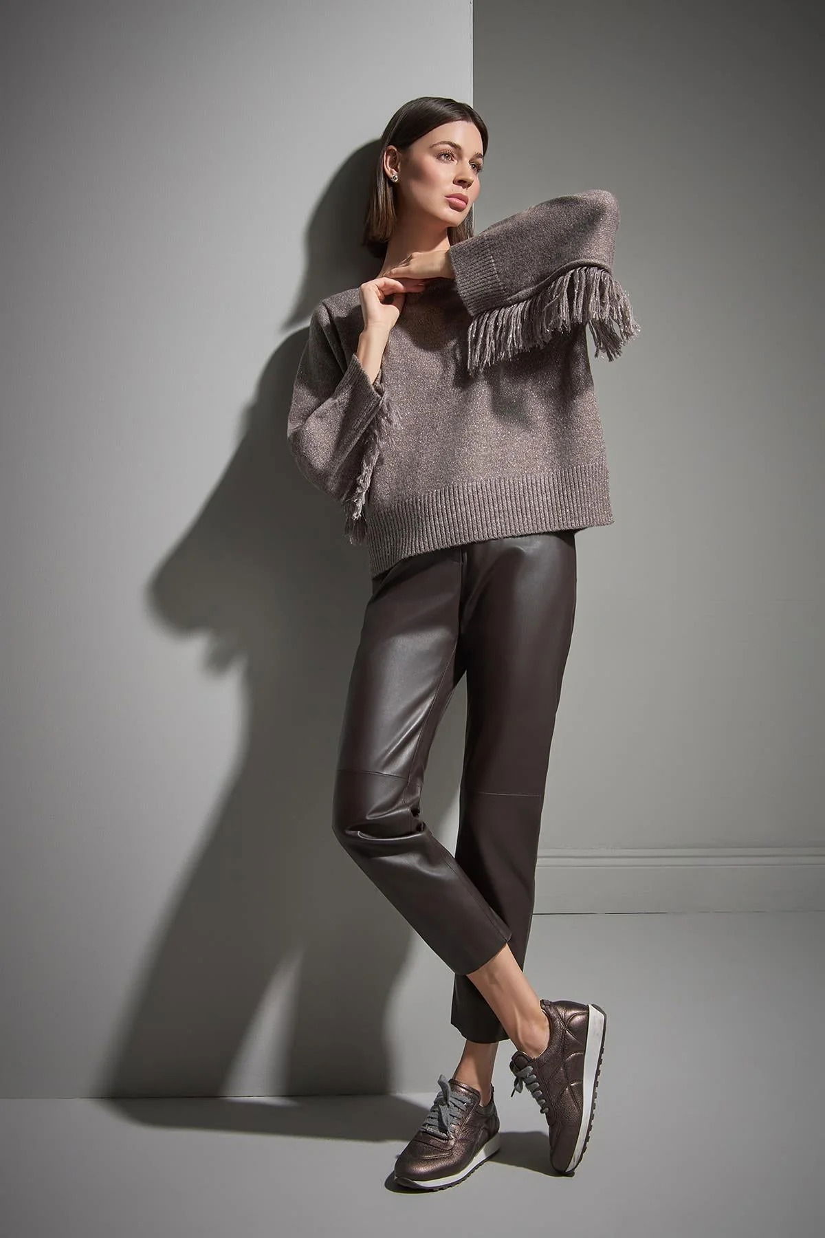 Detay: Tam kalıp tasarımıyla konforu ön planda tutan triko kazak, kayık yaka formu ile zarif bir görünüm sunar. Uzun kol yapısı sayesinde mevsim geçişlerinde ideal bir kullanım sağlar. Püskül detaylı ve simli modeliyle modern şıklığı yansıtarak stilinize göz alıcı bir dokunuş katar;