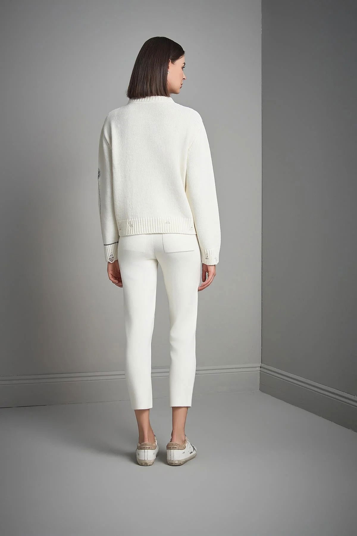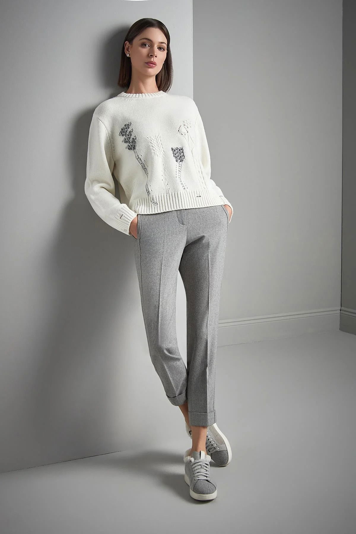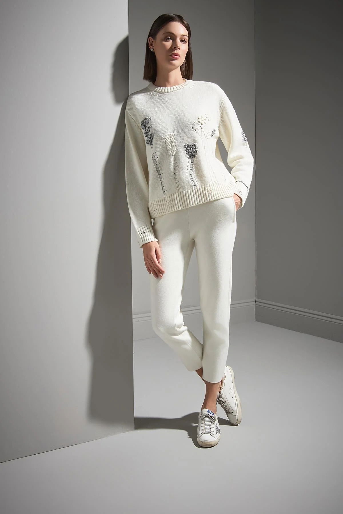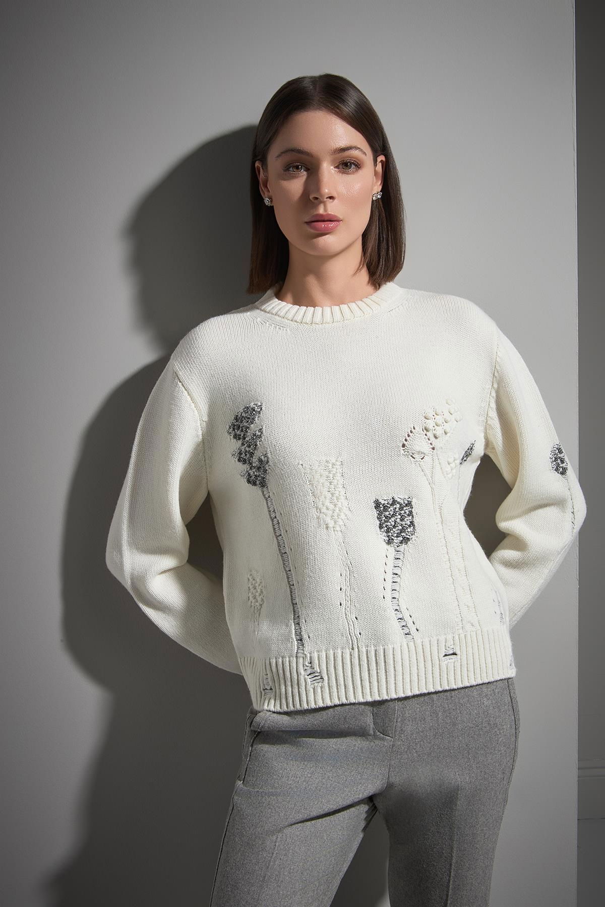 Detay: Sim detaylı ve desenli tasarımıyla öne çıkan uzun kollu triko kazak, bisiklet yaka ve tam kalıp yapısıyla hem şık hem de konforlu bir stil sunar. Günlük kombinlere ışıltı ve zarafet katmak isteyenler için ideal bir tercihtir.;