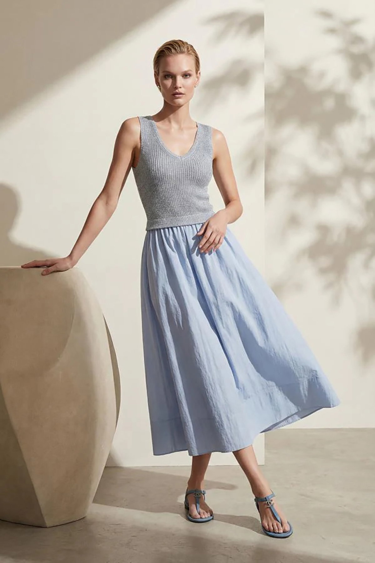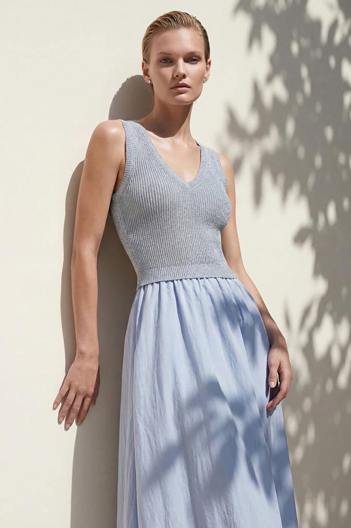 Detay: V yaka tasarıma sahip midi elbise, kumaş etekli ve kolsuz modeliyle zarif bir siluet sunar. Akıcı yapısı sayesinde feminen bir duruş sergilerken modern çizgisiyle hem günlük kombinlerde hem de özel davetlerde şıklığı ön plana çıkarır. Minimal ve zarif detaylarıyla stilinizi tamamlayan dikkat çekici bir parçadır;