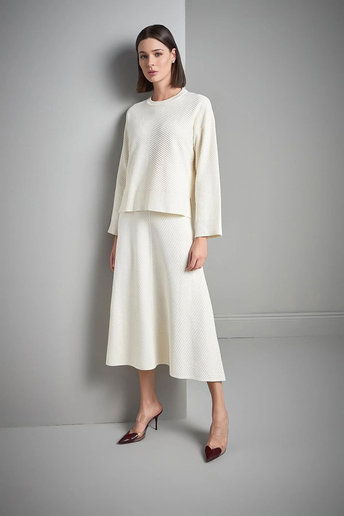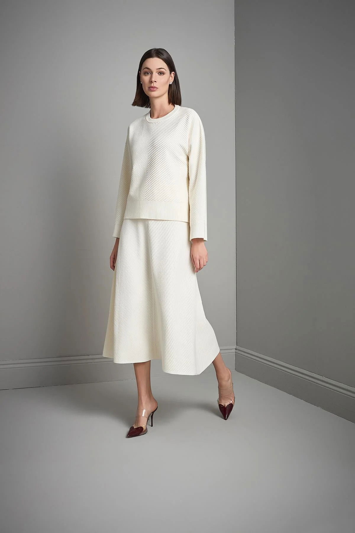 Detay: Verev desenli kloş midi triko etek, tam kalıp yapısıyla vücuda uyum sağlarken hareketli tasarımıyla feminen bir stil sunar. Günlük kombinlerde zarif ve modern bir görünüm elde etmek isteyenler için ideal bir tercihtir;