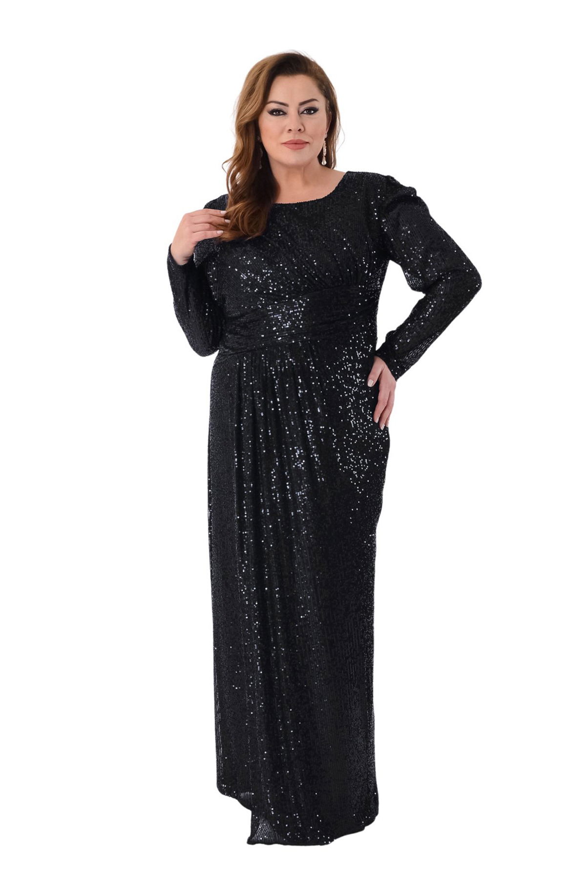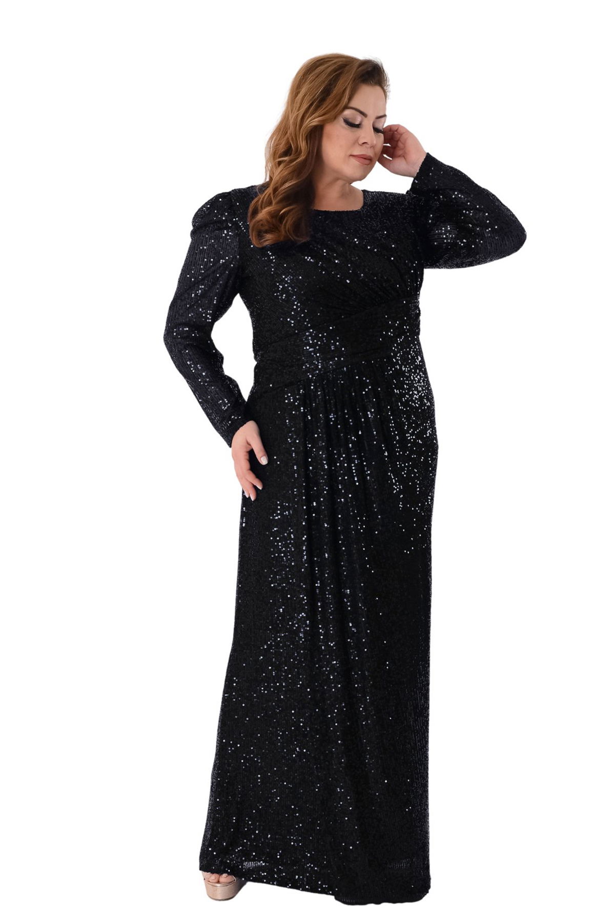 Detay: Büyük beden full pul payet işlemeli uzun abiye elbise, likralı kumaşı sayesinde rahat bir kullanım sunarken şıklığı ön planda tutar. Uzun kollu tasarımı, bel kısmındaki sabit büzgülü kemer ve etek drapeleriyle zarif bir siluet oluşturur. Kapalı anvelop modeli, yuvarlak yaka detayı ve astarlı fermuarlı yapısıyla özel davetlerde göz alıcı bir tercih haline gelir;