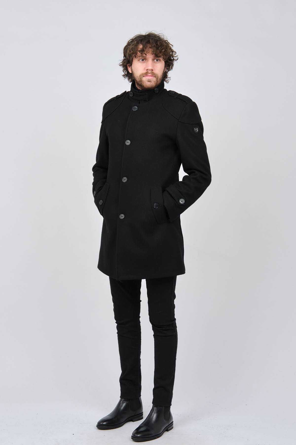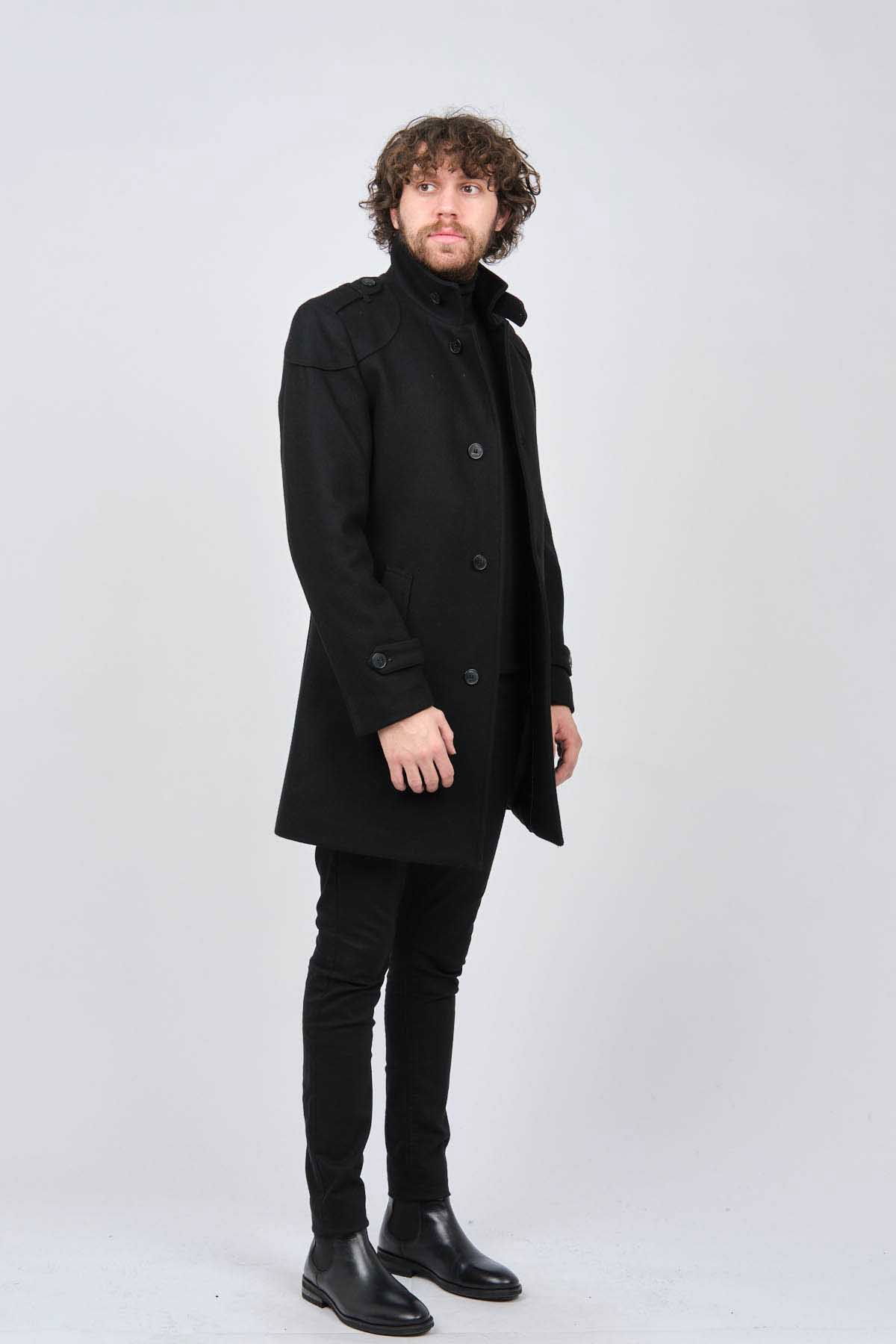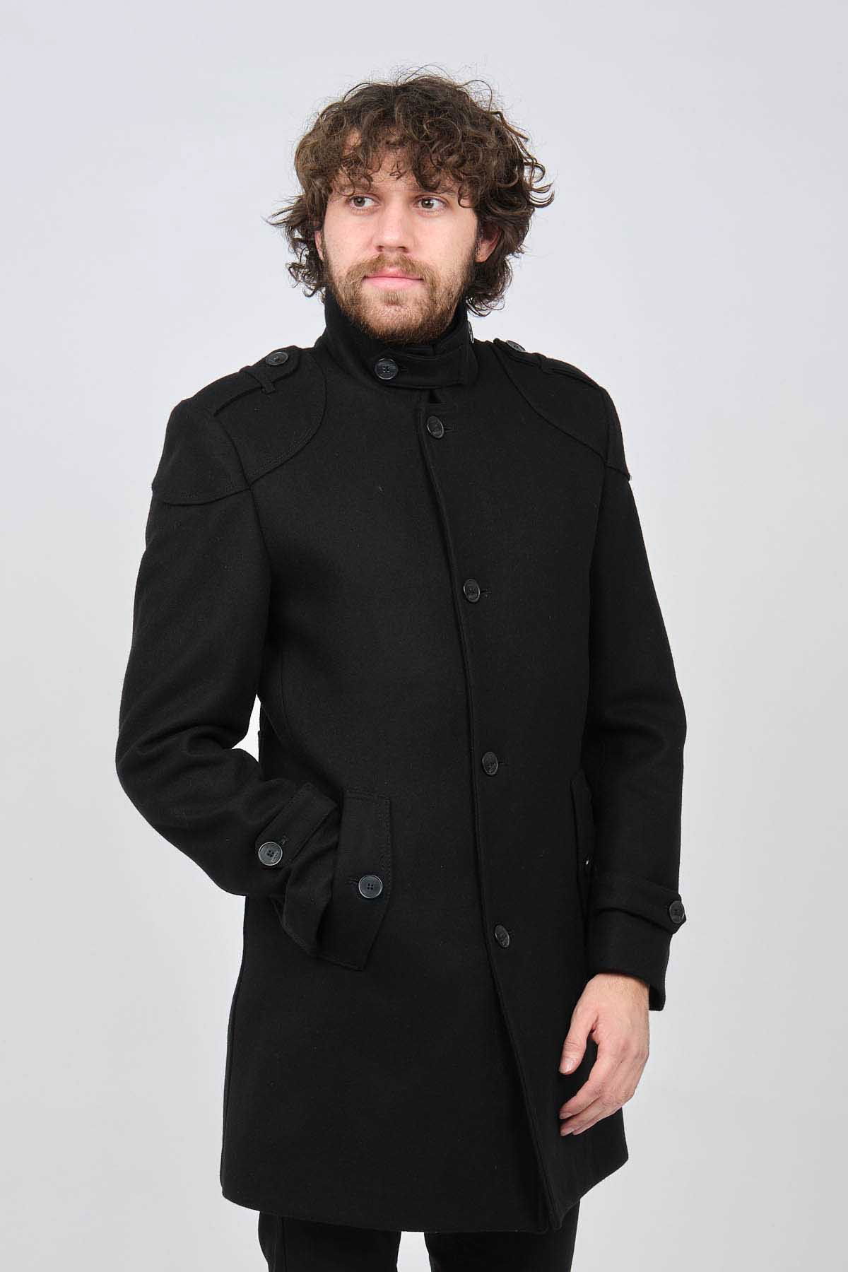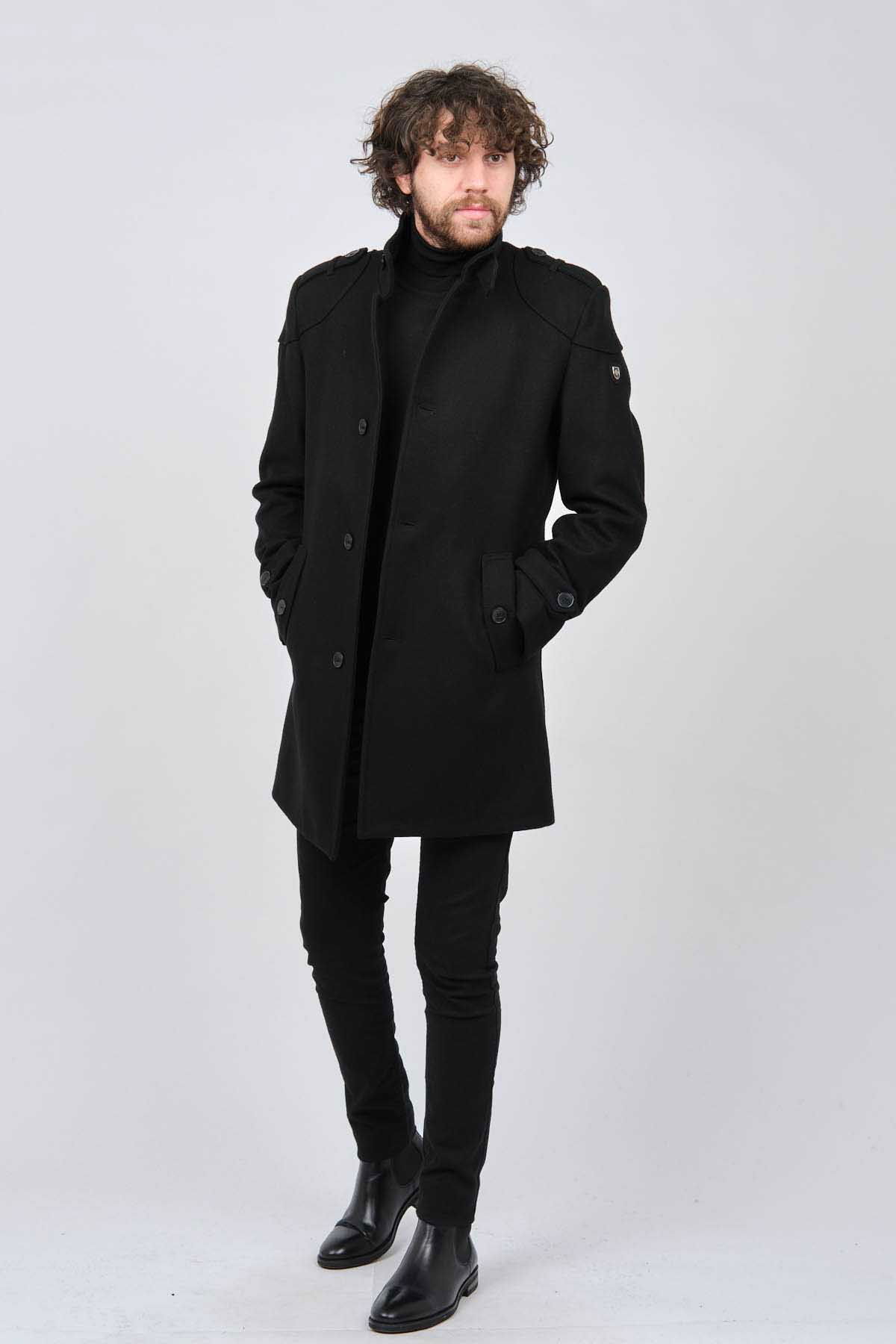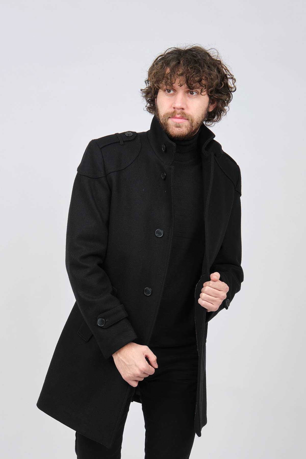 Lucas Erkek Dik Yaka Apoletli Spor Yün Kaban 2650422 Siyah