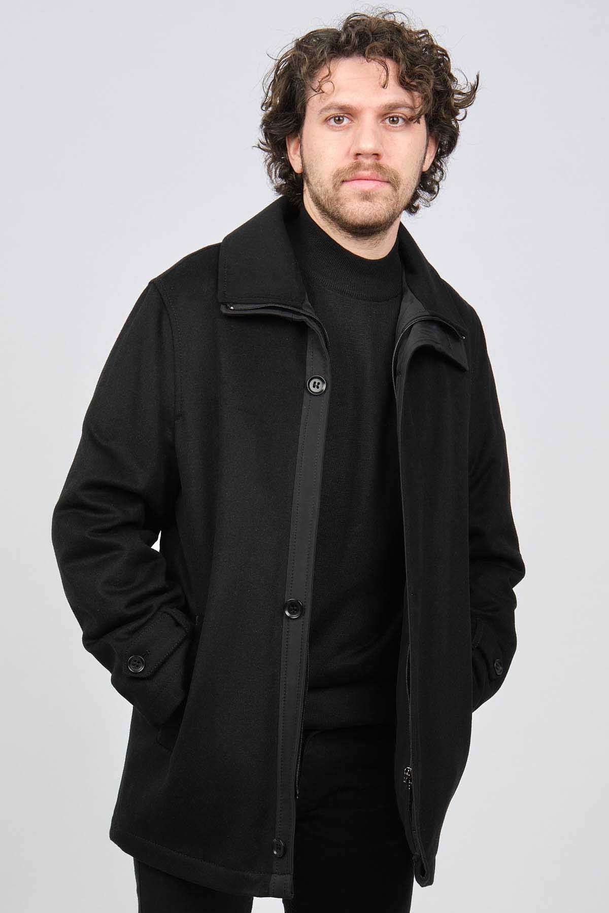 Lucas Erkek Kol Apoletli Çift Yakalı Yün Kaban 2650552 Siyah