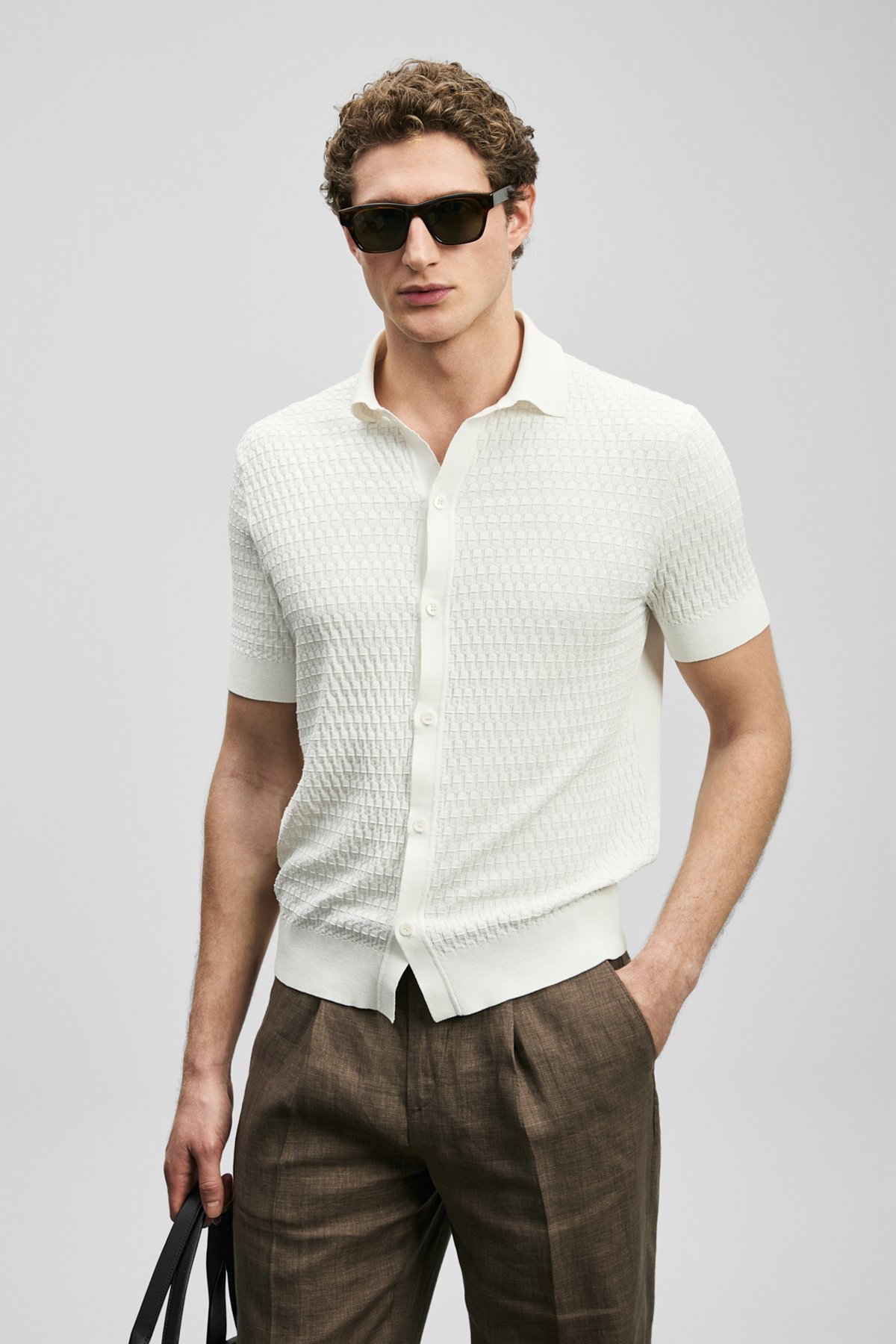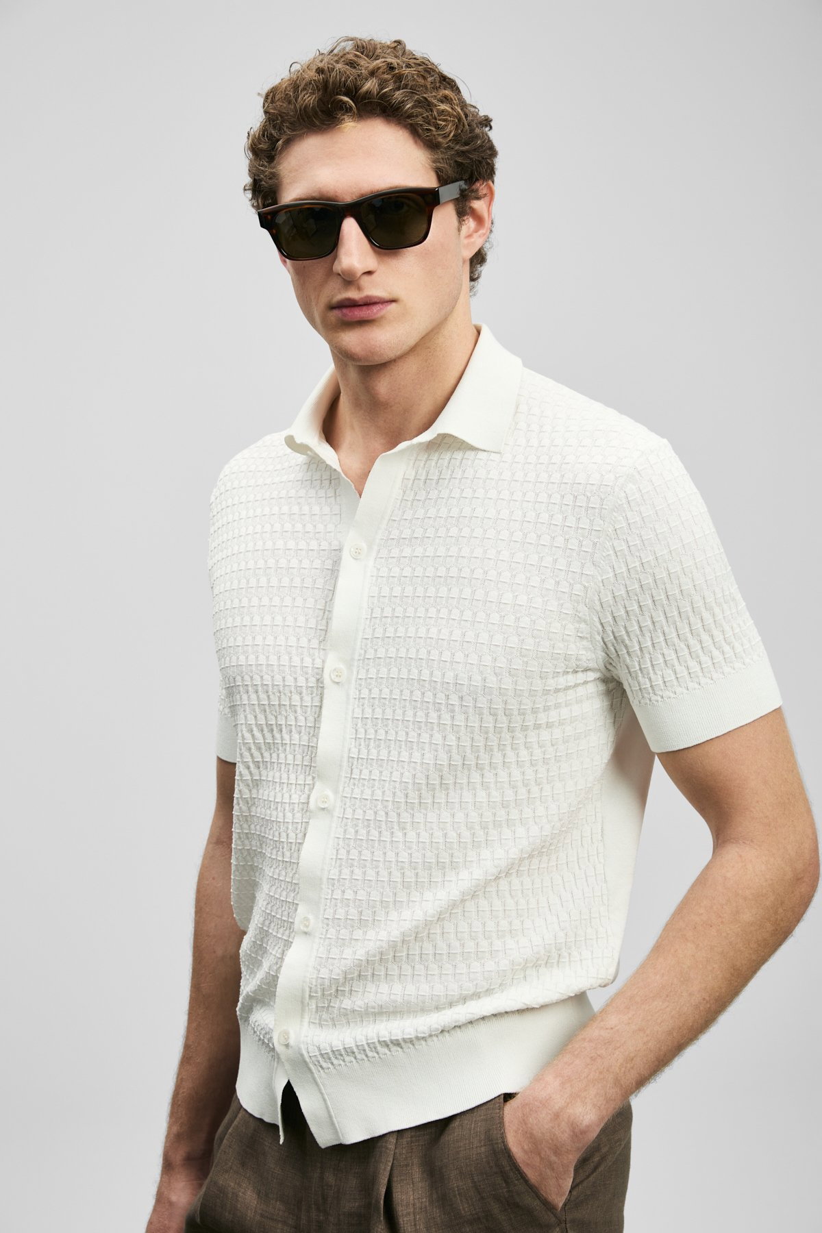 Detay: Triko kumaştan üretilmiş, düğmeli yaka ve kısa kollu tasarımıyla öne çıkan bu kazak modern ve rahat bir görünüm sunuyor. Düğmeli yaka detayı klasik bir şıklık kazandırırken, kısa kollar günlük kullanımda konforlu bir hareket alanı sağlıyor. Triko dokusu ise yumuşak ve esnek yapısıyla hem şık hem de rahat bir tercih haline geliyor;