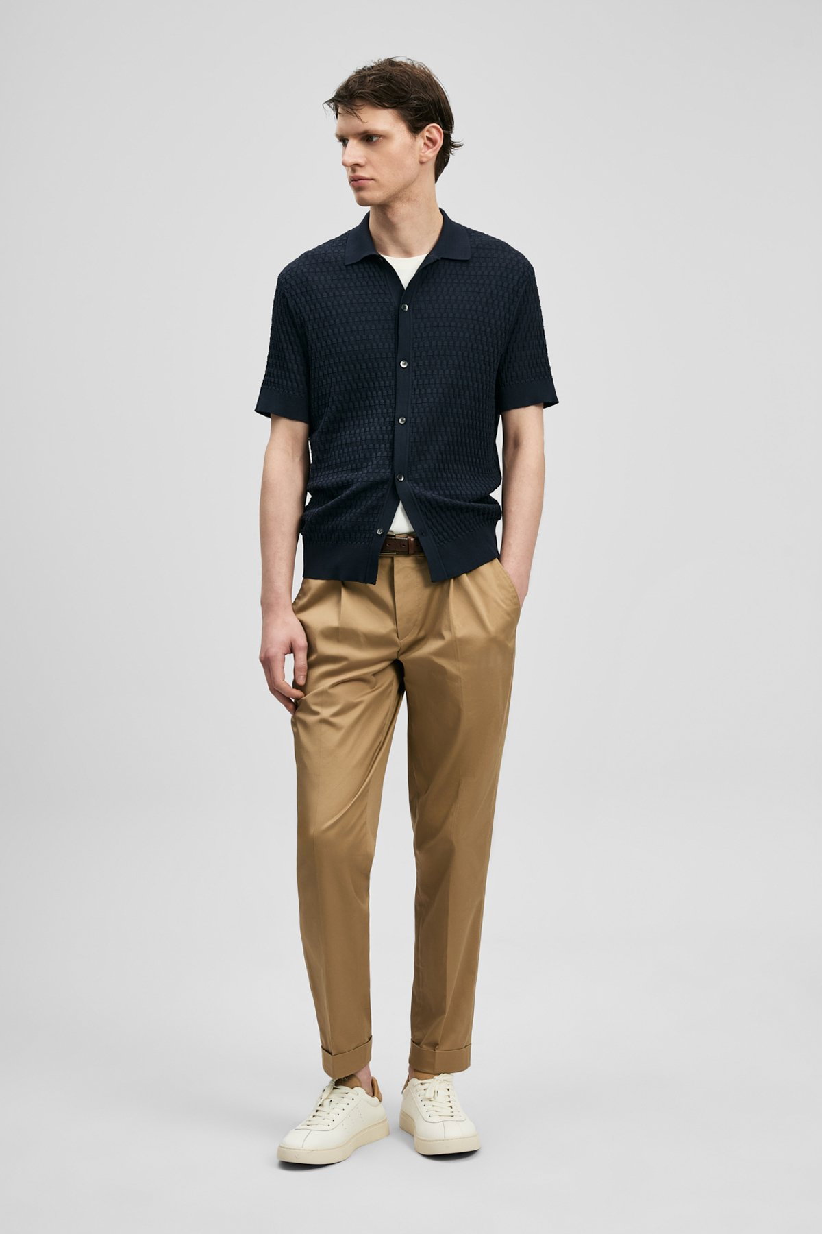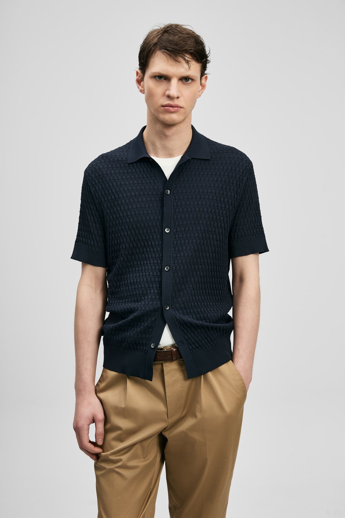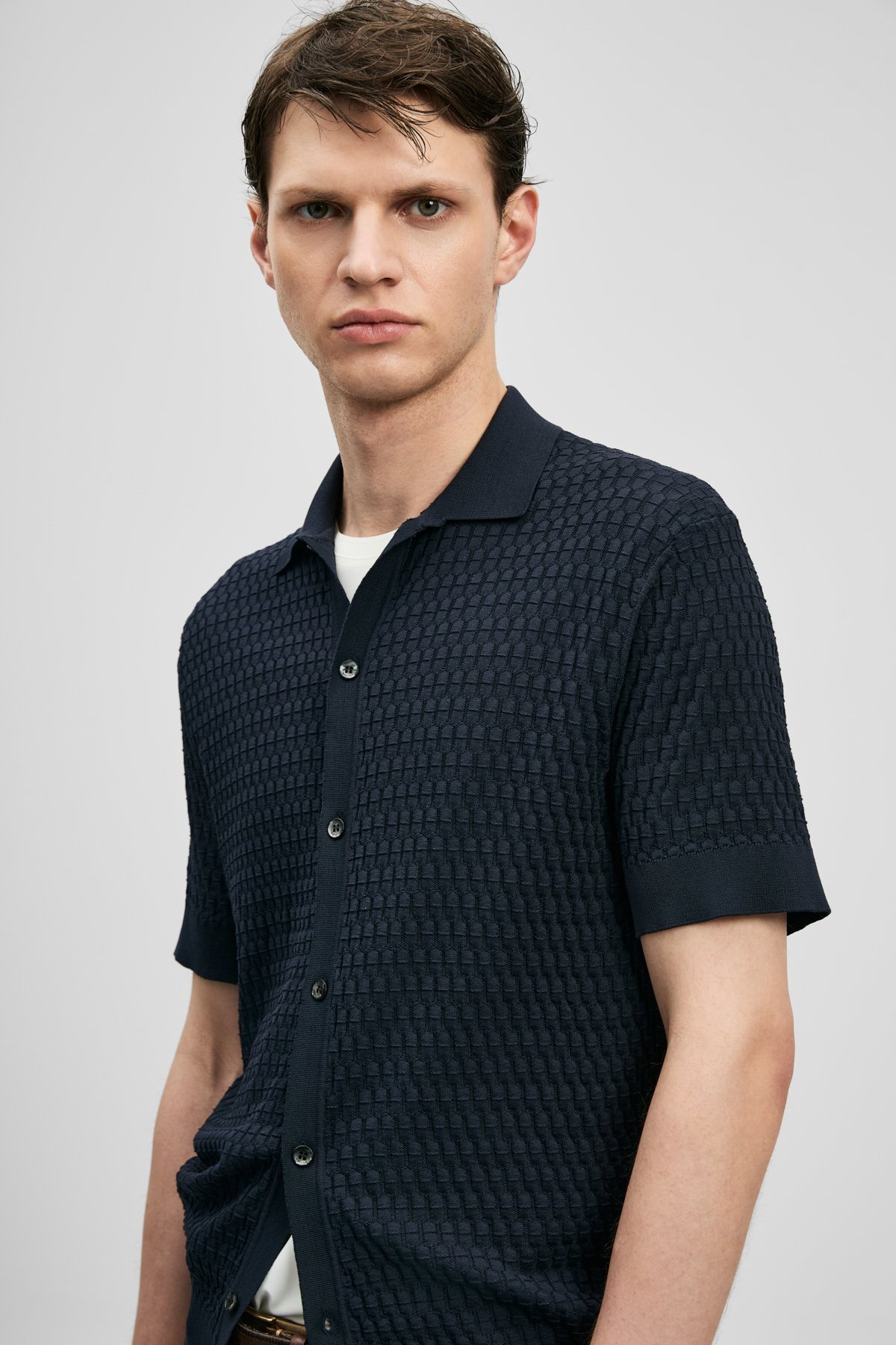 Detay: Triko kumaştan üretilmiş, düğmeli yaka ve kısa kollu tasarımıyla öne çıkan bu kazak modern ve rahat bir görünüm sunuyor. Düğmeli yaka detayı klasik bir şıklık kazandırırken, kısa kollar günlük kullanımda konforlu bir hareket alanı sağlıyor. Triko dokusu ise yumuşak ve esnek yapısıyla hem şık hem de rahat bir tercih haline geliyor;