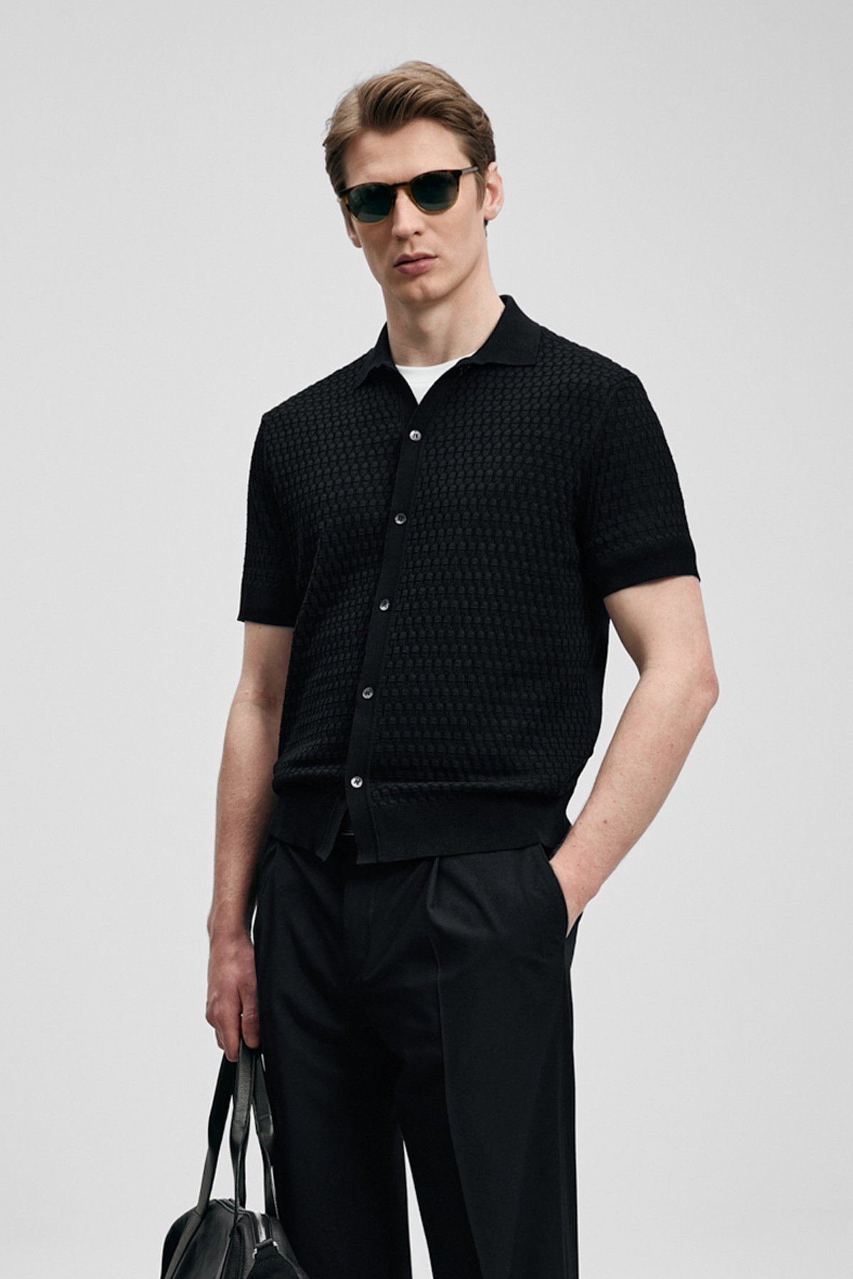 Detay: Triko kumaştan üretilmiş, düğmeli yaka ve kısa kollu tasarımıyla öne çıkan bu kazak modern ve rahat bir görünüm sunuyor. Düğmeli yaka detayı klasik bir şıklık kazandırırken, kısa kollar günlük kullanımda konforlu bir hareket alanı sağlıyor. Triko dokusu ise yumuşak ve esnek yapısıyla hem şık hem de rahat bir tercih haline geliyor;