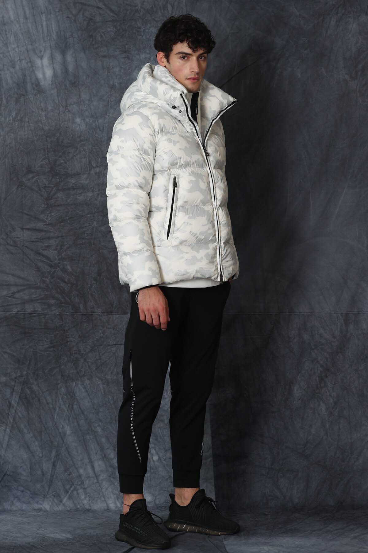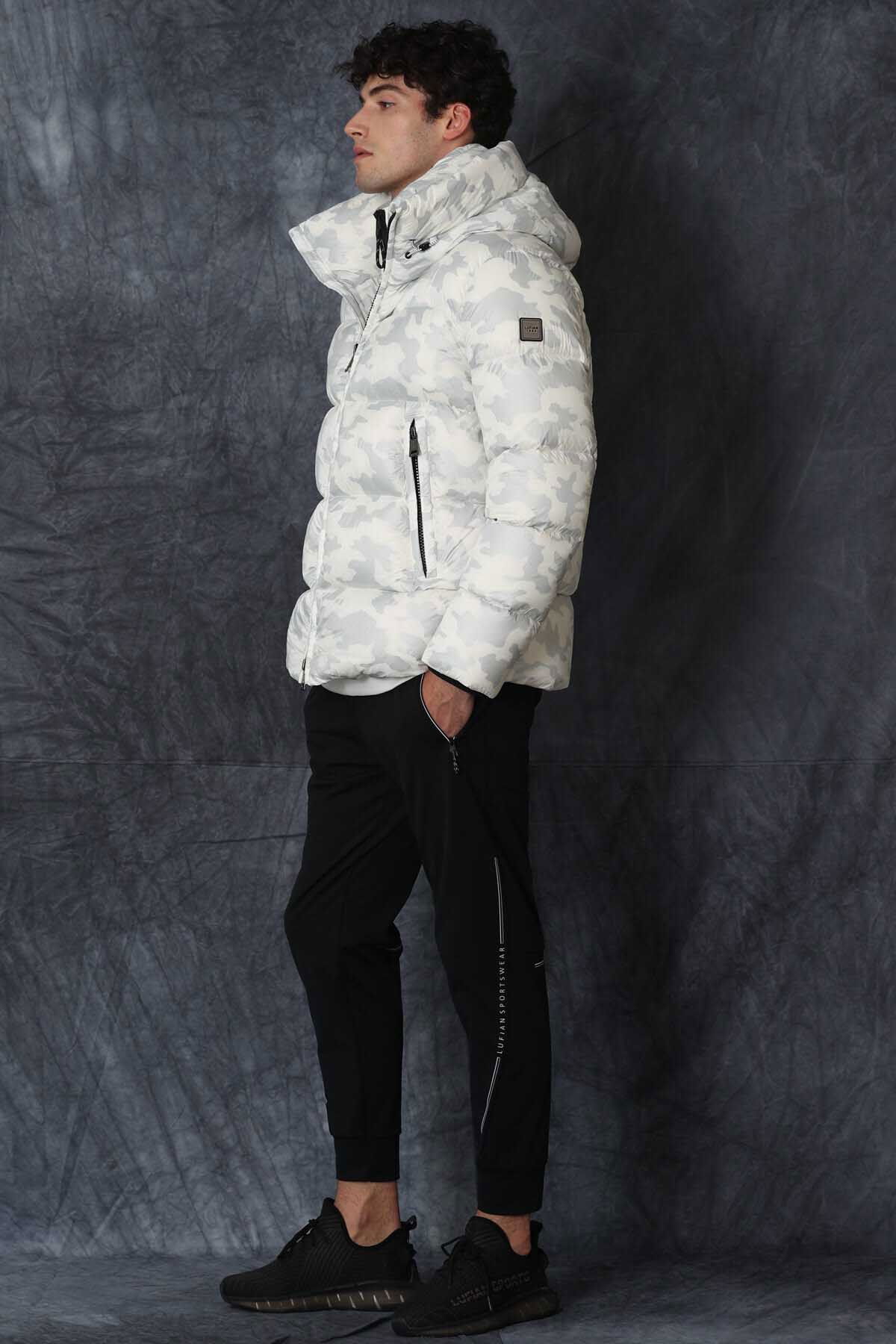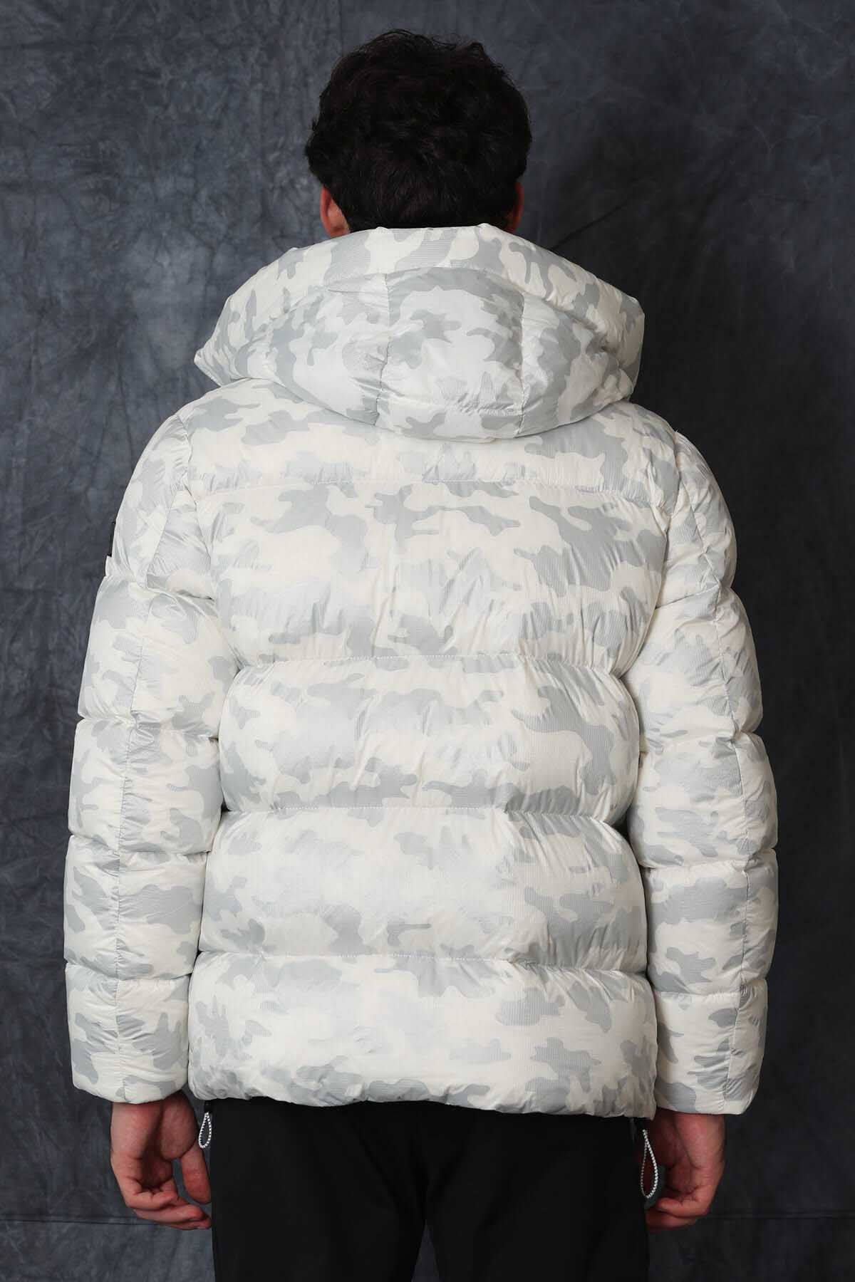Detay: Dokuma, kaz tüyü dolgulu mont;
