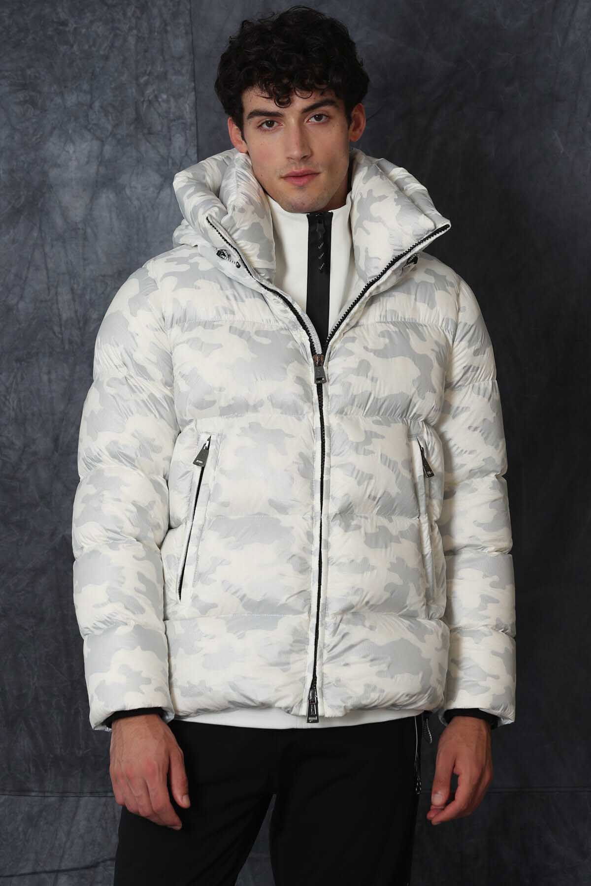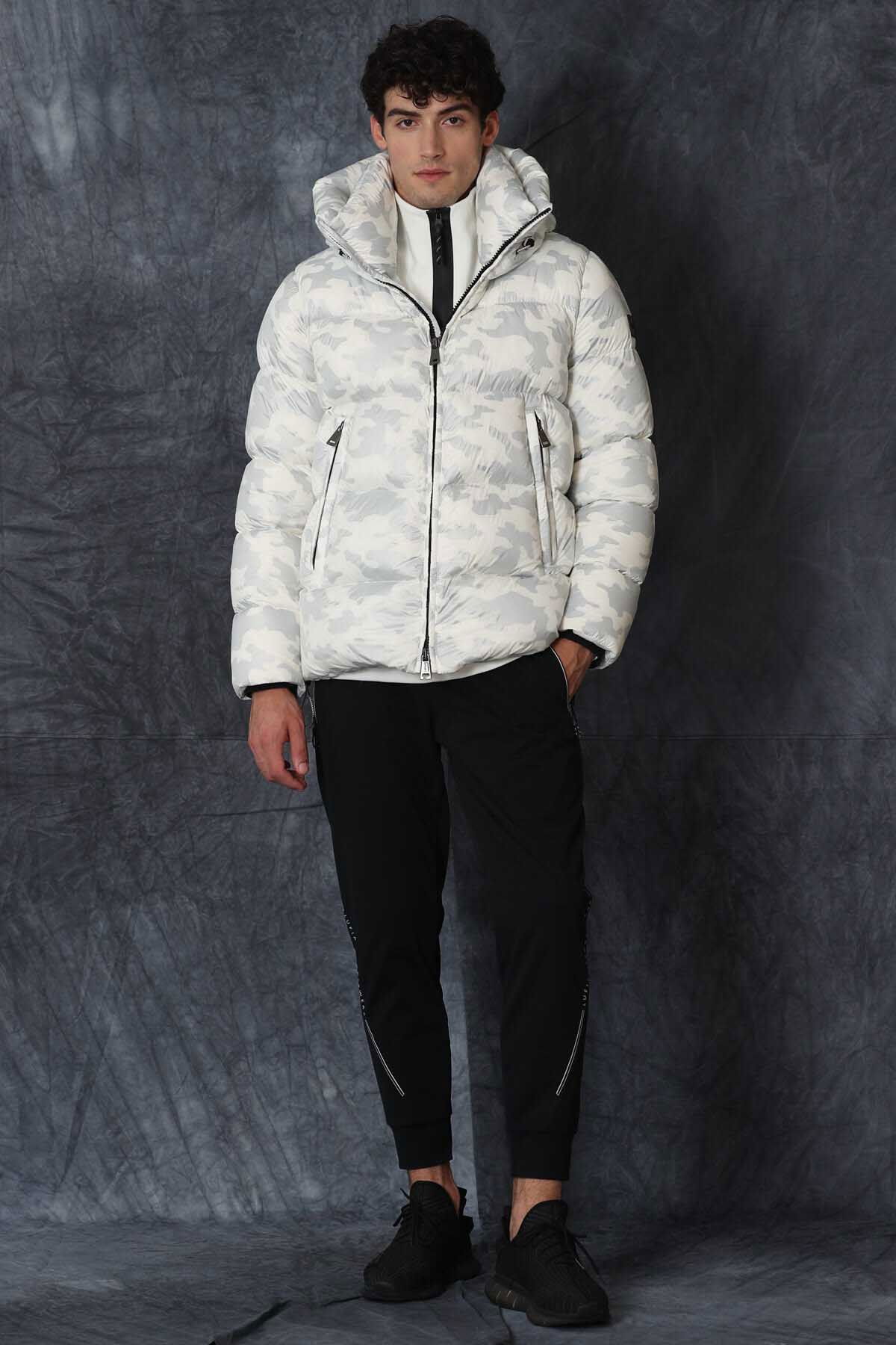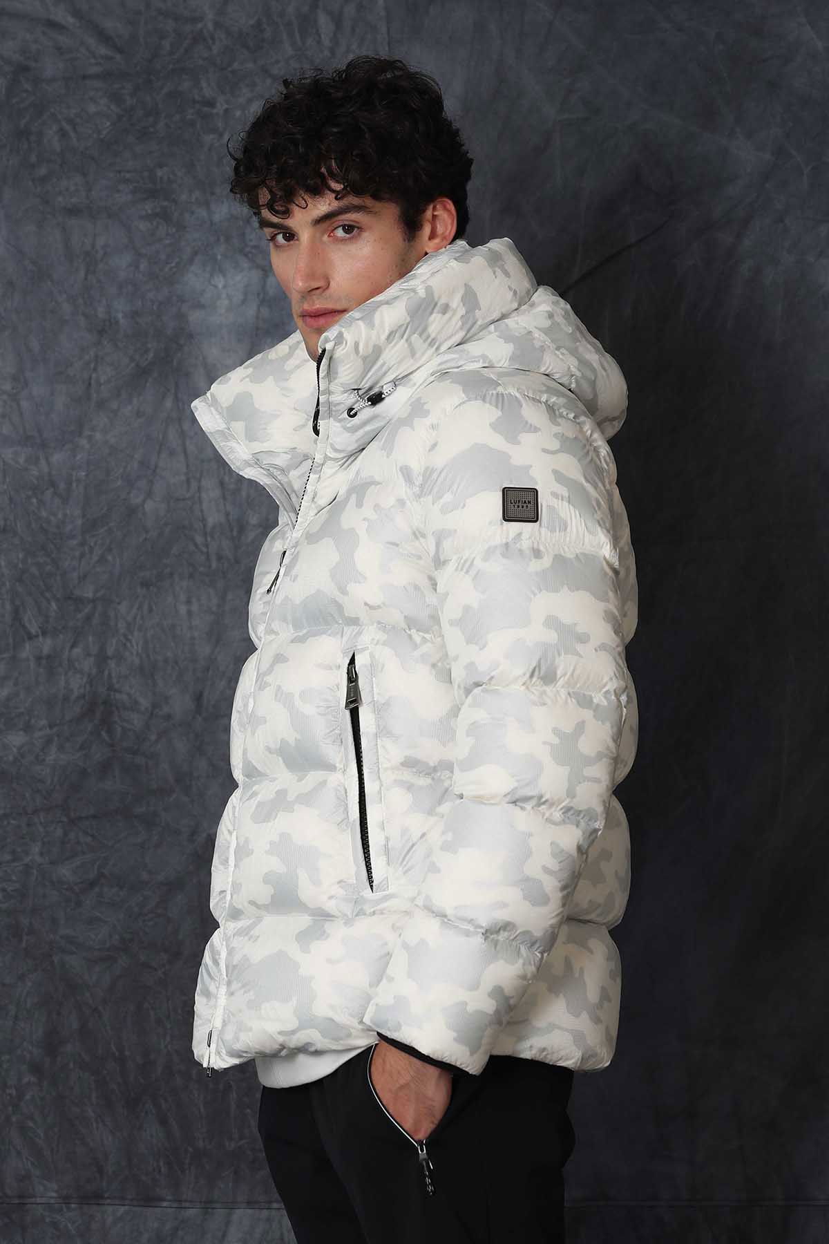 Detay: Dokuma, kaz tüyü dolgulu mont;