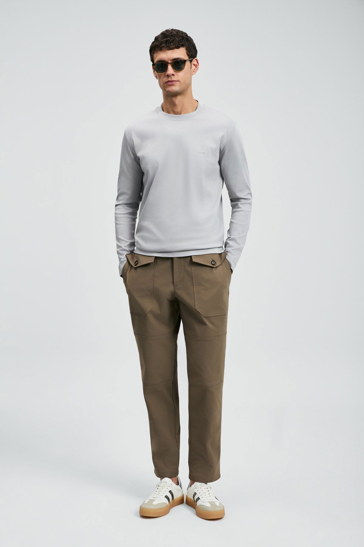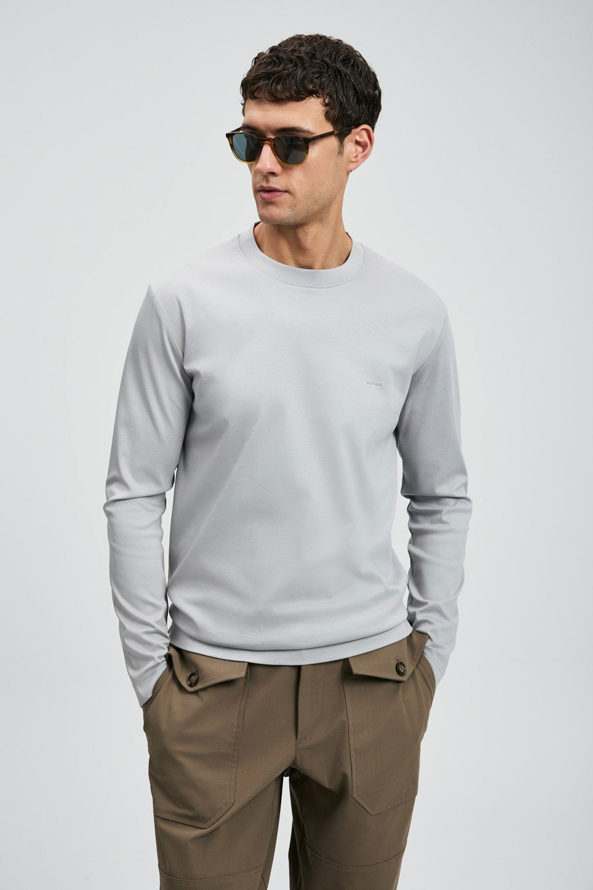 Lufian Erkek Vıctor Bisiklet Yaka Uzun Kollu T-Shirt 112020056 Gri