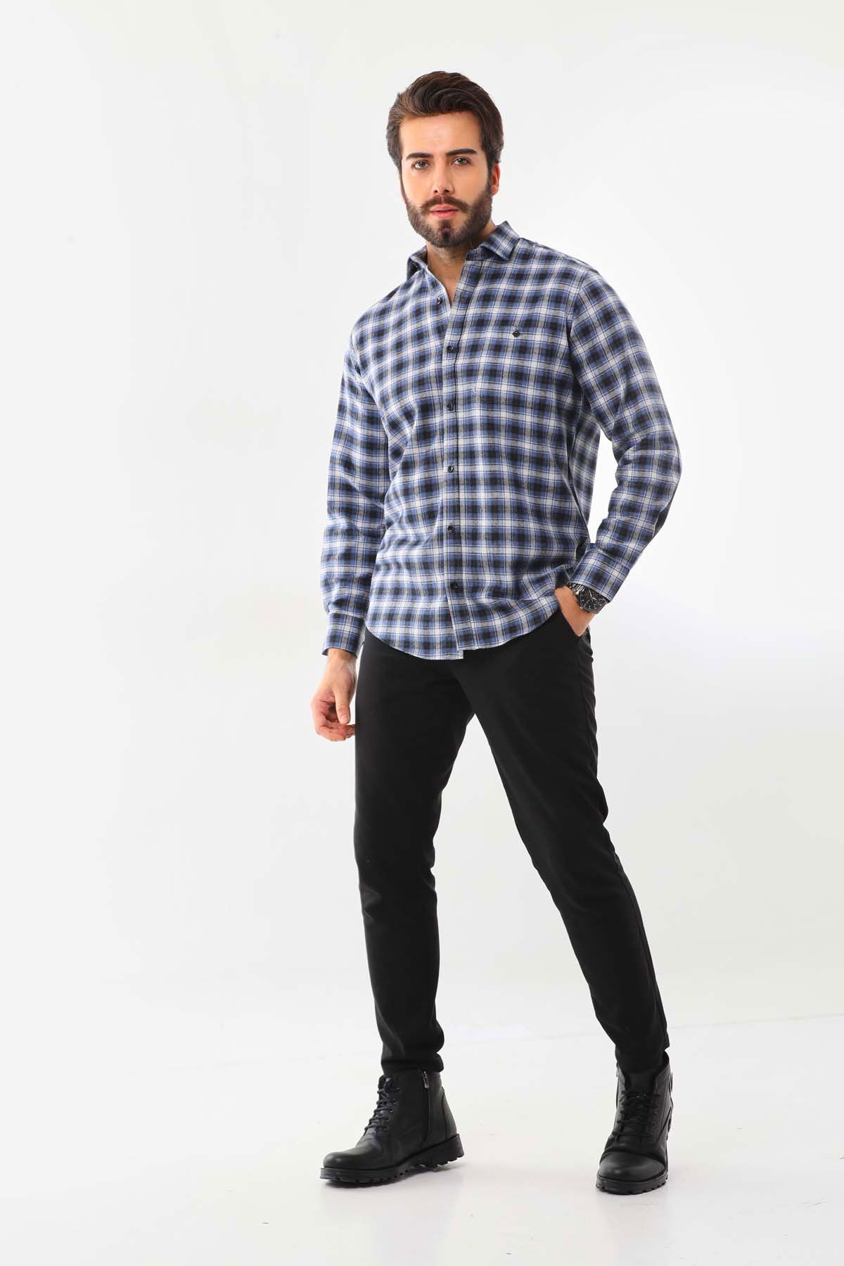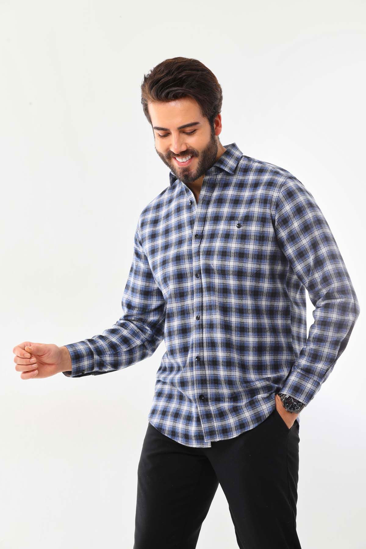 Marisso Erkek Cep Detaylı Uzun Kol %100 Pamuk Gömlek 019SRA Mavi