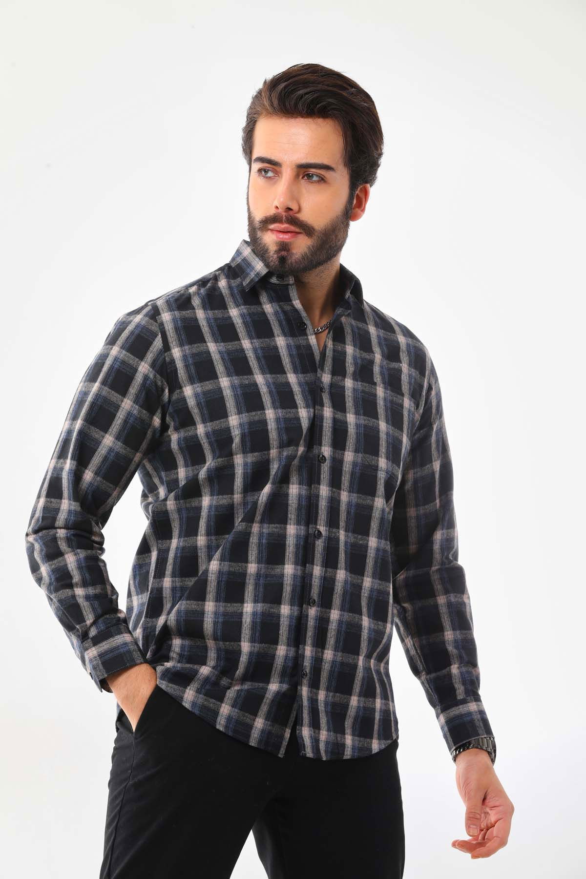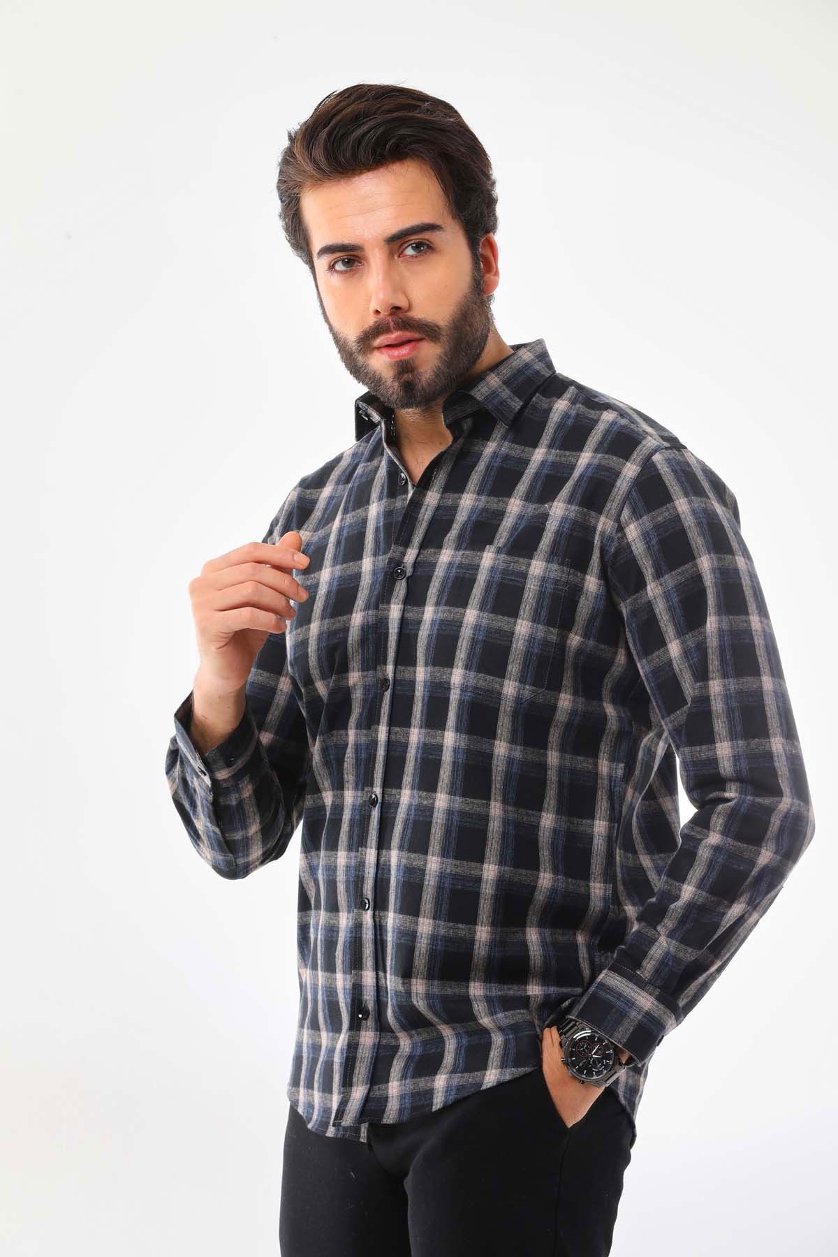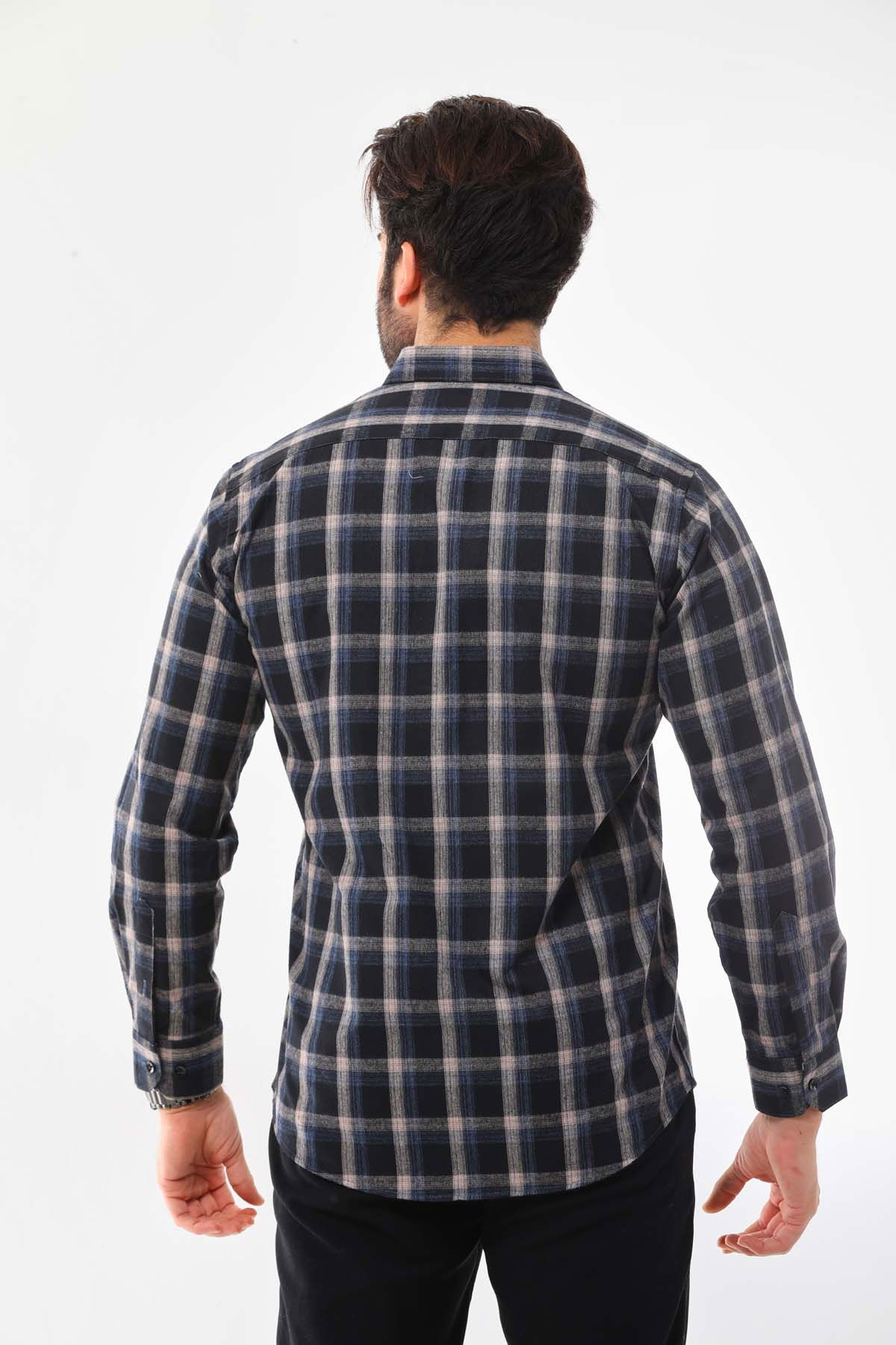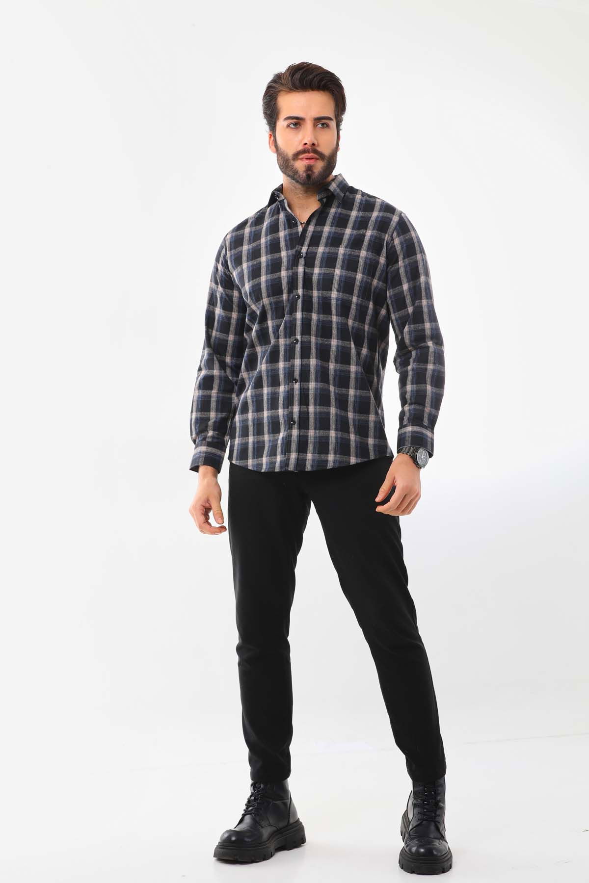 Marisso Erkek Çizgili Cepli Uzun Kol %100 Pamuk Gömlek 019SB Koyu Lacivert
