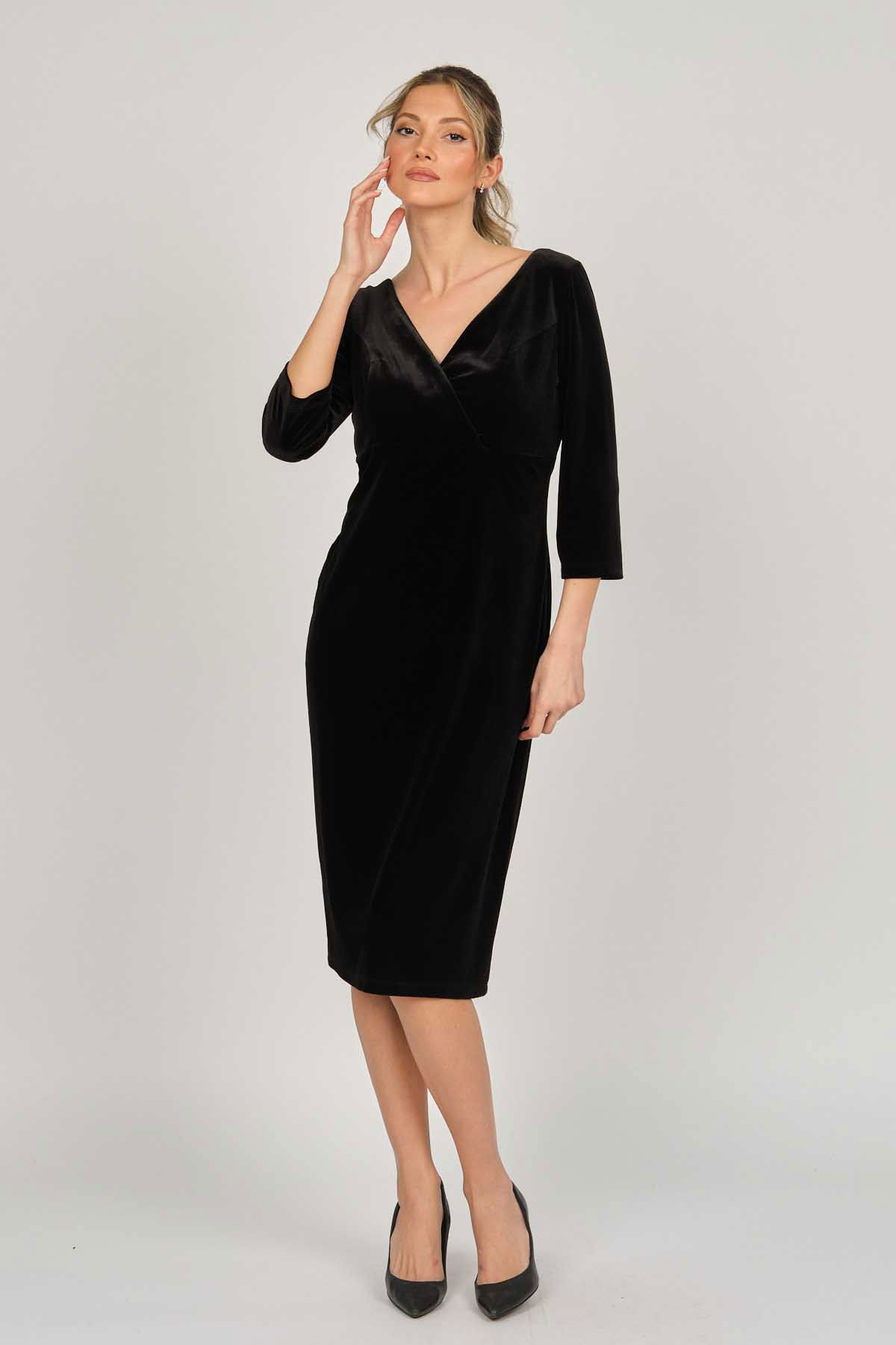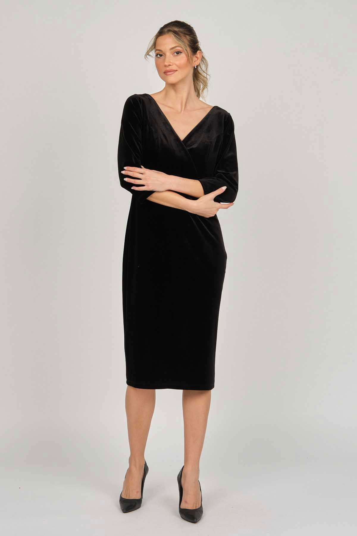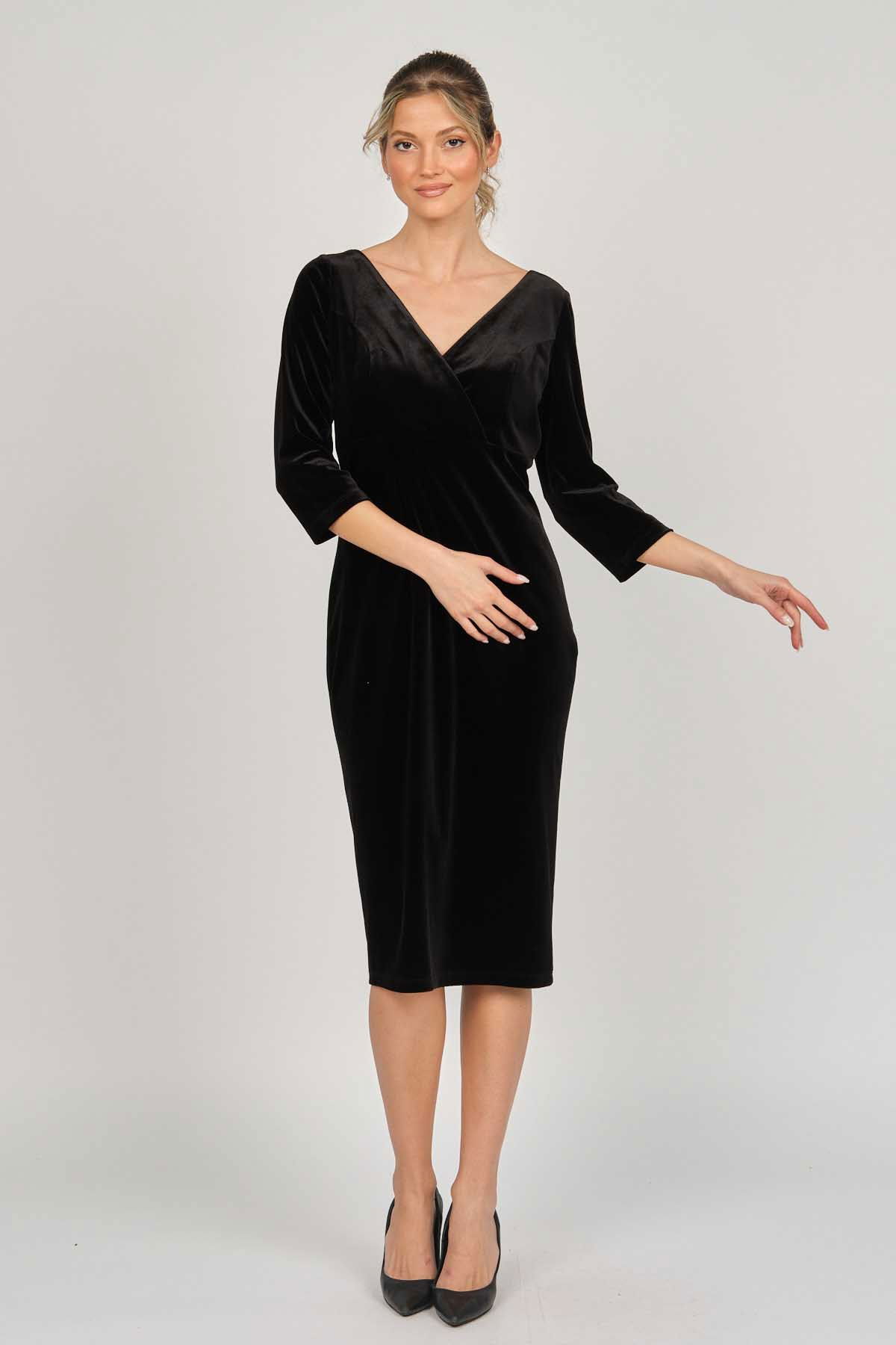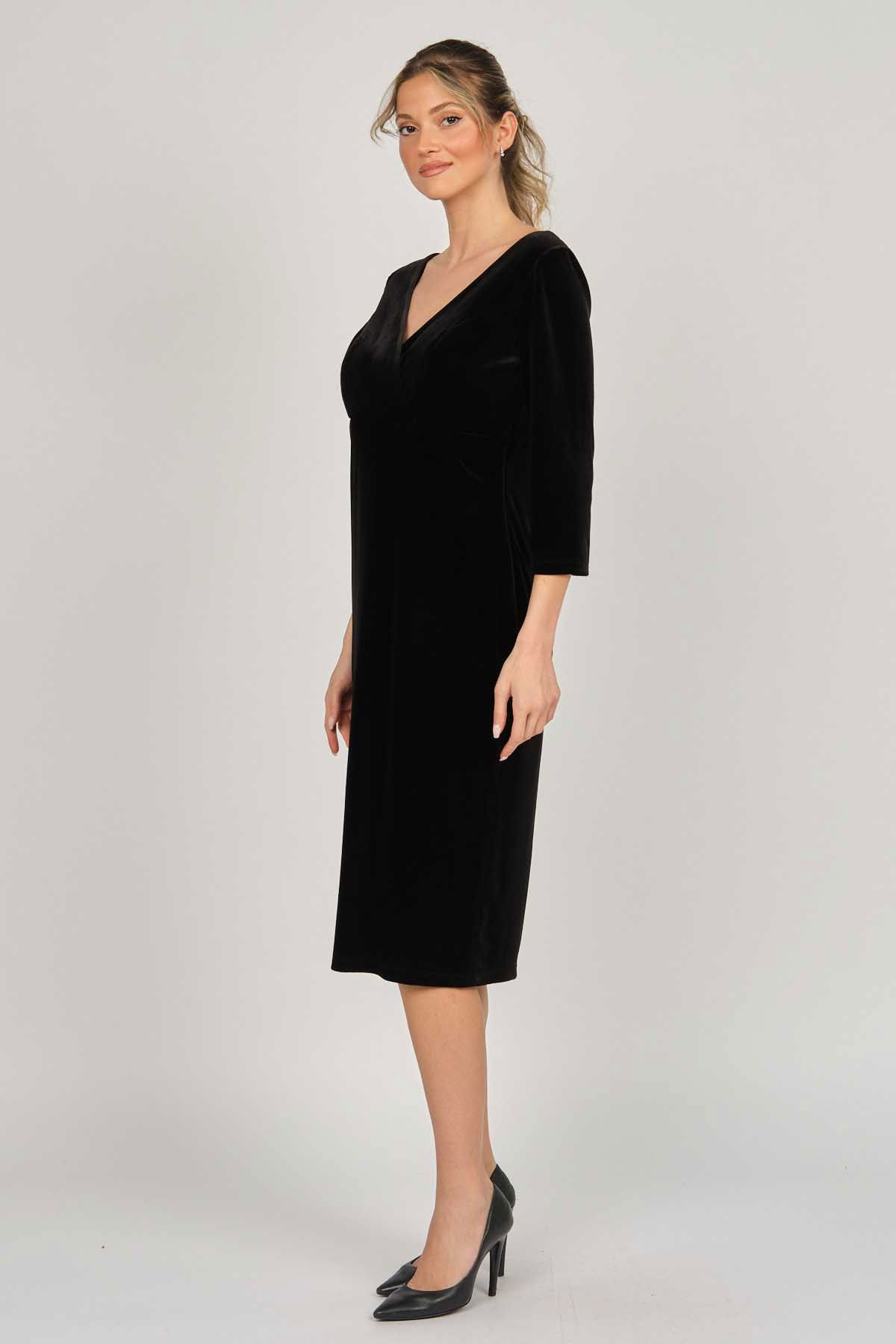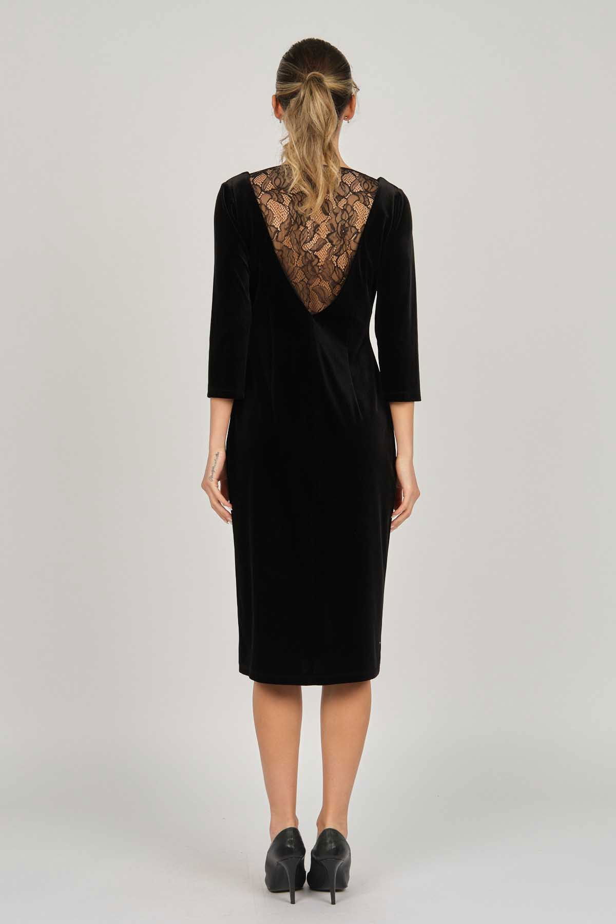 Detay: Truvakar kol, ön-arka V yaka, sırtı tül detaylı, astarlı abiye elbise;