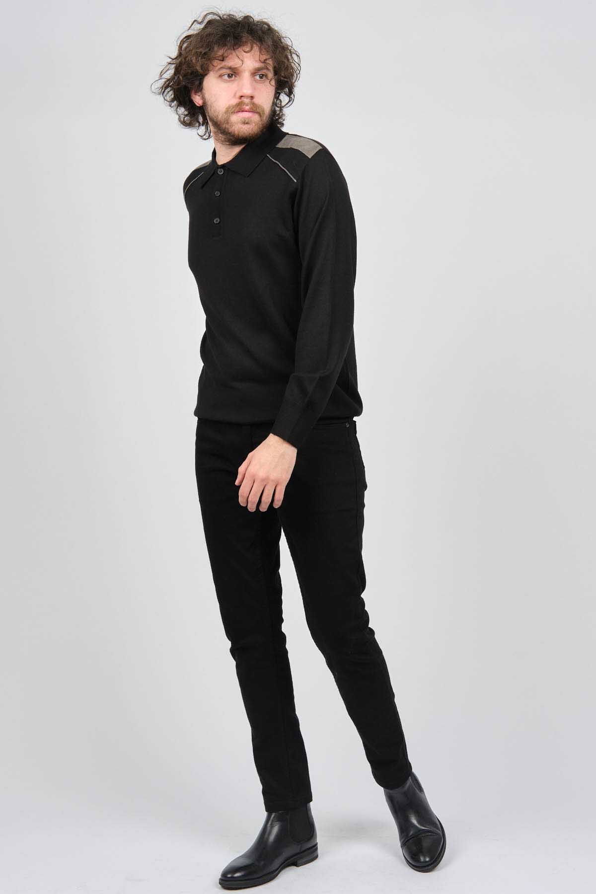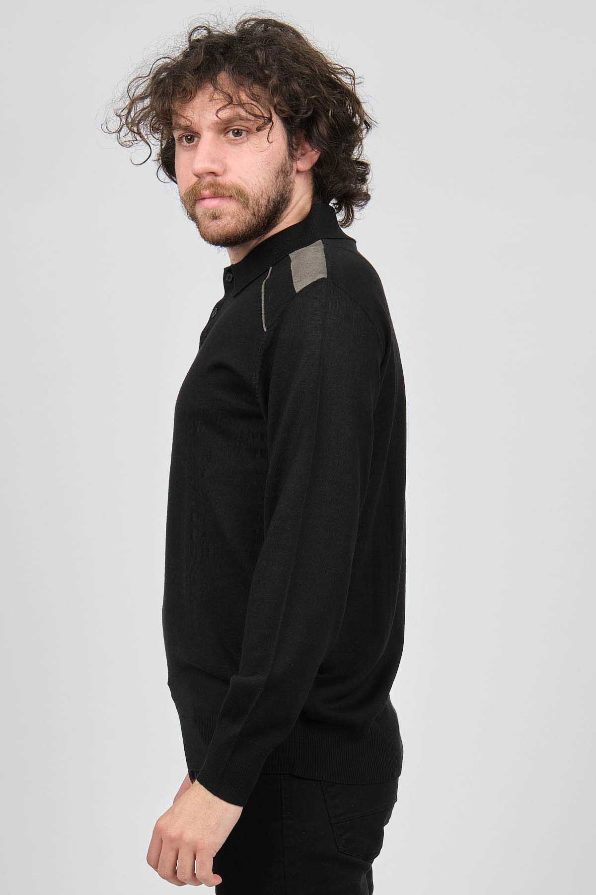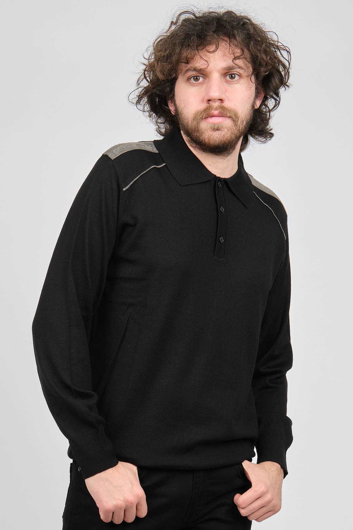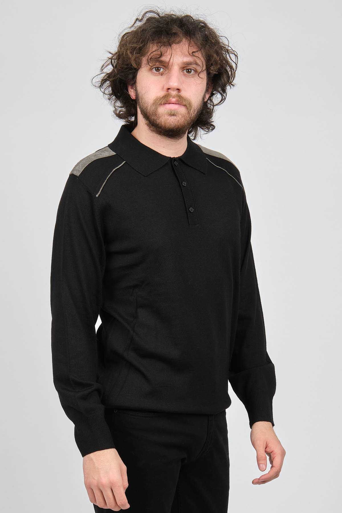 Mısırlı Erkek Omuz Detaylı Polo Yaka Yün Kazak 3869160 Siyah