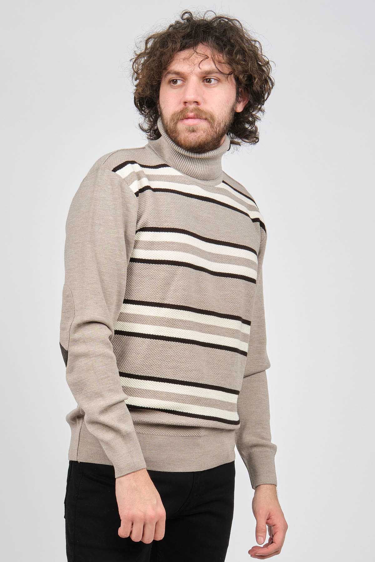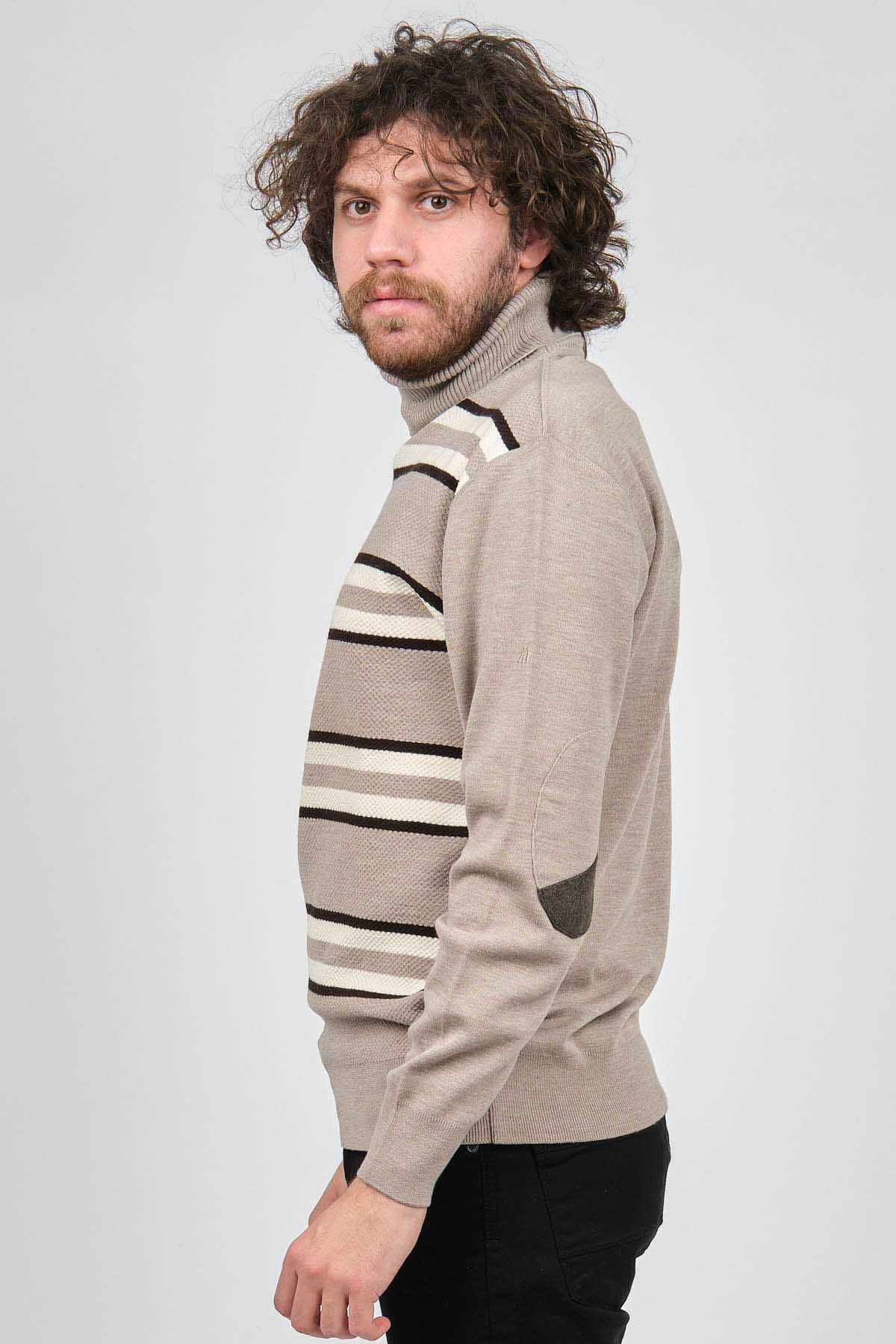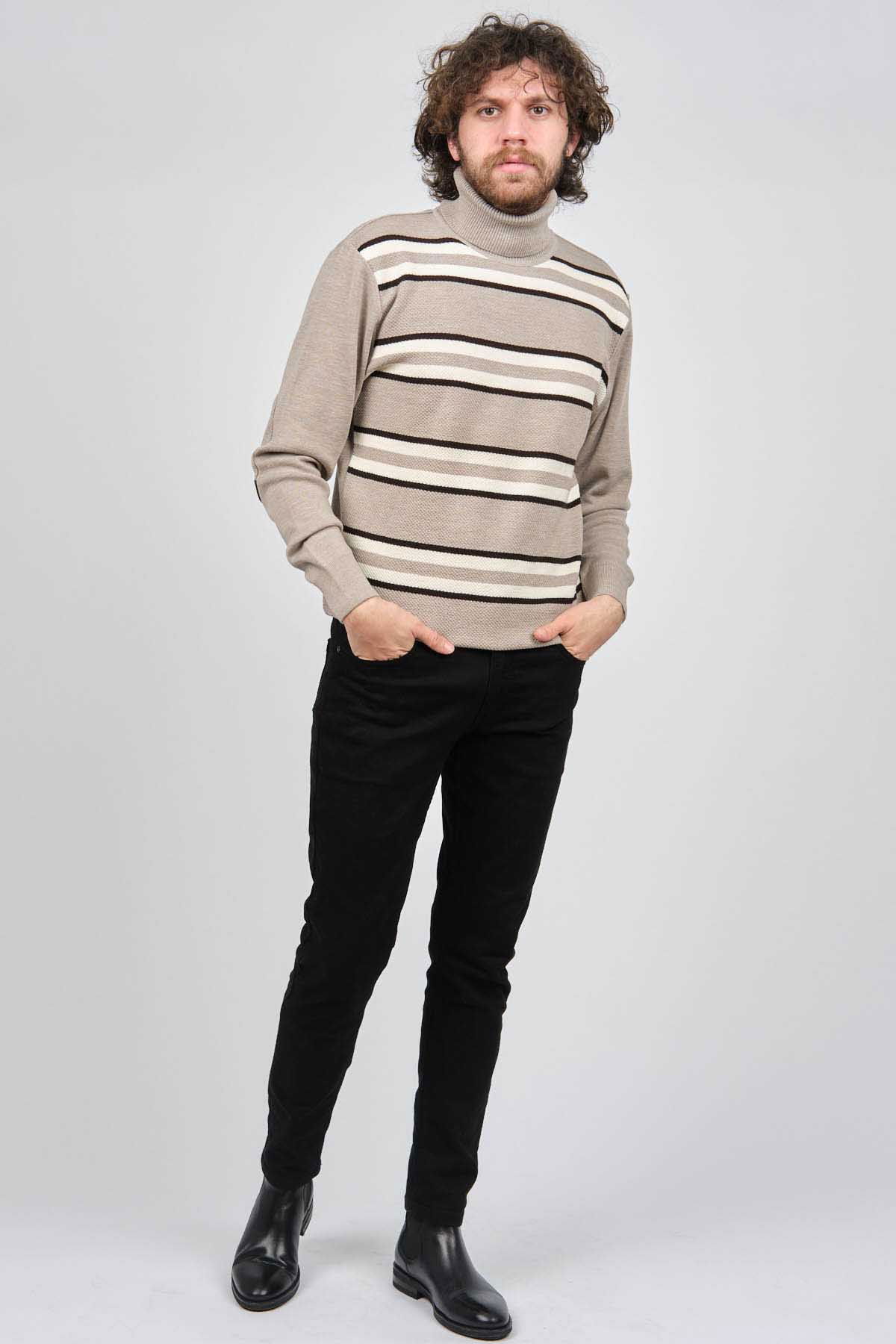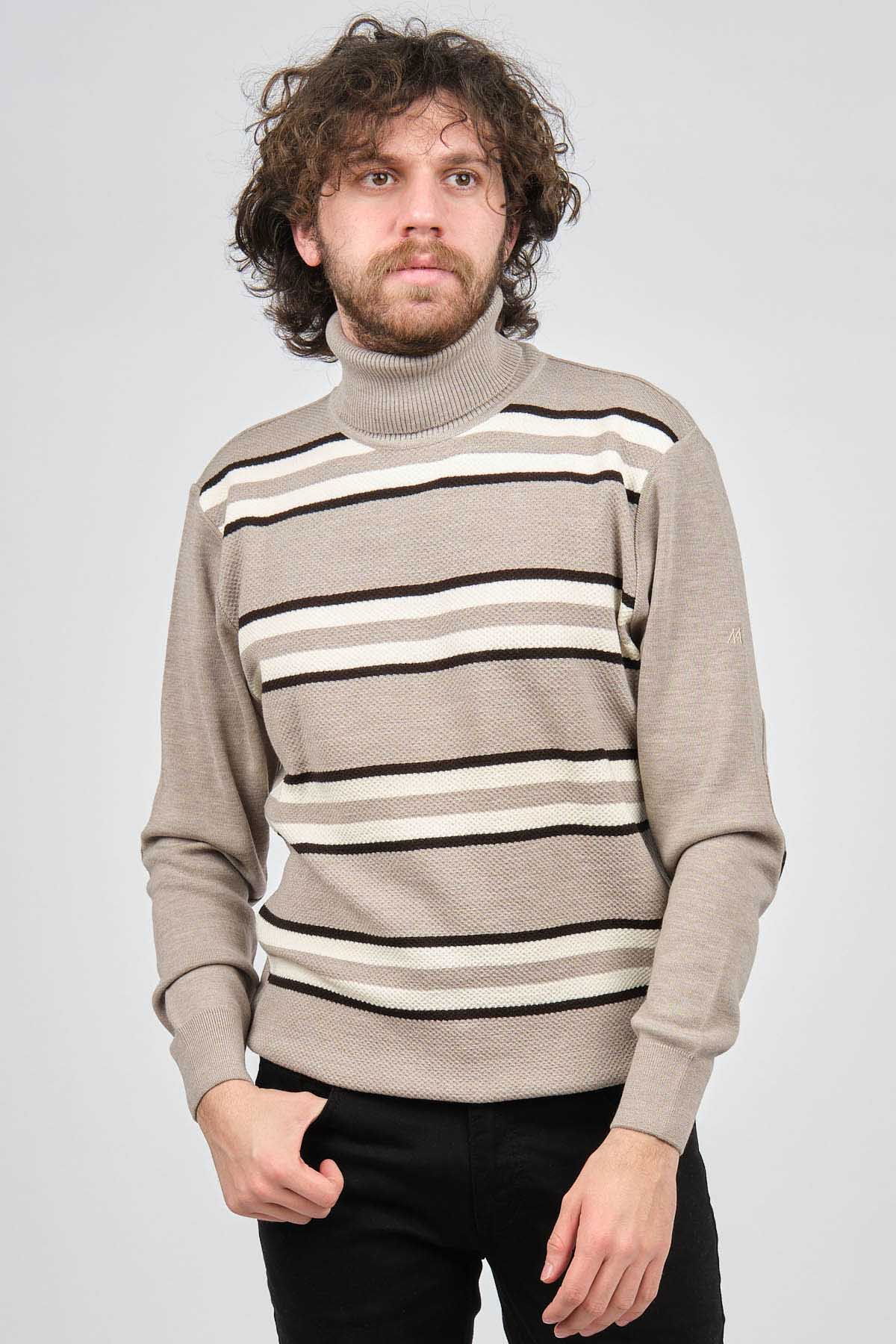 Mısırlı Erkek Tam Balıkçı Çizgili Yün Kazak 3869077 Bej
