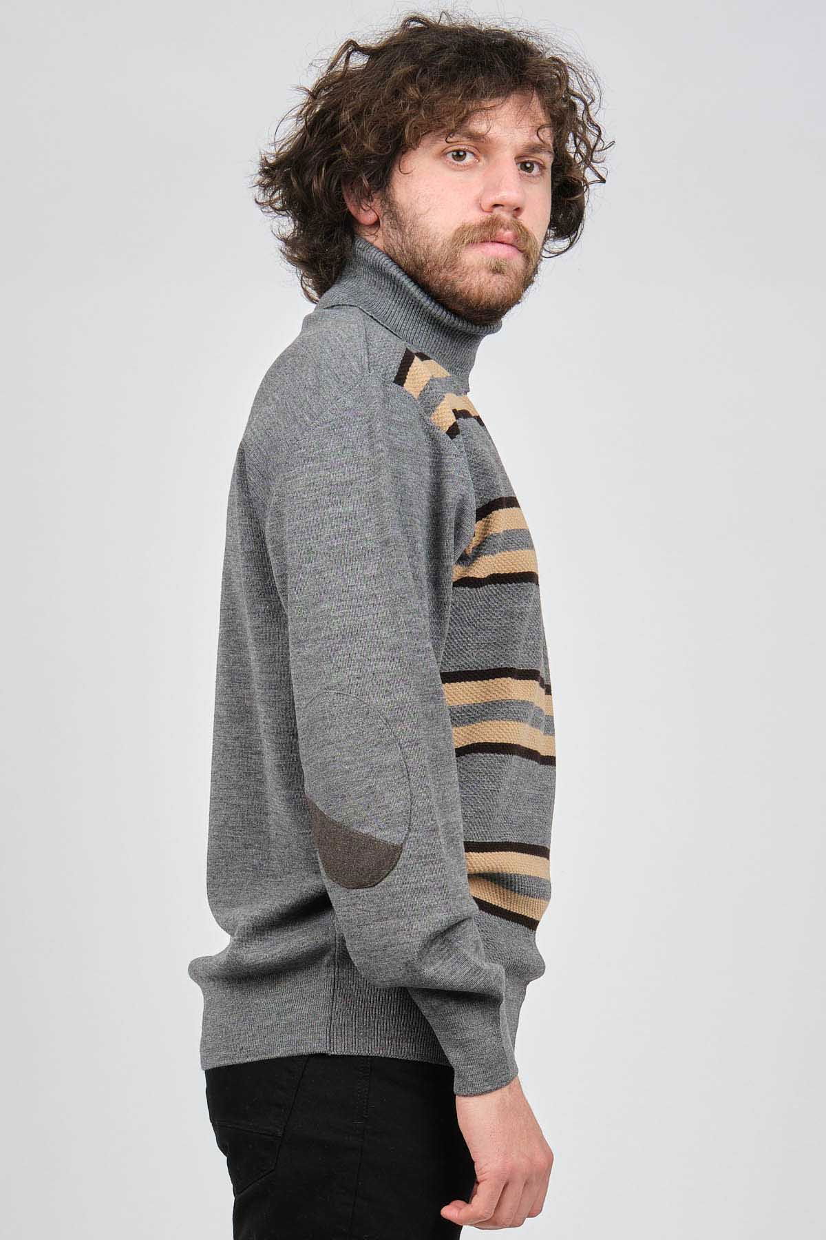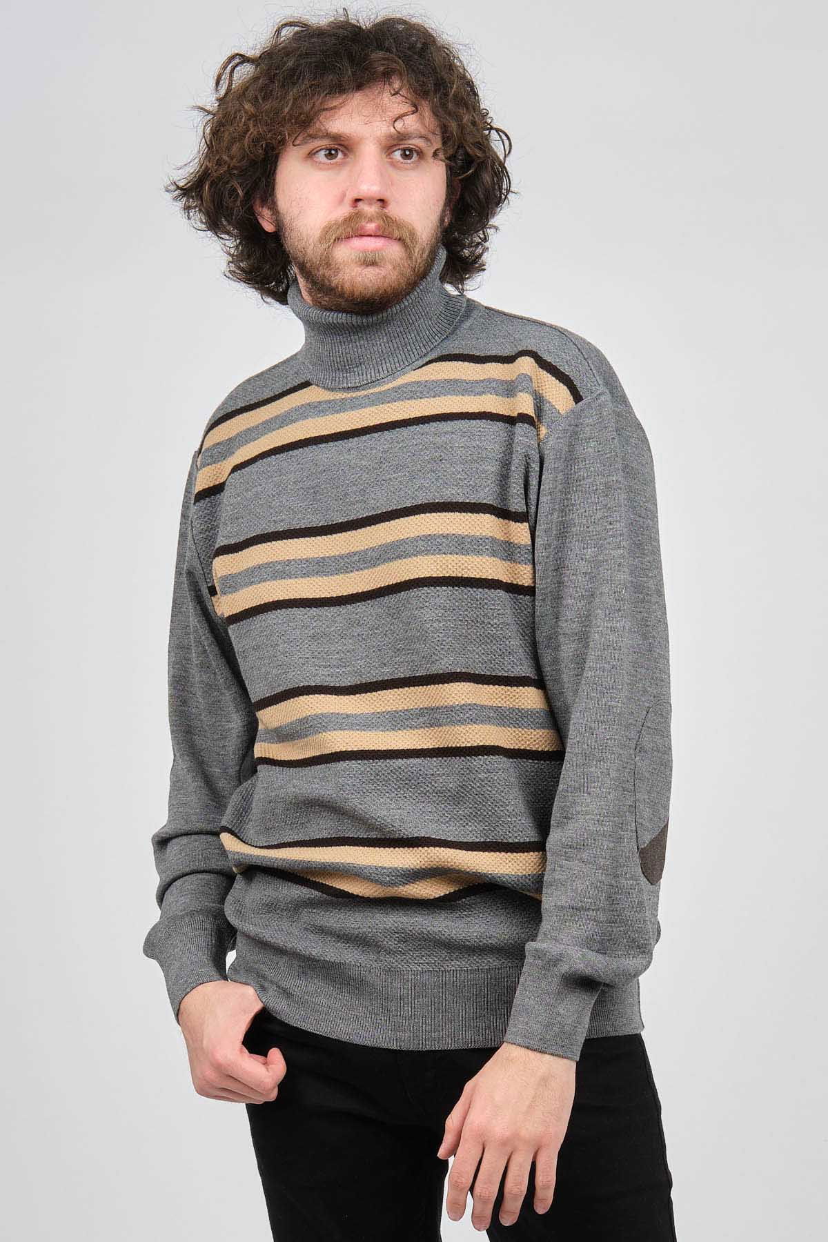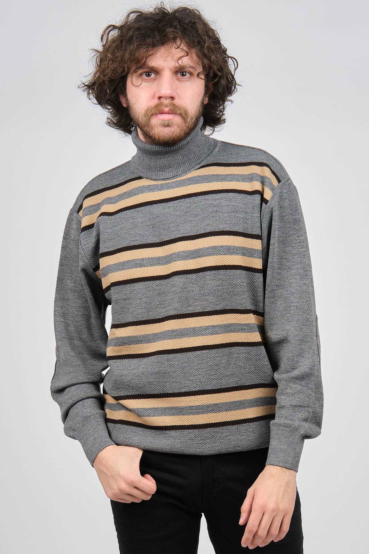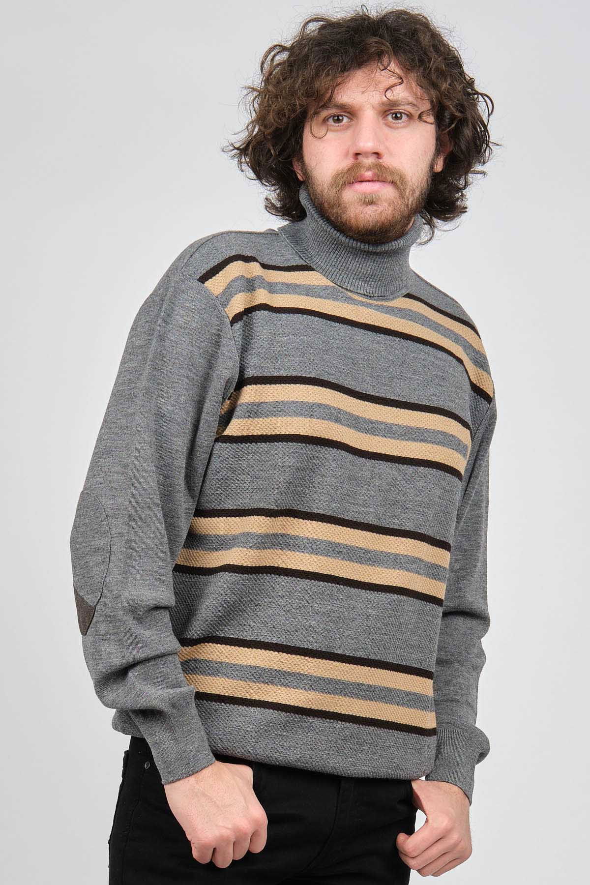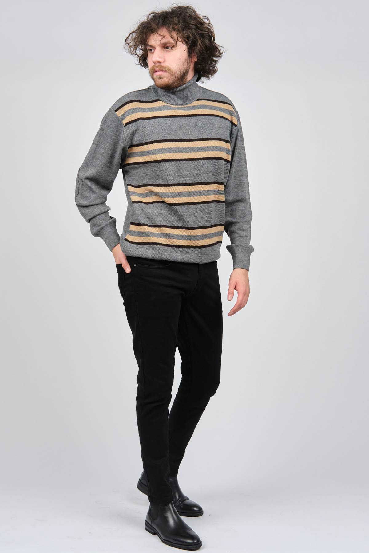 Mısırlı Erkek Tam Balıkçı Çizgili Yün Kazak 3869077 Gri
