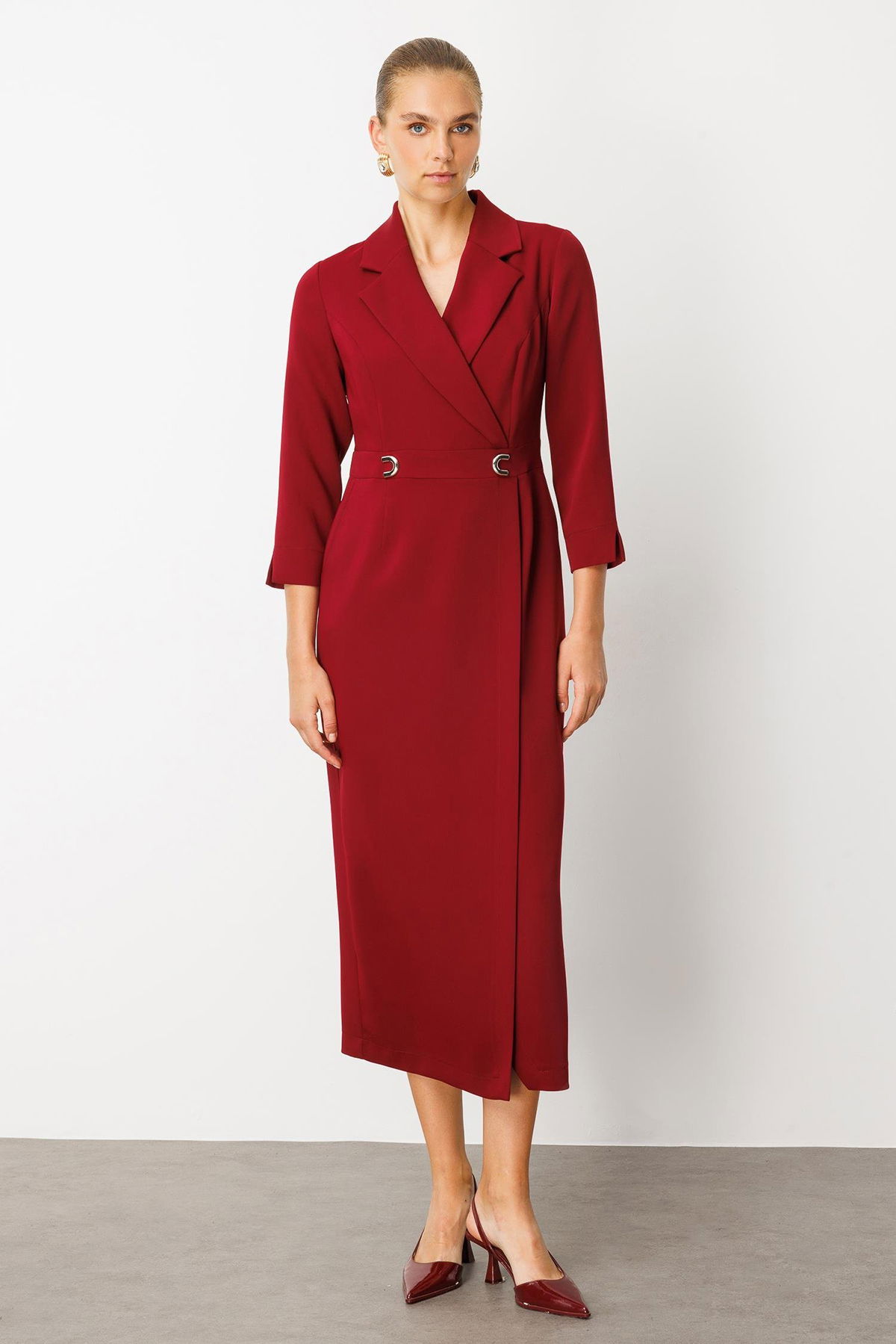 Moda İlgi Kadın Beli Aksesuarlı Cepli Kruvaze Elbise 6626 Bordo