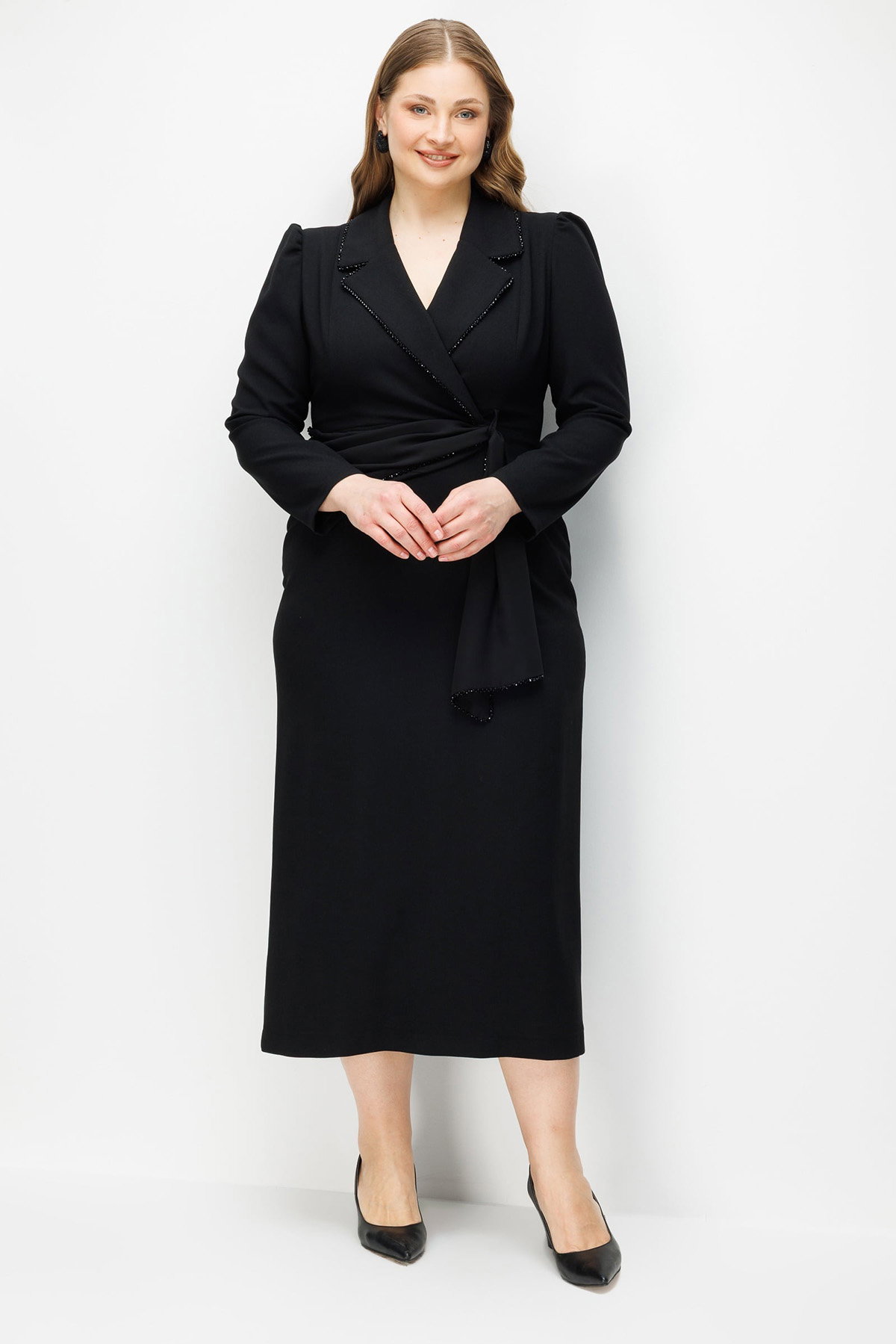 Detay: Kruvaze yaka boncuk aksesuarlı uzun elbise, kuşak detayıyla bel hattını vurgularken uzun kollu tasarımıyla zarif bir görünüm sunar. Şıklığı ve feminen duruşu bir arada taşıyan bu elbise özel davetlerde ve gece kombinlerinde öne çıkar. Modern tasarımıyla kruvaze elbise modelleri arasında dikkat çekici bir seçenektir;