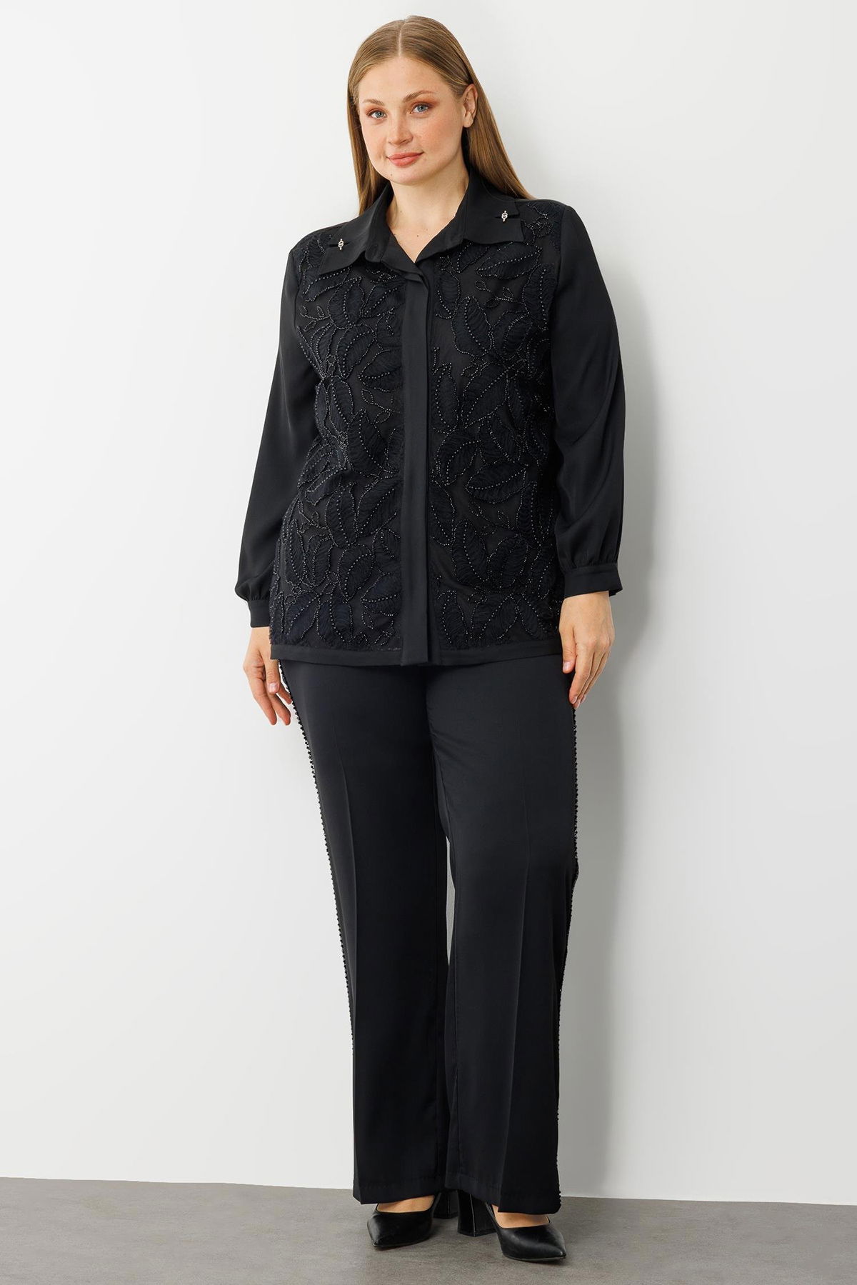 Detay: Yaprak desenleriyle doğadan ilham alan ve boncuk detaylarıyla zarif bir ışıltı kazanan takma kol gömlek, feminen ve özgün bir stil arayanlar için ideal bir parçadır. Takma kol tasarımı sayesinde hem klasik hem modern kombinlere uyum sağlayan bu model, özel günlerde ya da günlük şıklıkta fark yaratmak isteyenlerin favorisi olmaya aday. Hafif yapısı ve dikkat çekici işlemeleriyle gardırobunuzda stil sahibi bir dokunuş sunar;