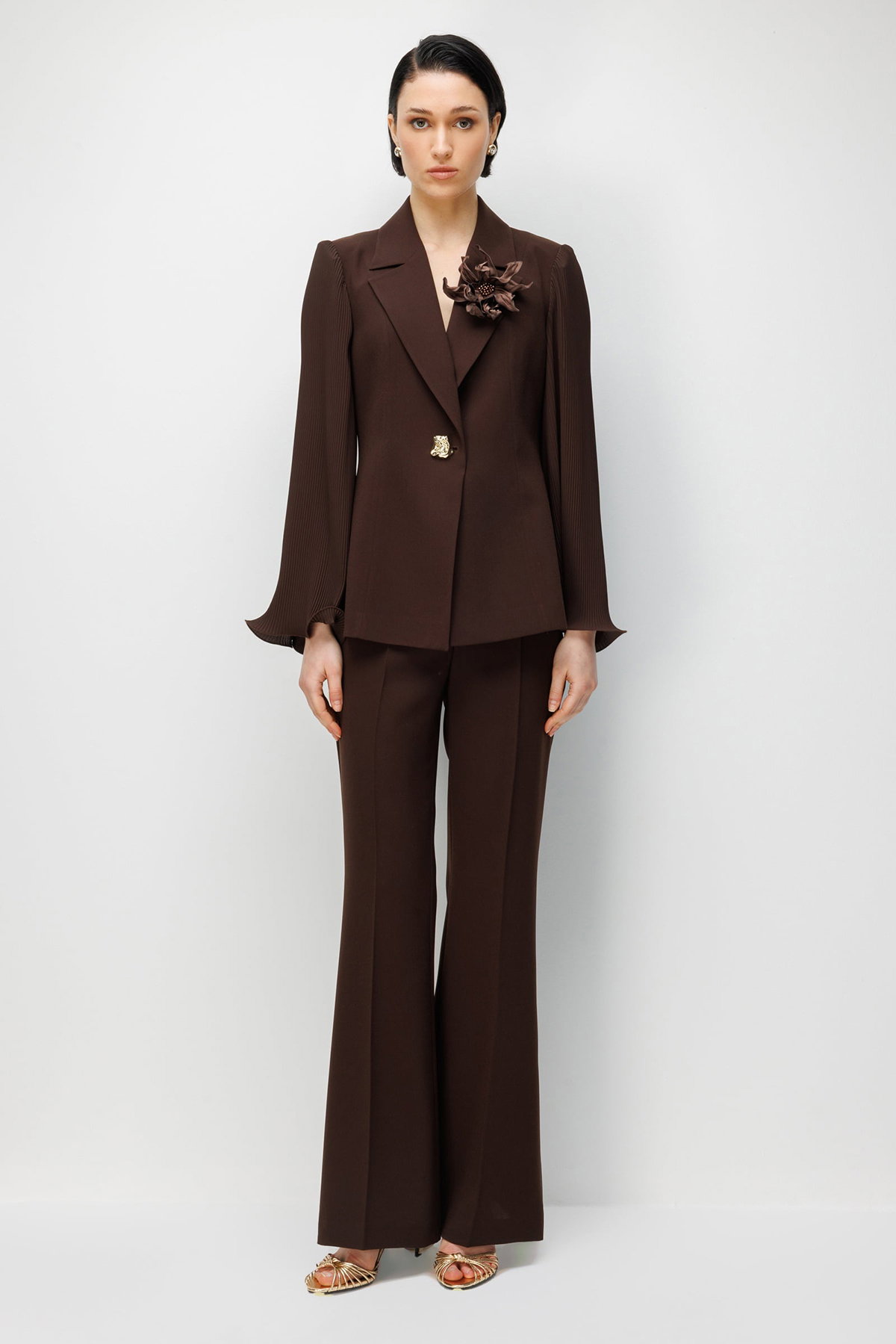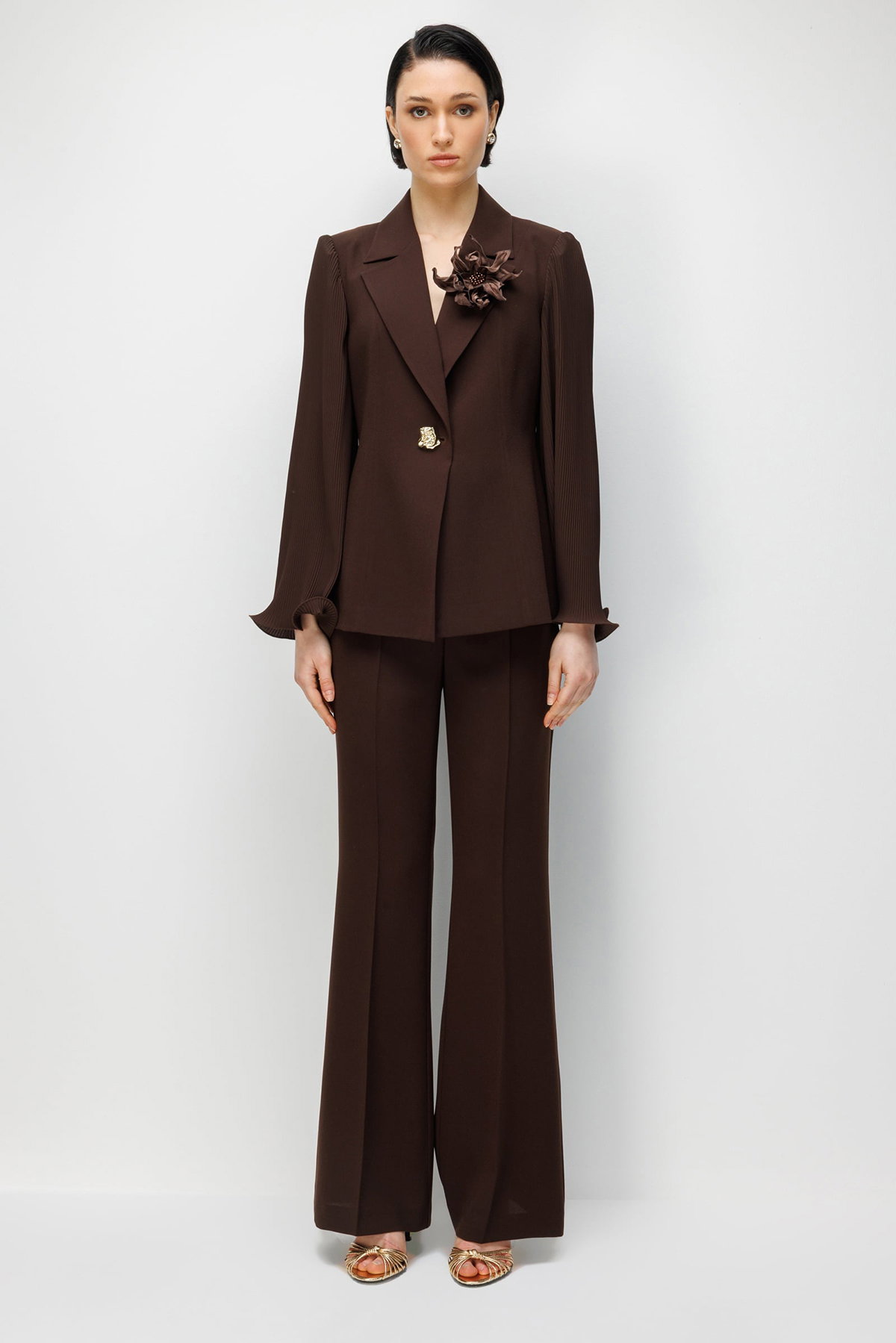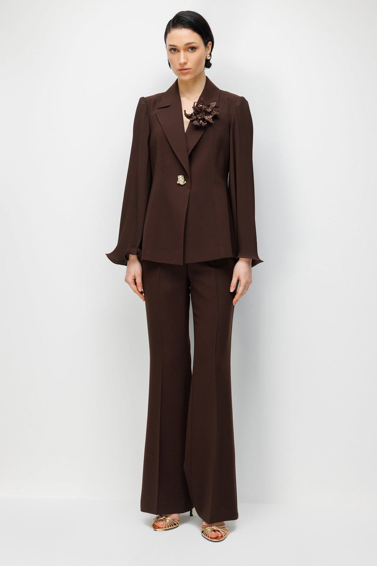 Moda İlgi Kadın Krep Kumaş İspanyol Paça Pantolon 5025 Kahverengi