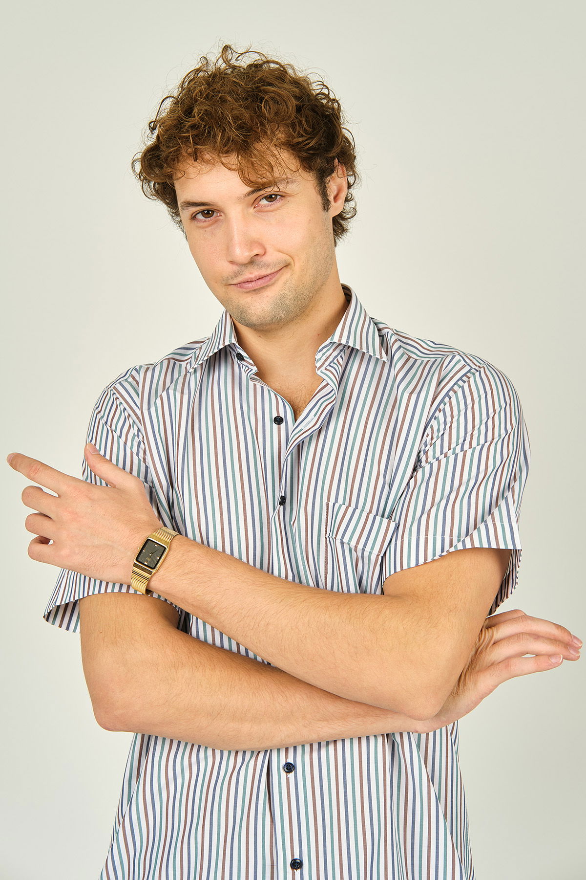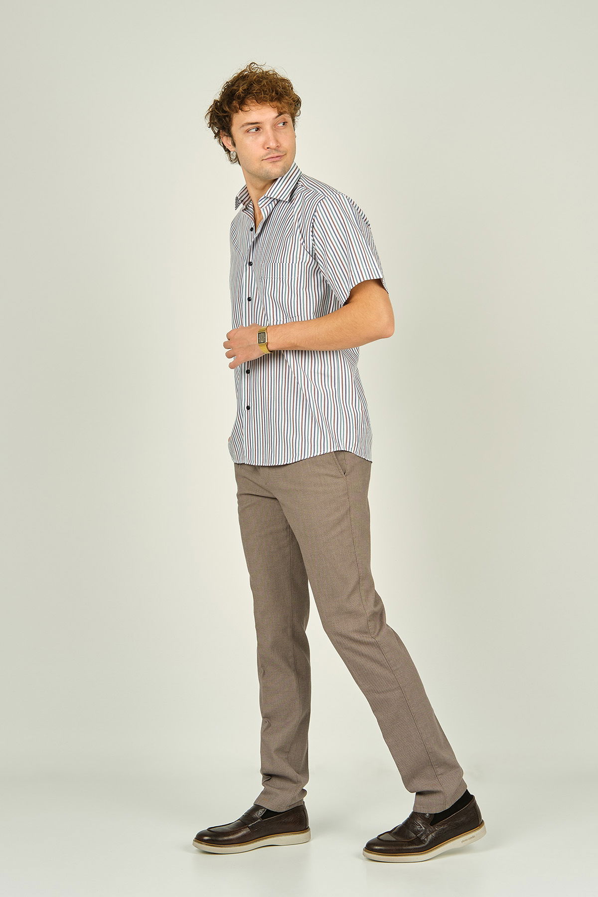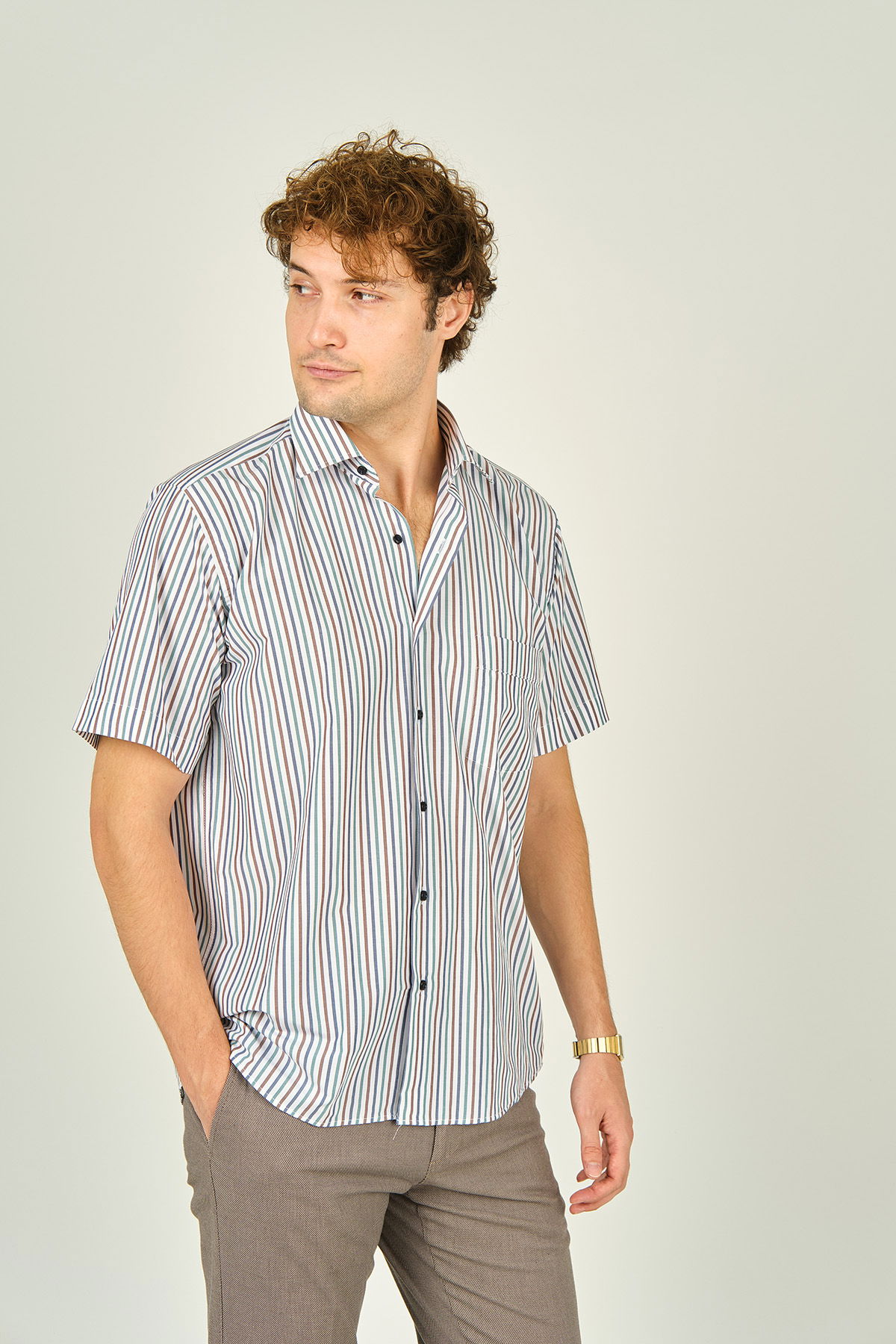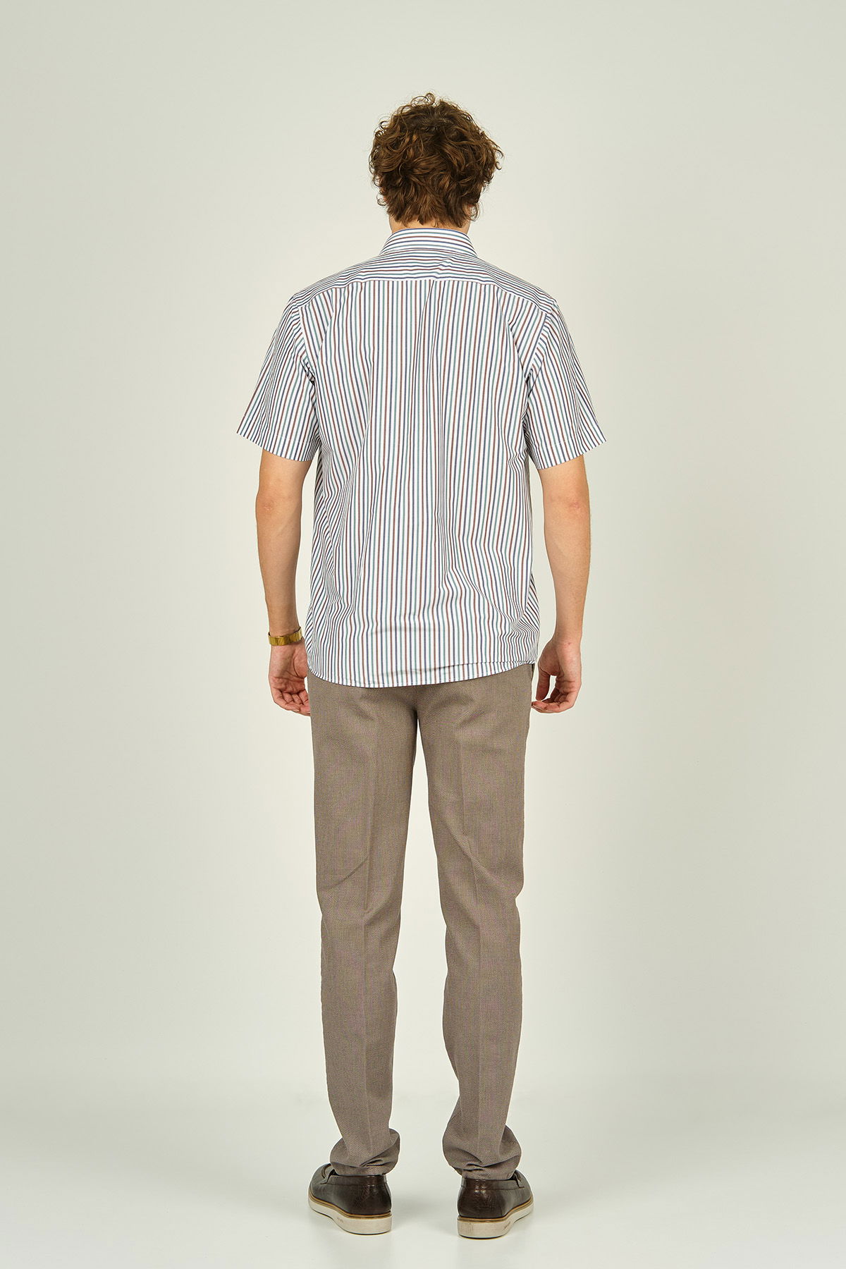 Mugi Erkek Çizgili Tek Cep Detaylı Kısa Kollu Pamuklu Gömlek 2004 Yeşil