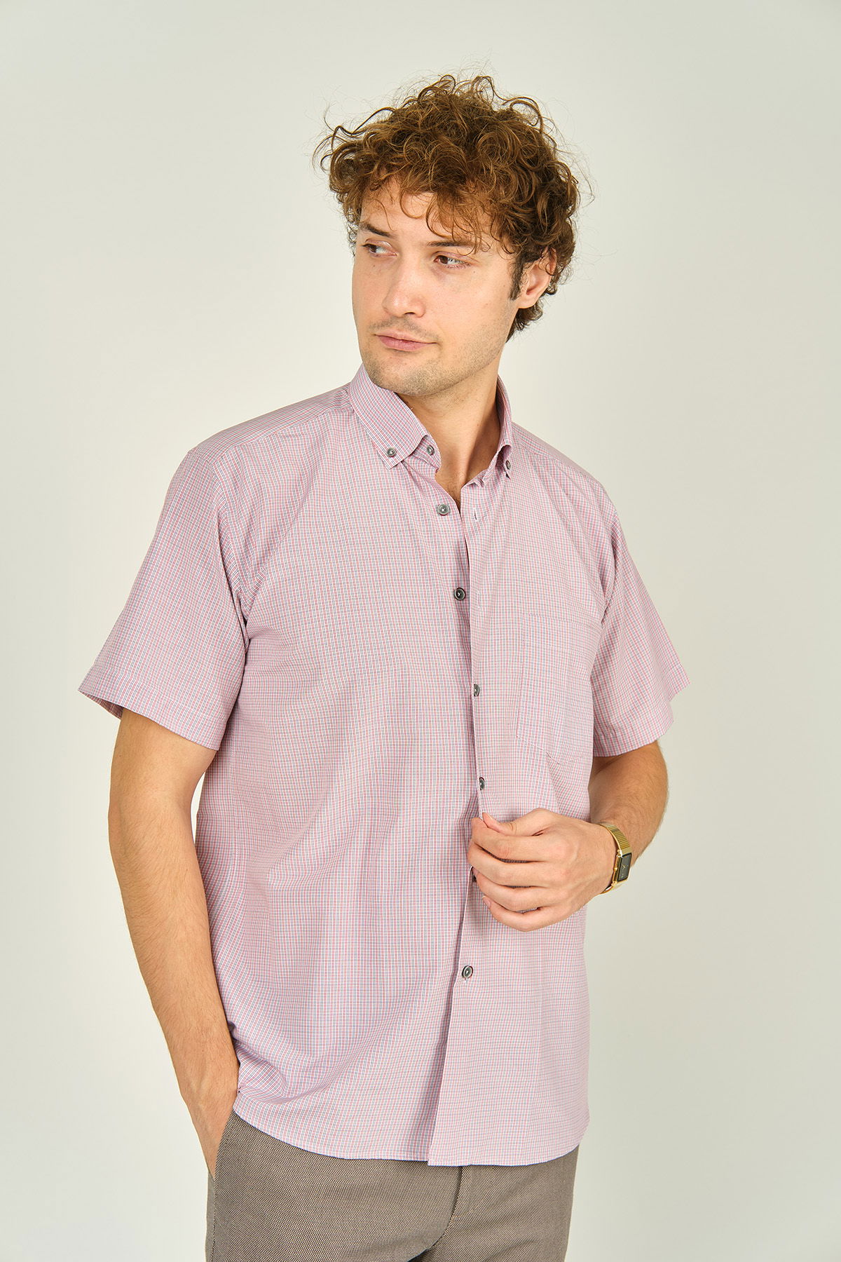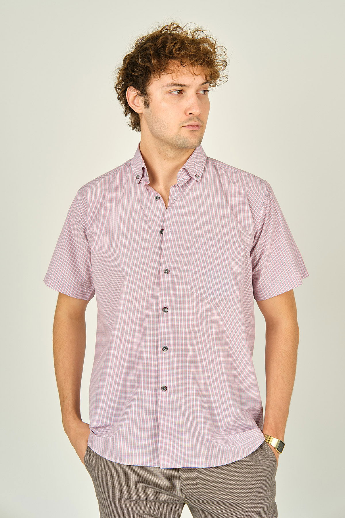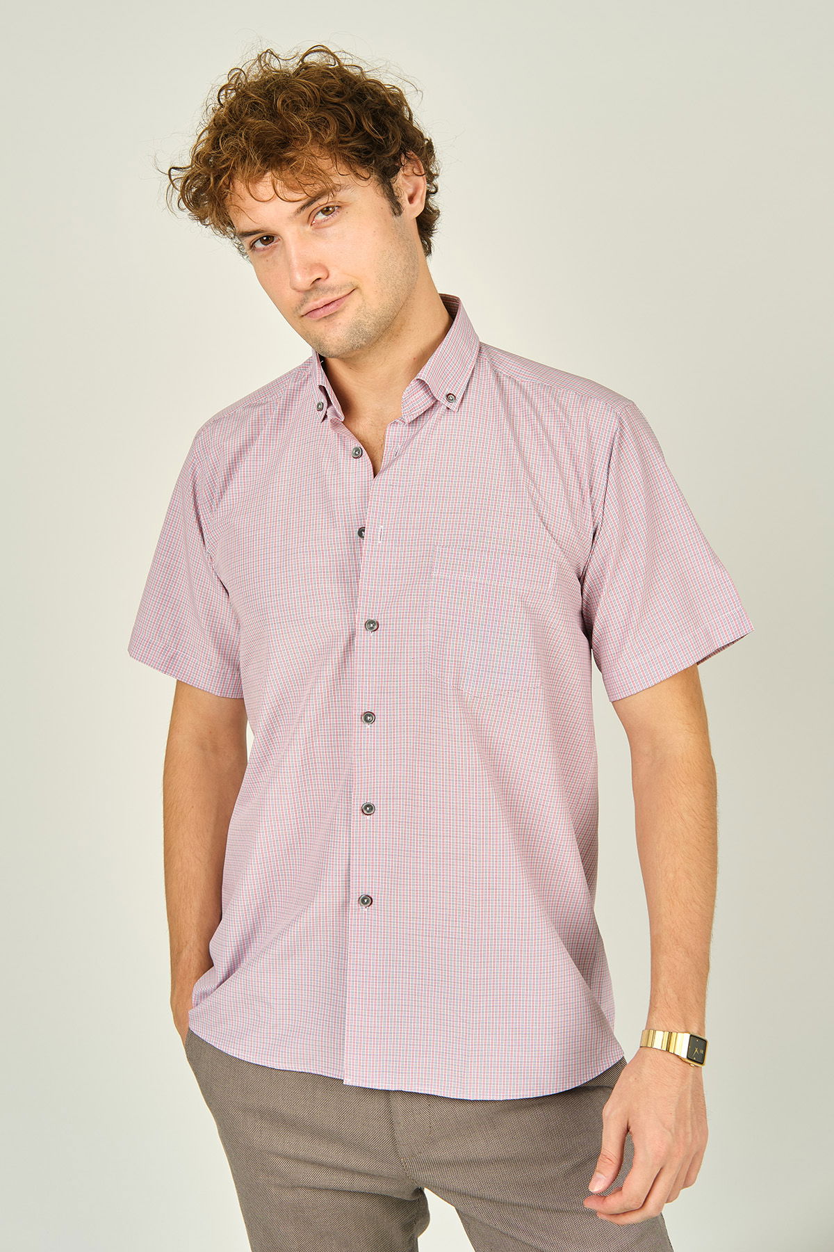Mugi Erkek Desenli Tek Cepli Kısa Kollu Pamuklu Gömlek 3001 Kırmızı