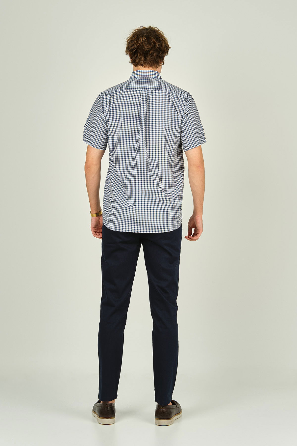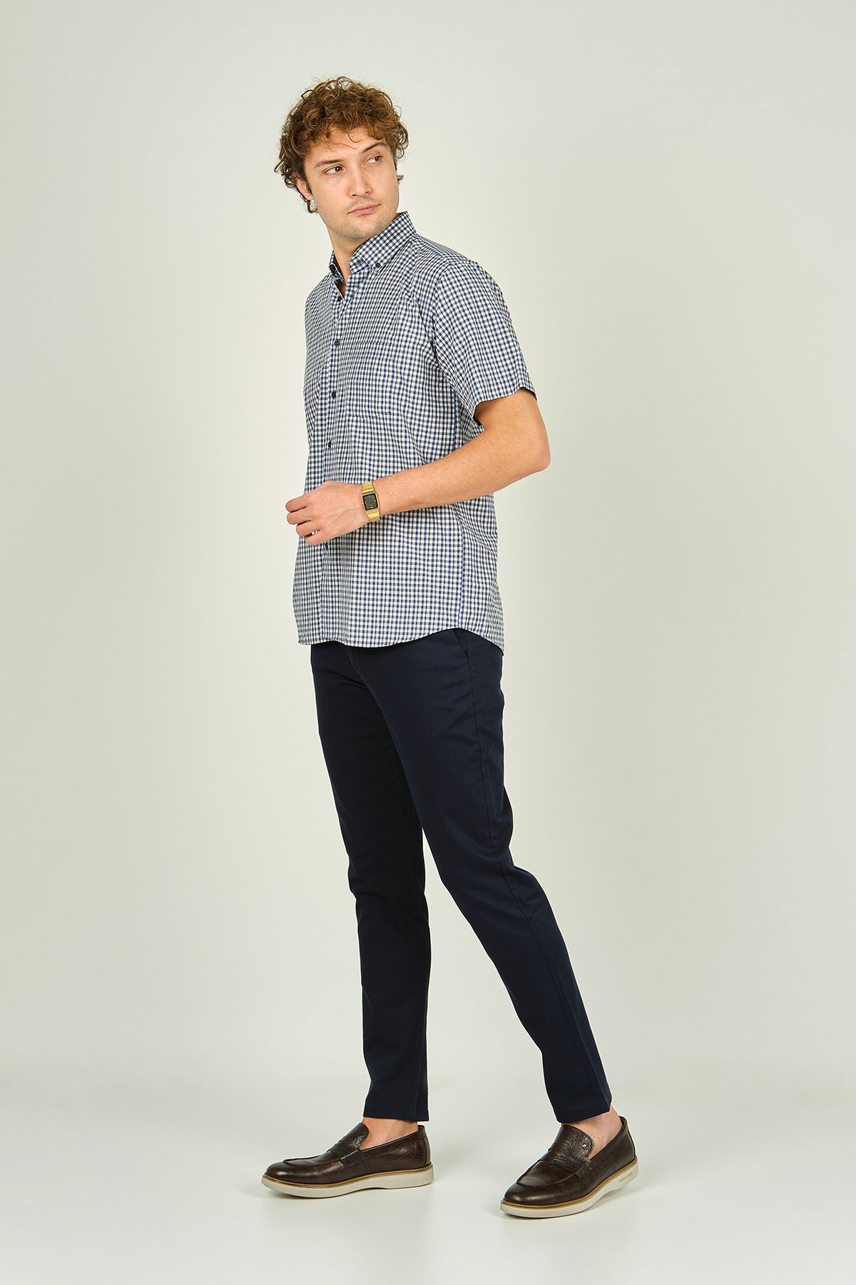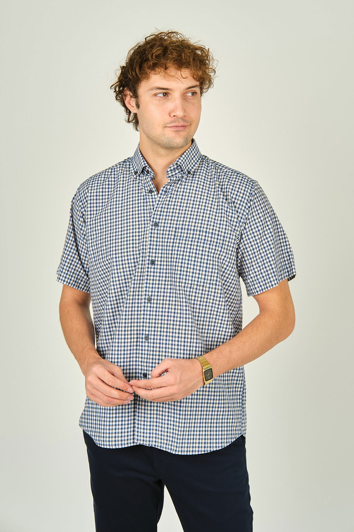 Mugi Erkek Ekoseli Yaka Düğmeli Kısa Kollu Pamuklu Gömlek 3008 Sarı