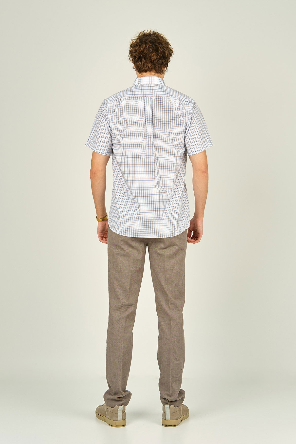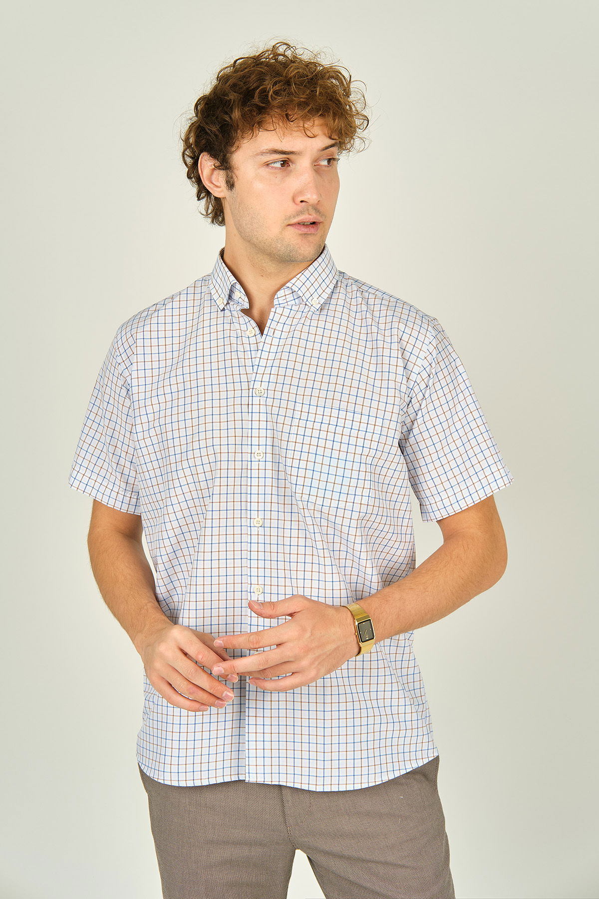 Mugi Erkek Kare Desenli Tek Cep Detaylı Kısa Kollu Pamuklu Gömlek 3007 Kahverengi