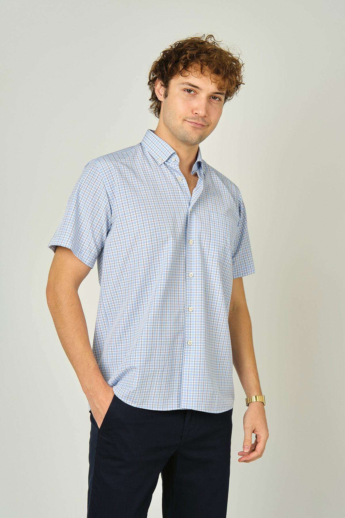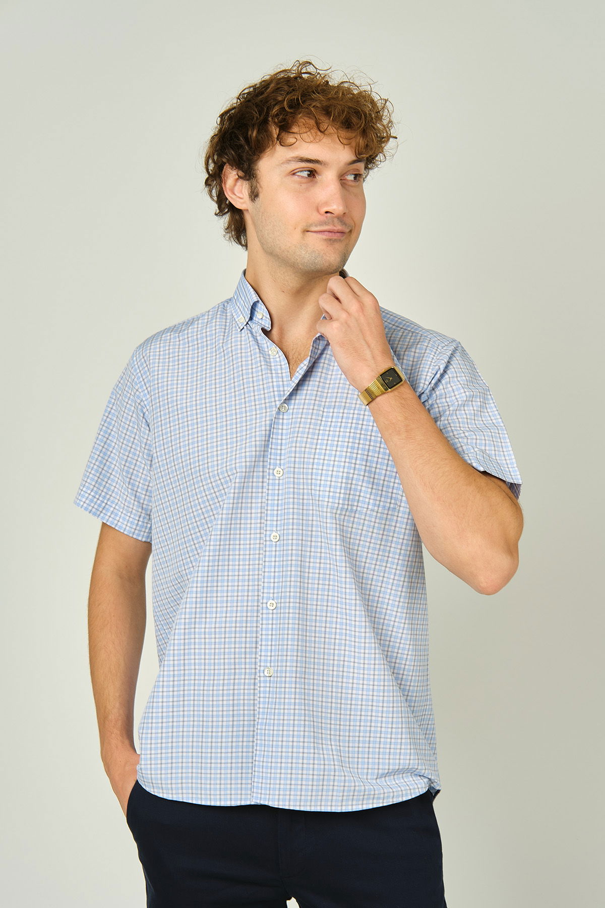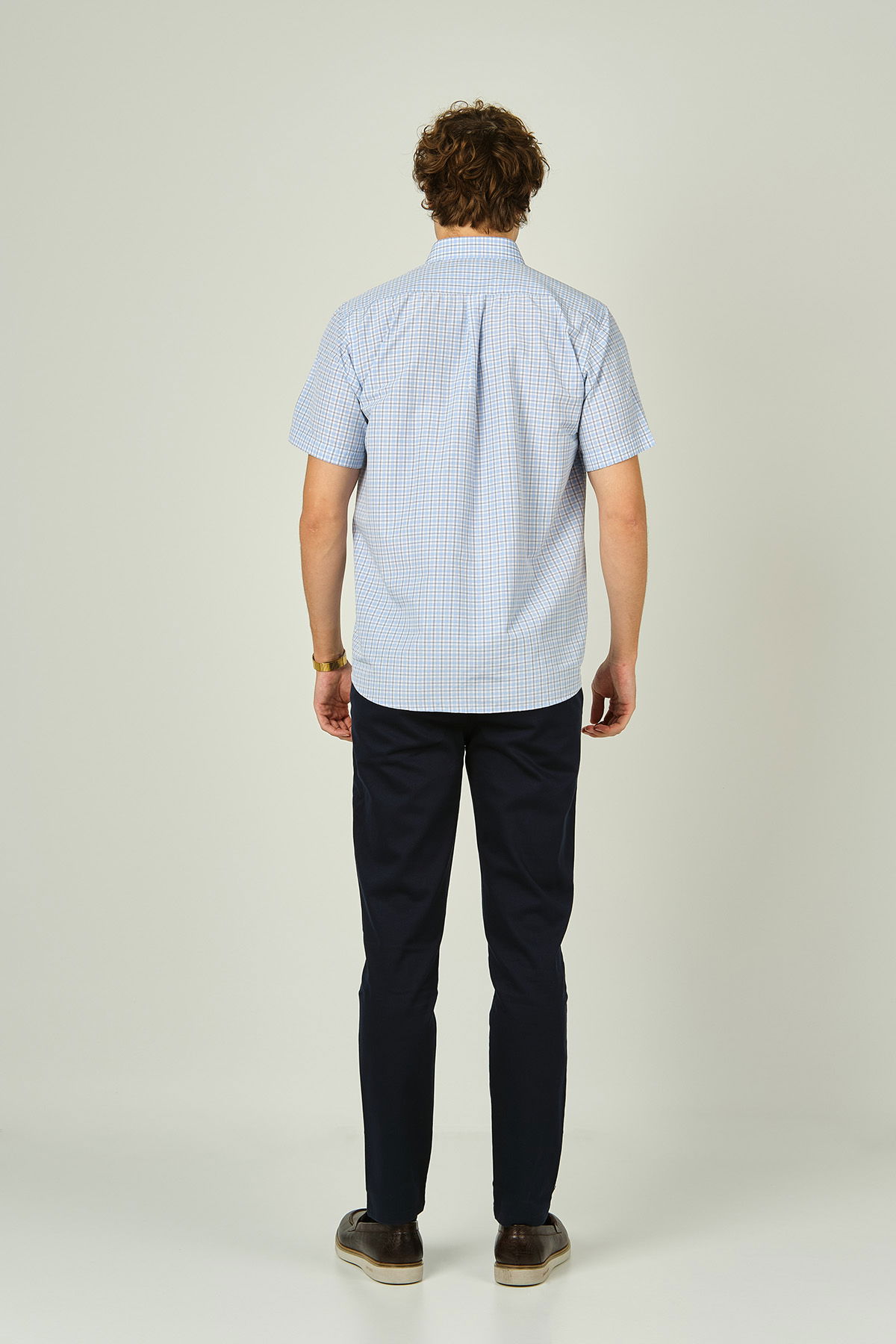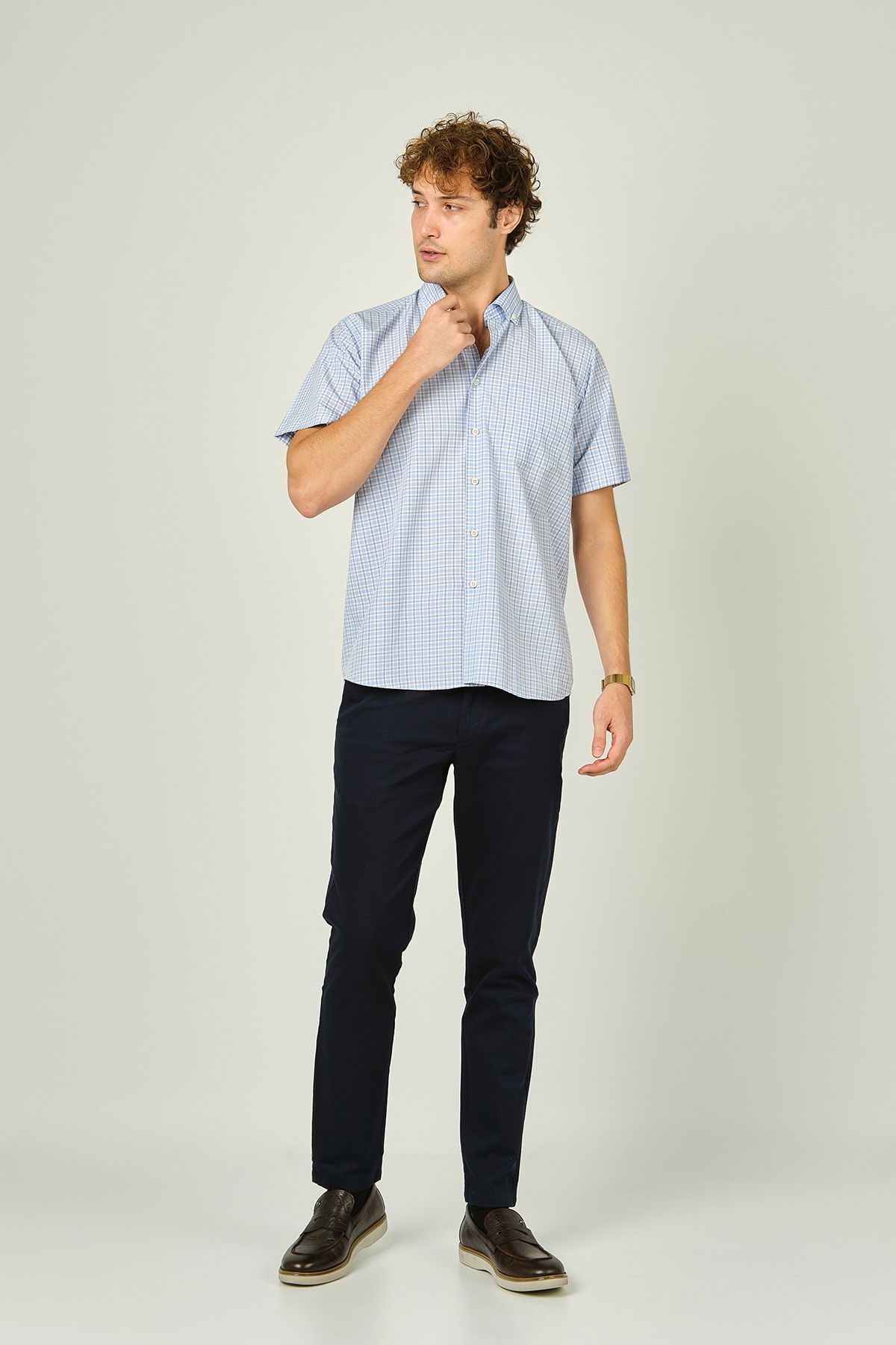 Mugi Erkek Tek Cepli Yaka Düğmeli Kısa Kollu Pamuklu Gömlek 3002 Mavi