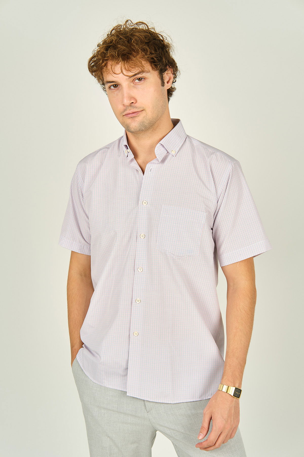 Mugi Erkek Tek Cepli Yaka Düğmeli Kısa Kollu Pamuklu Gömlek 3003 Kırmızı