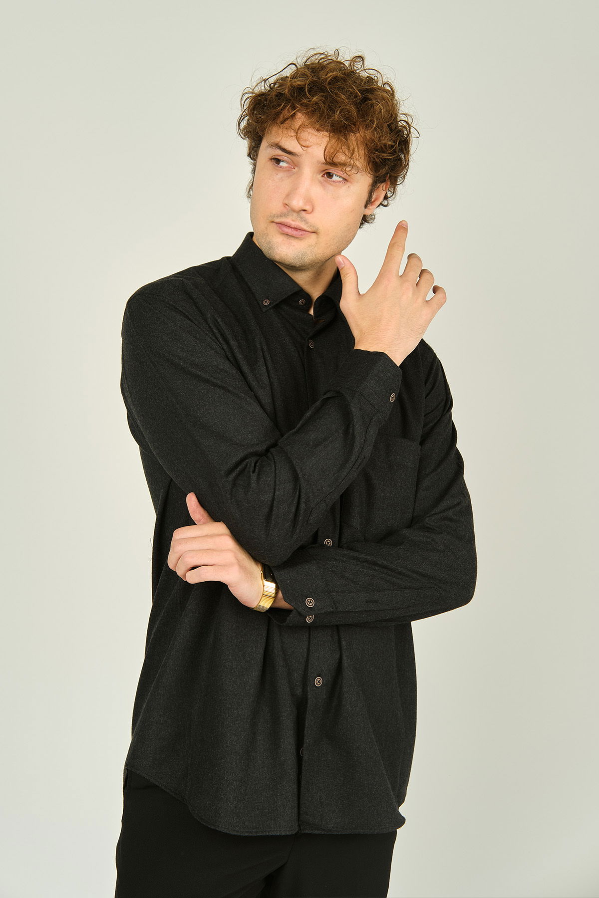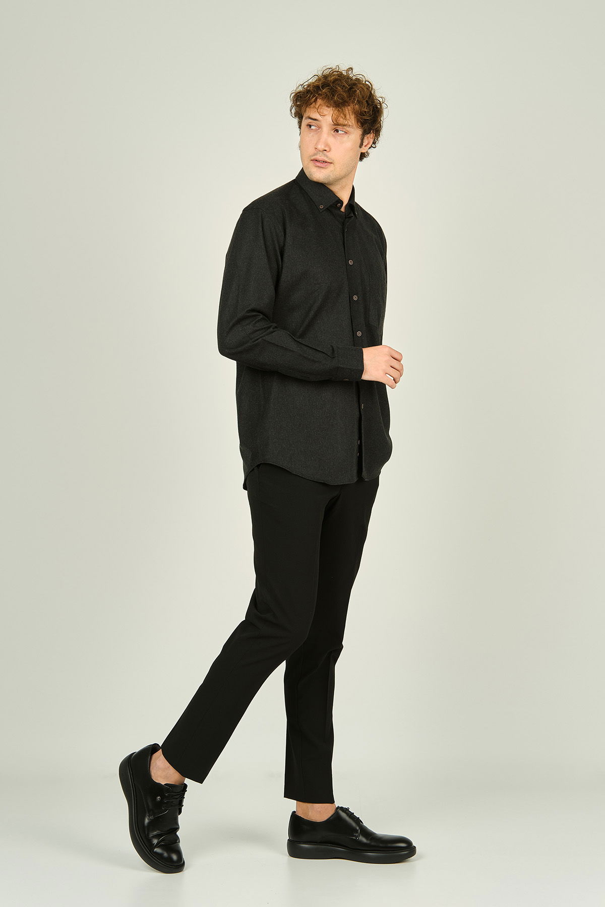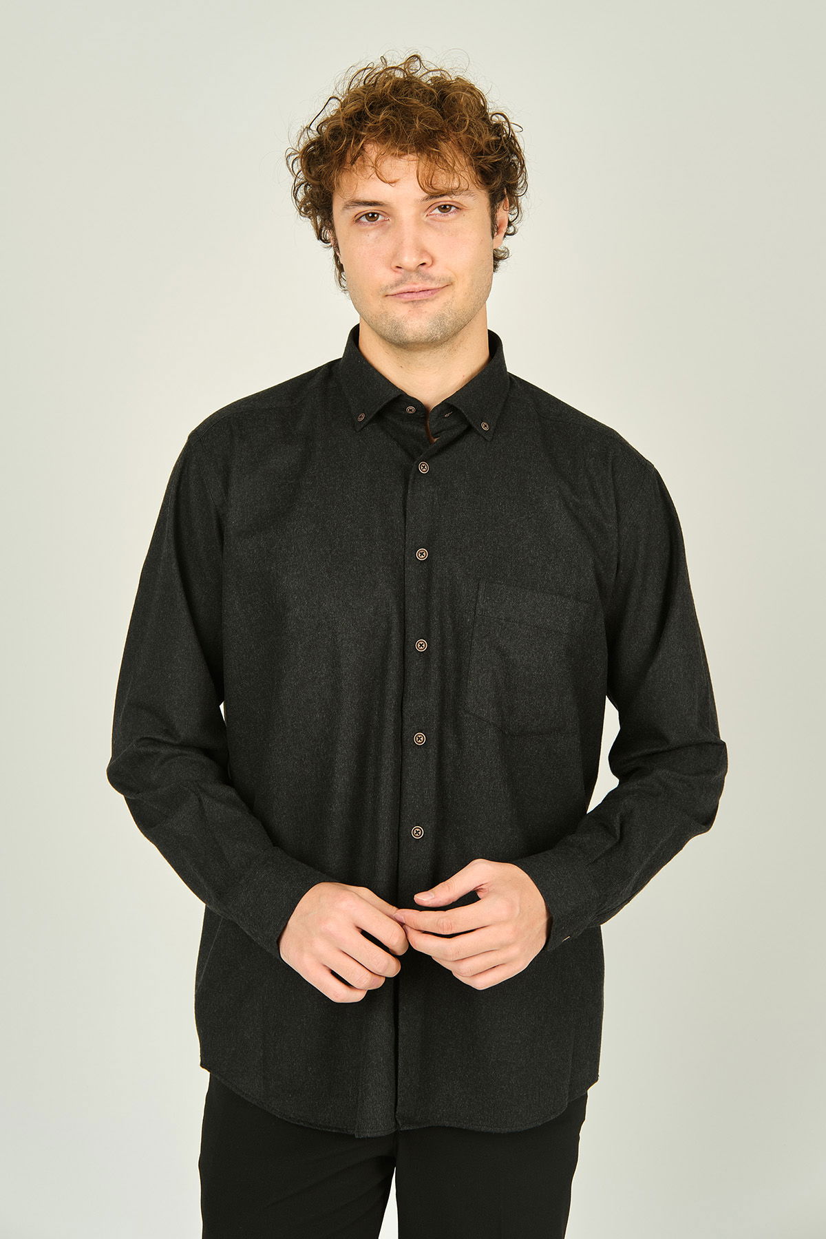 Mugi Erkek Uzun Kollu Tek Cepli %100 Pamuk Gömlek 4100 Antrasit