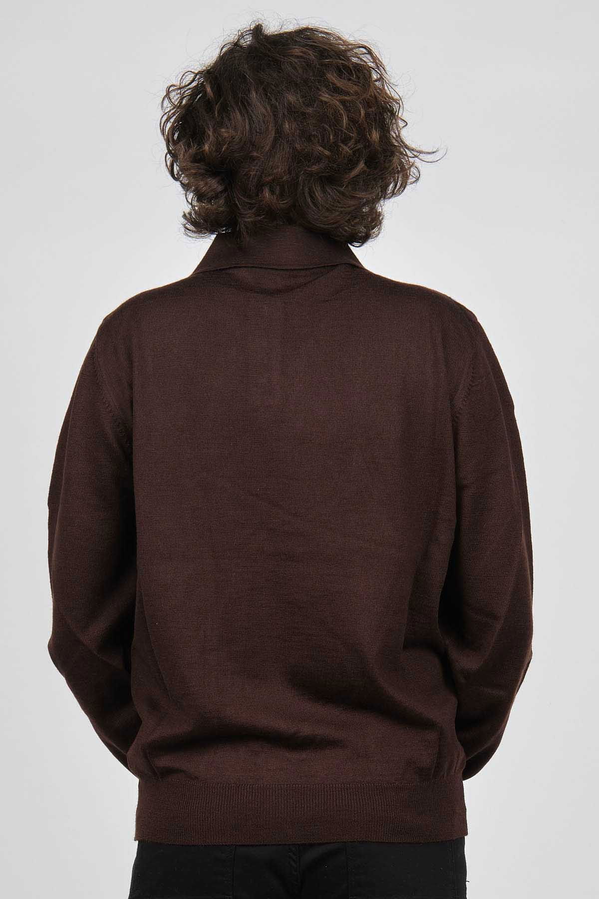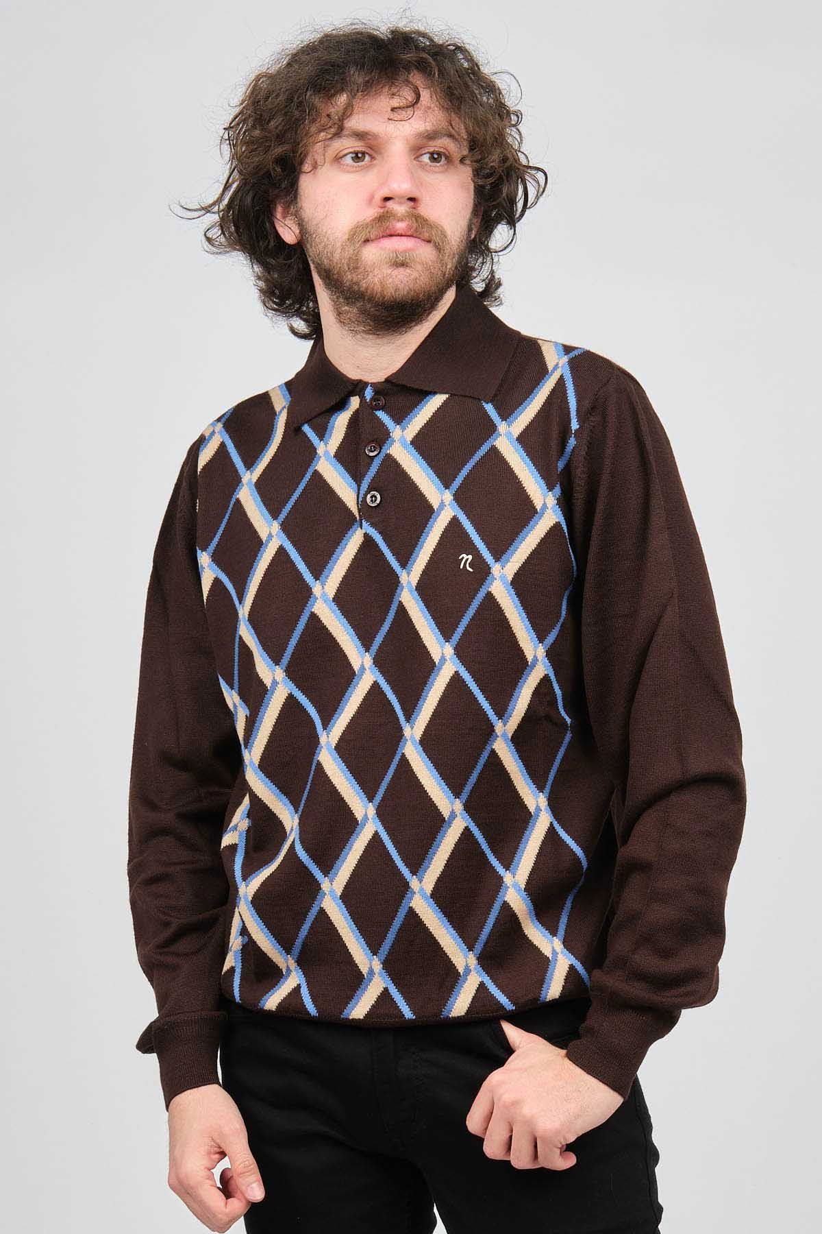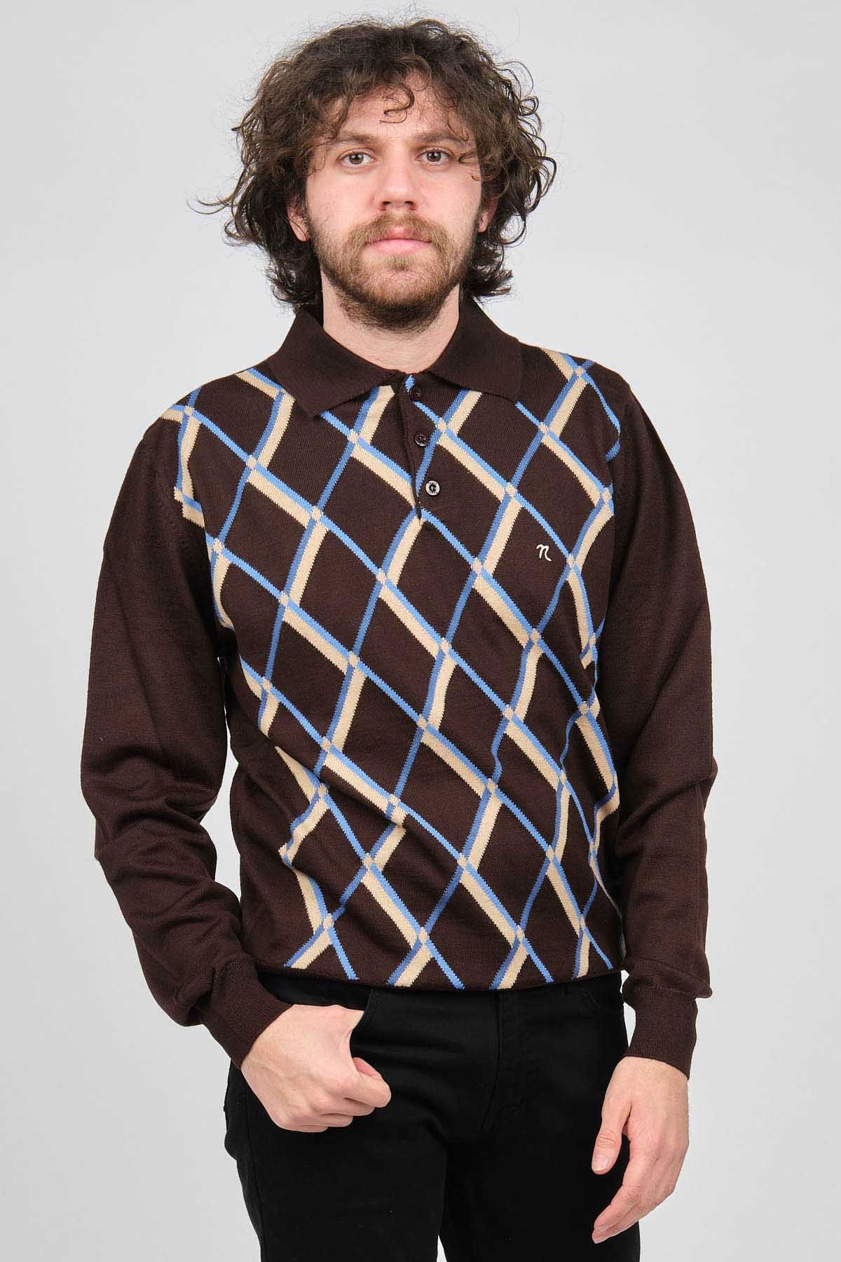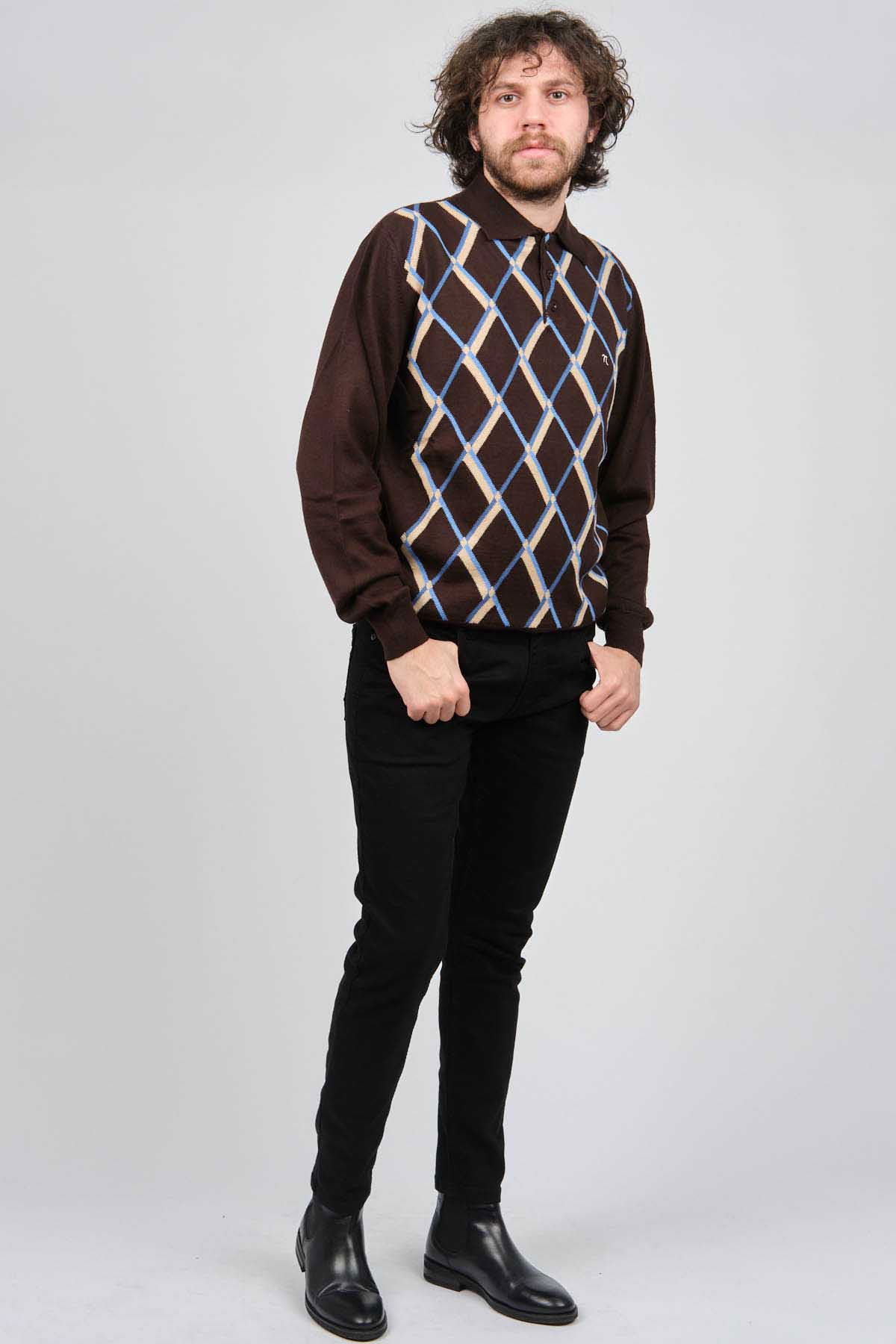 Detay: Düğmeli polo yaka, Desenli, Uzun kollu yün kazak;